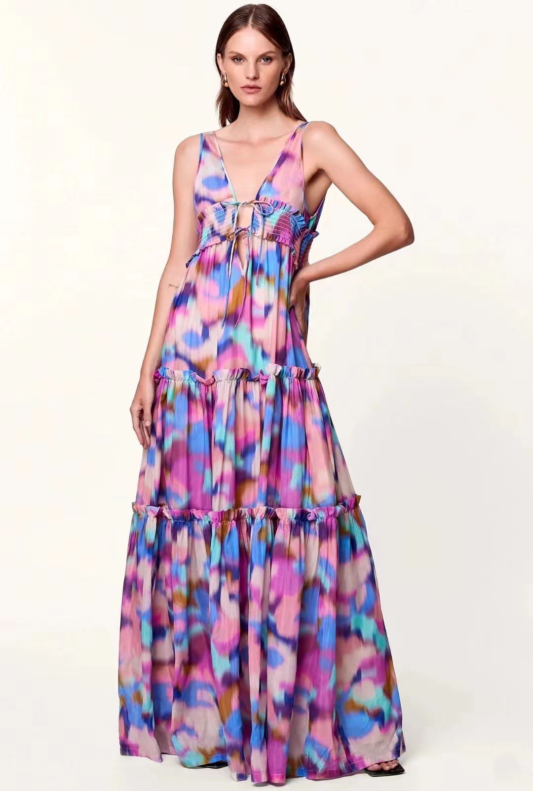 Chiếc đầm dáng thắt eo này là mẫu mới cho mùa thu. Thiết kế cổ chữ V cùng dây đeo có thể buộc điều chỉnh, giúp tôn dáng người mặc. Chất liệu vải co giãn nhẹ nhàng, phối cùng họa tiết nhuộm màu độc đáo và trẻ trung. Bạn có thể mặc đi chơi, dạo phố hay kết hợp với áo khoác mỏng đều phù hợp. Sản phẩm dễ dàng giặt bằng tay và phơi trong bóng râm. | Tên sản phẩm: Áo Hai Dây Nữ Hai Dây Hở Vai Hàng Mùa Xuân Thu Đông - Thời Trang Nữ | Mã sản phẩm: K7524 - Giá: 1.560.000đ | Mã nhà sản xuất: GUDG-G04Hình ảnh sản phẩm