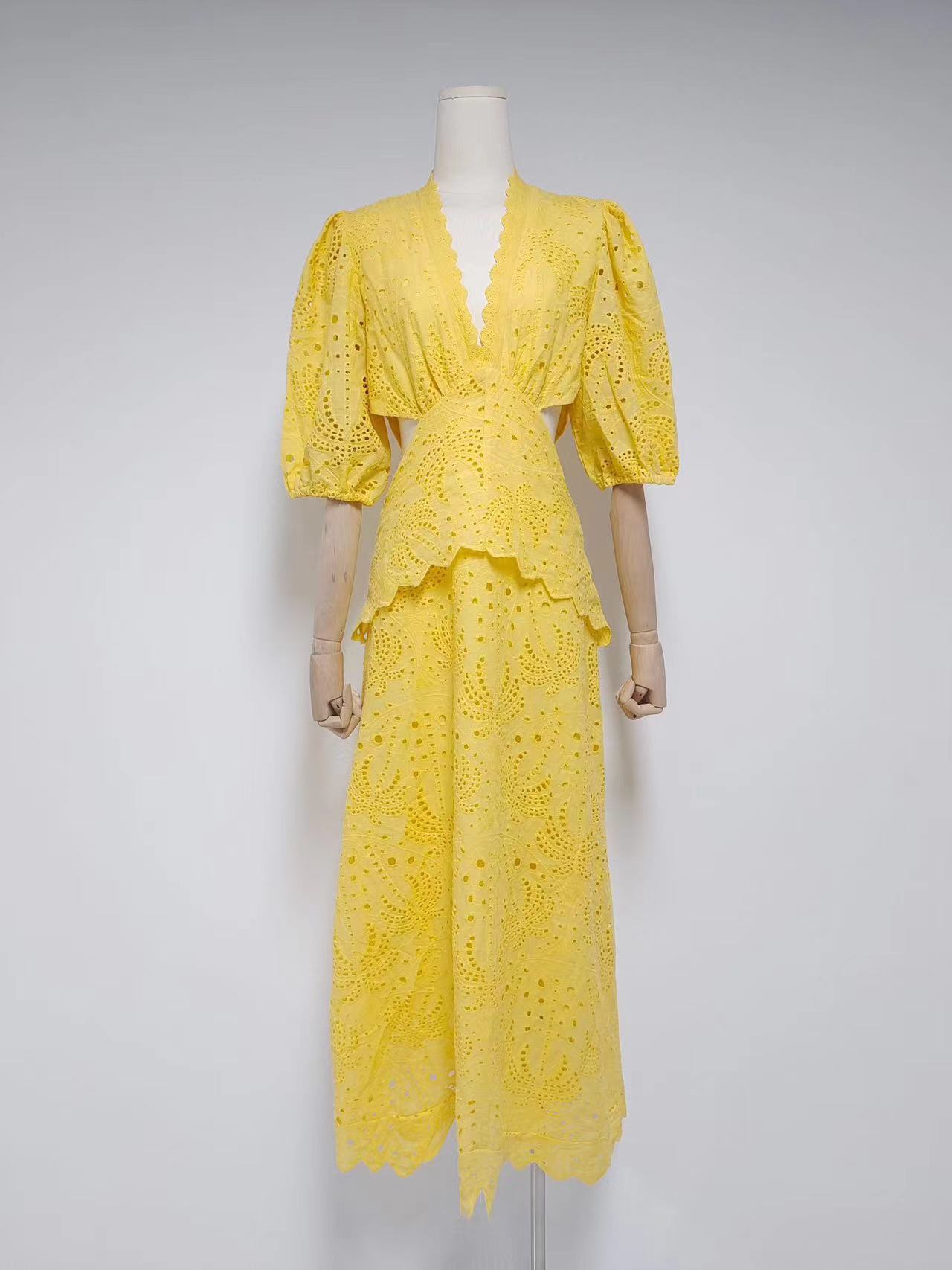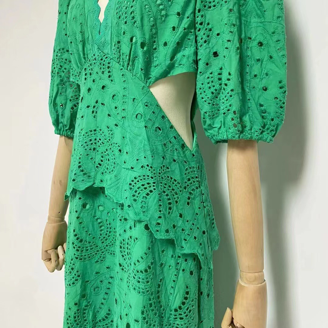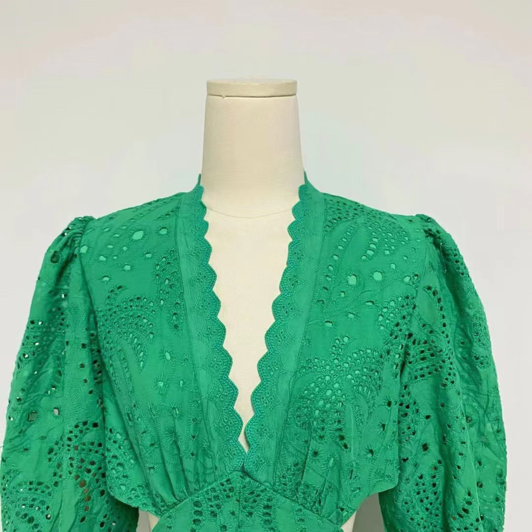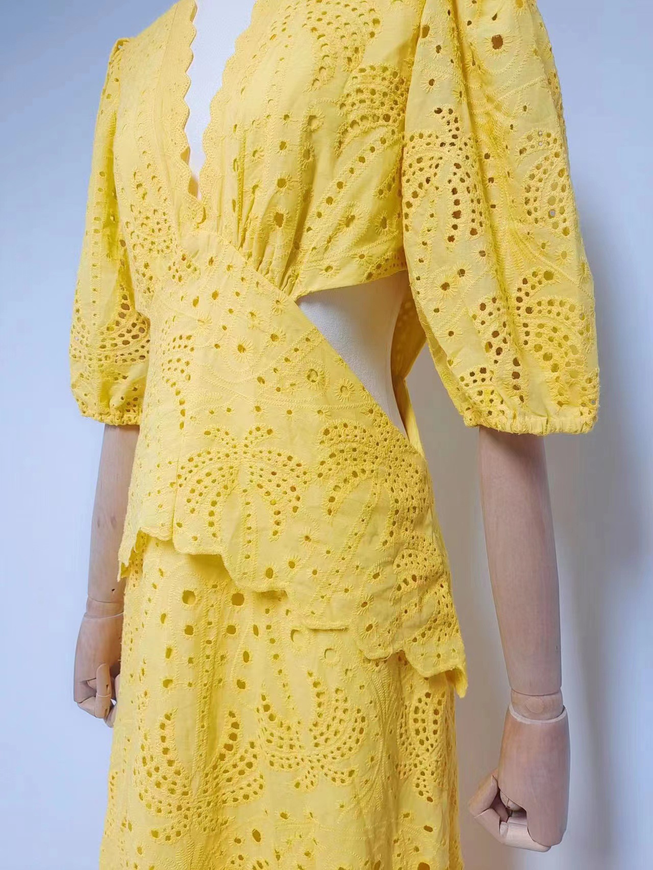 Đầm dáng dài tay ngắn, cổ chữ V tôn dáng. Điểm nhấn là đường thêu tinh xảo phía trên, kết hợp thiết kế eo hở nhẹ tạo nét duyên dáng. Kiểu dáng theo xu hướng mới, phù hợp cho những buổi gặp mặt. Mặc kèm áo khoác nhẹ hoặc phụ kiện đơn giản để tạo phong cách riêng. Chất vải mềm mại giúp người mặc thoải mái trong suốt ngày dài. | Tên sản phẩm: Váy Đầm Liền Thân Nữ Ngắn Tay Thêu Họa Tiết Hoa Cổ Chữ V Hàng Mùa Xuân Thu Đông Phong Cách Âu Mỹ - Thời Trang Nữ | Mã sản phẩm: K7535 - Giá: 2.480.000đ | Mã nhà sản xuất: GUDG-G05Hình ảnh sản phẩm