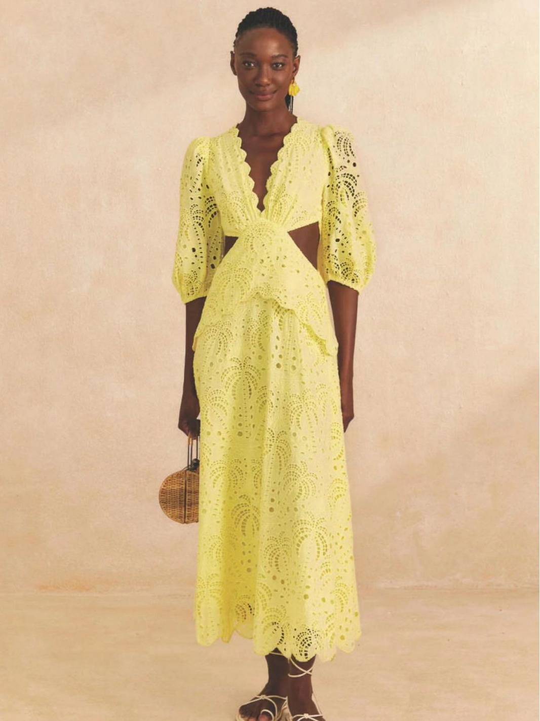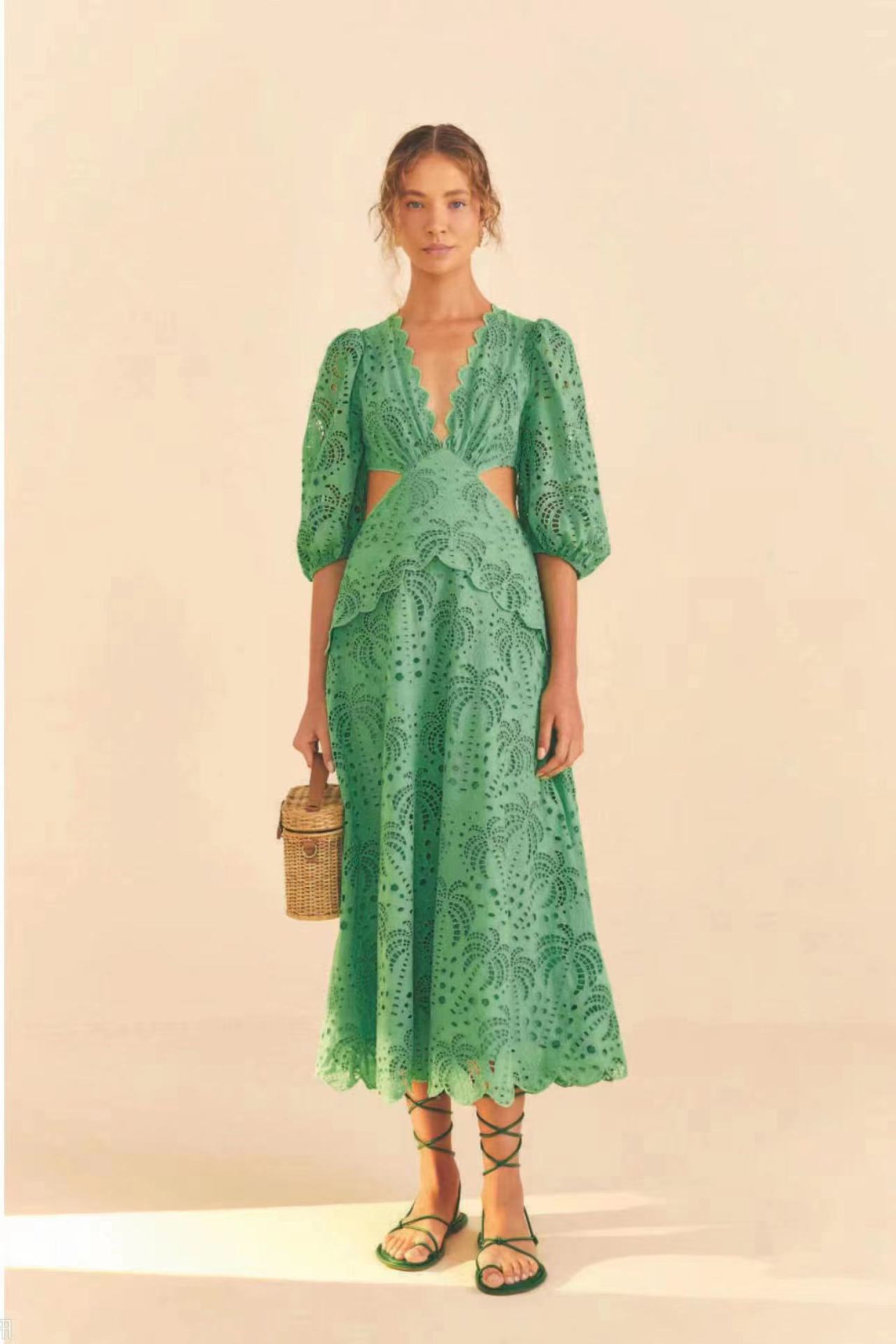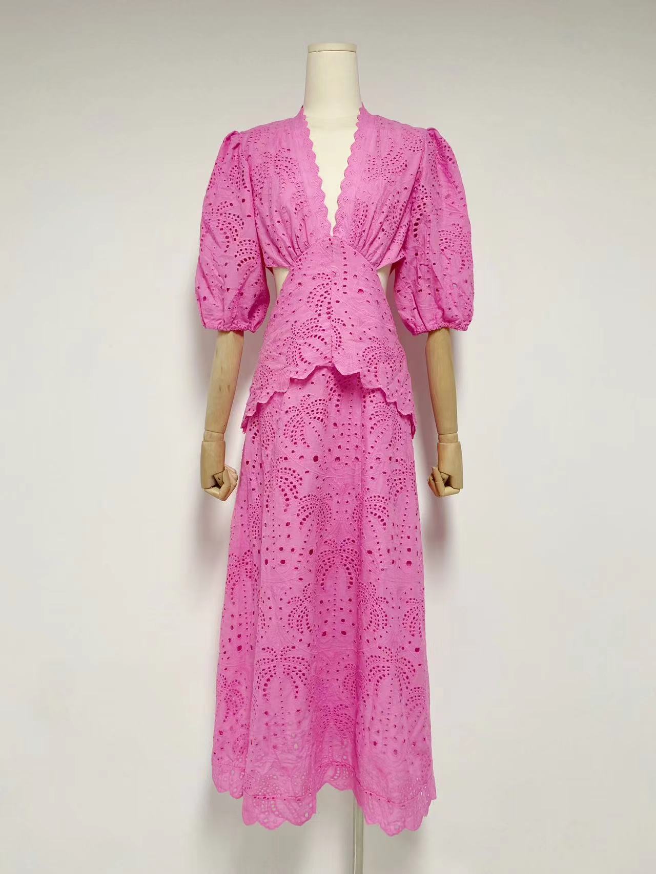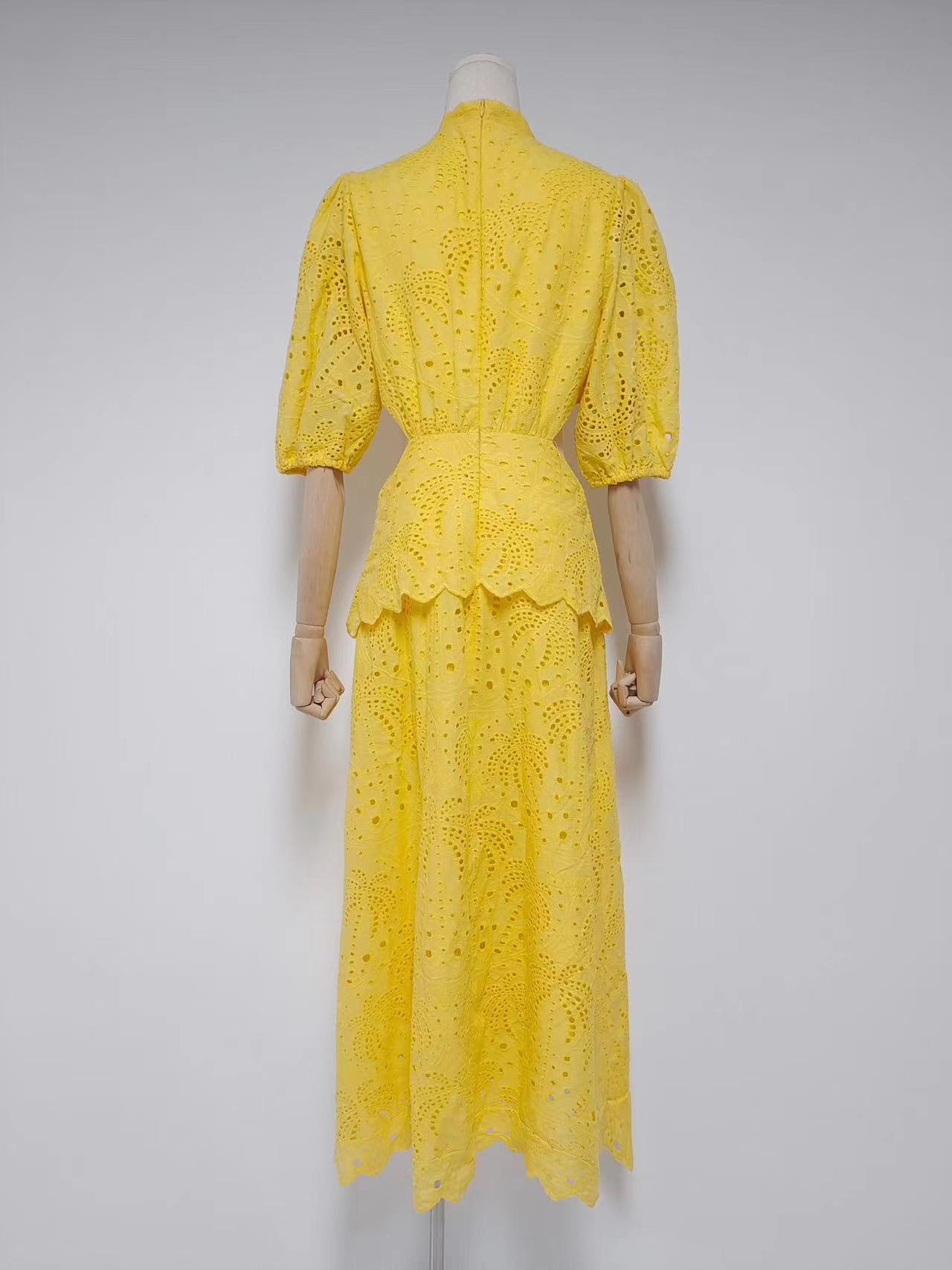 Đầm dáng dài tay ngắn, cổ chữ V tôn dáng. Điểm nhấn là đường thêu tinh xảo phía trên, kết hợp thiết kế eo hở nhẹ tạo nét duyên dáng. Kiểu dáng theo xu hướng mới, phù hợp cho những buổi gặp mặt. Mặc kèm áo khoác nhẹ hoặc phụ kiện đơn giản để tạo phong cách riêng. Chất vải mềm mại giúp người mặc thoải mái trong suốt ngày dài. | Tên sản phẩm: Váy Đầm Liền Thân Nữ Ngắn Tay Thêu Họa Tiết Hoa Cổ Chữ V Hàng Mùa Xuân Thu Đông Phong Cách Âu Mỹ - Thời Trang Nữ | Mã sản phẩm: K7535 - Giá: 2.480.000đ | Mã nhà sản xuất: GUDG-G05Hình ảnh sản phẩm