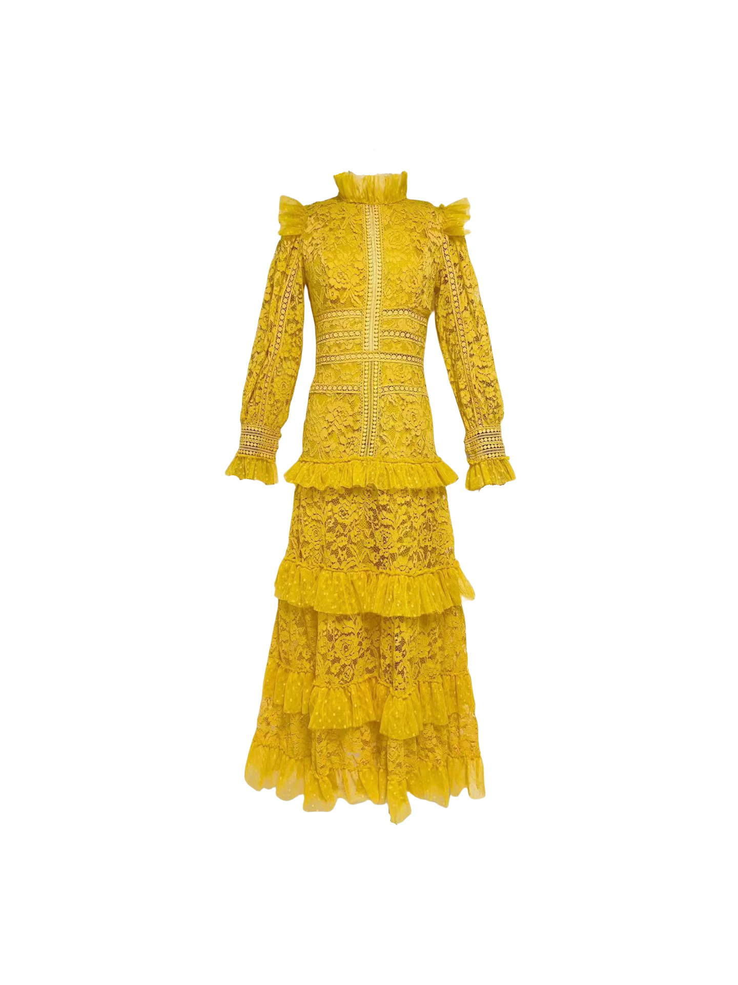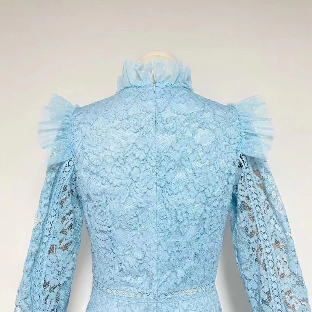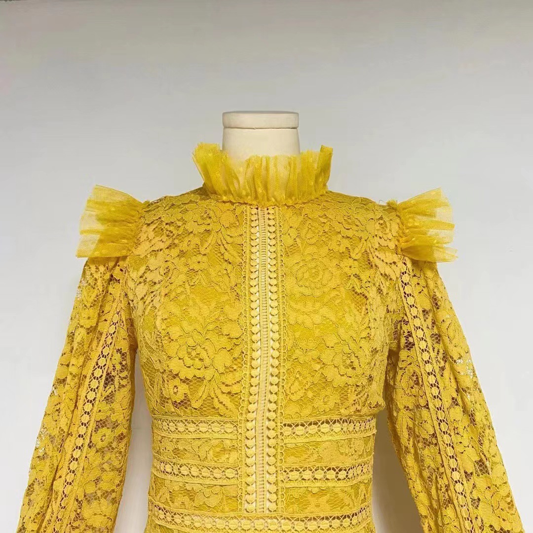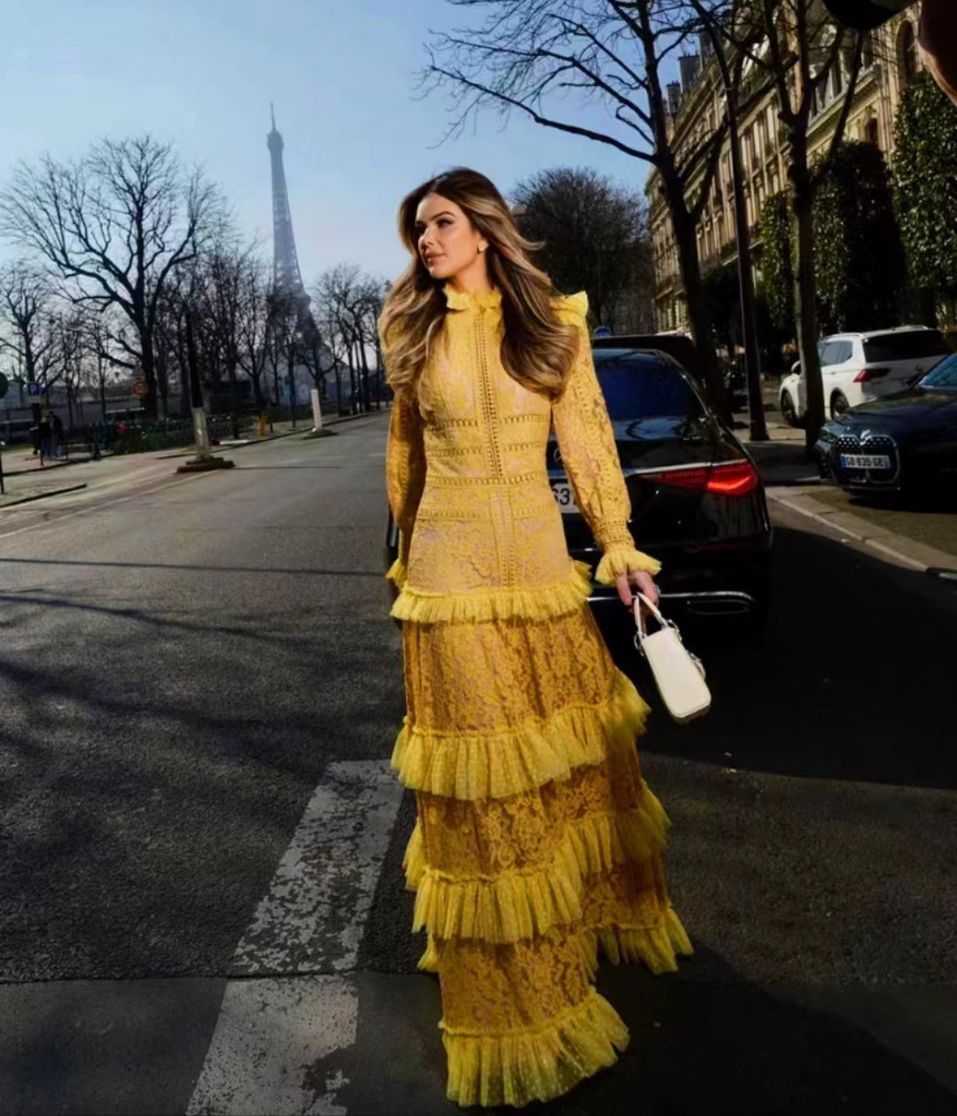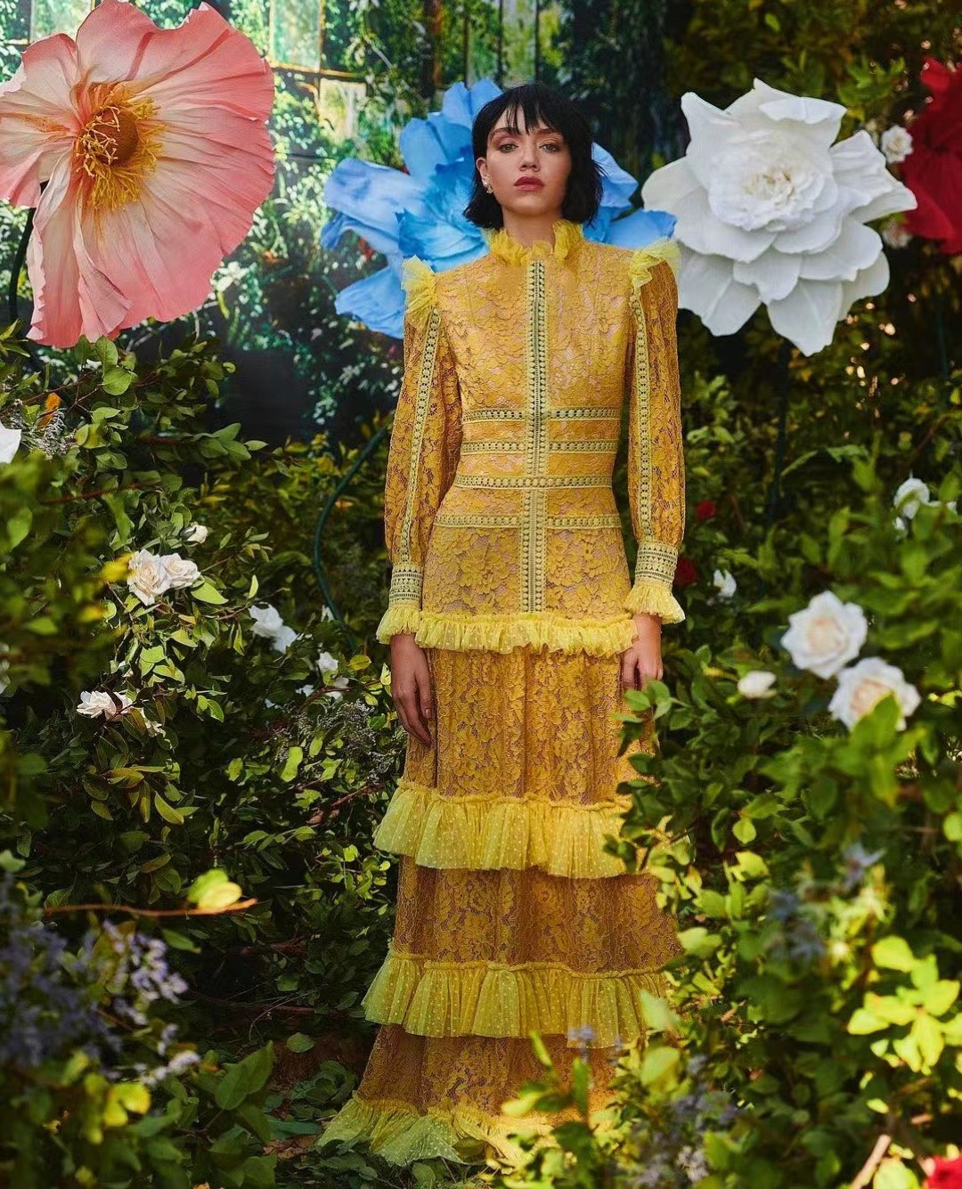 Chiếc đầm dáng dài mang phong cách cổ điển với phần cổ dựng thanh lịch. Điểm nhấn là các chi tiết ren kết hợp đường viền diềm đăng ten tinh tế, tạo nên vẻ đẹp dịu dàng. Thiết kế có phần eo ôm nhẹ nhàng giúp tôn dáng, cùng những họa tiết xuyên thấu nhẹ tăng thêm phần nữ tính. Sản phẩm phù hợp cho nhiều dịp đi chơi, dạo phố hay gặp mặt. Có thể giặt bằng tay và phơi nơi râm mát để giữ form vải bền đẹp. | Tên sản phẩm: Váy Đầm Liền Thân Dáng Dài Nữ Chất Liệu Ren Họa Tiết Hoa Hàng Mùa Xuân Thu Đông Phục Cổ Cổ Điển - Thời Trang Nữ | Mã sản phẩm: K7564 - Giá: 2.730.000đ | Mã nhà sản xuất: GUDG-G06Hình ảnh sản phẩm