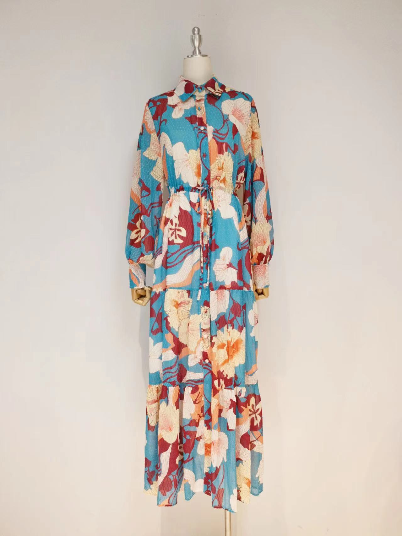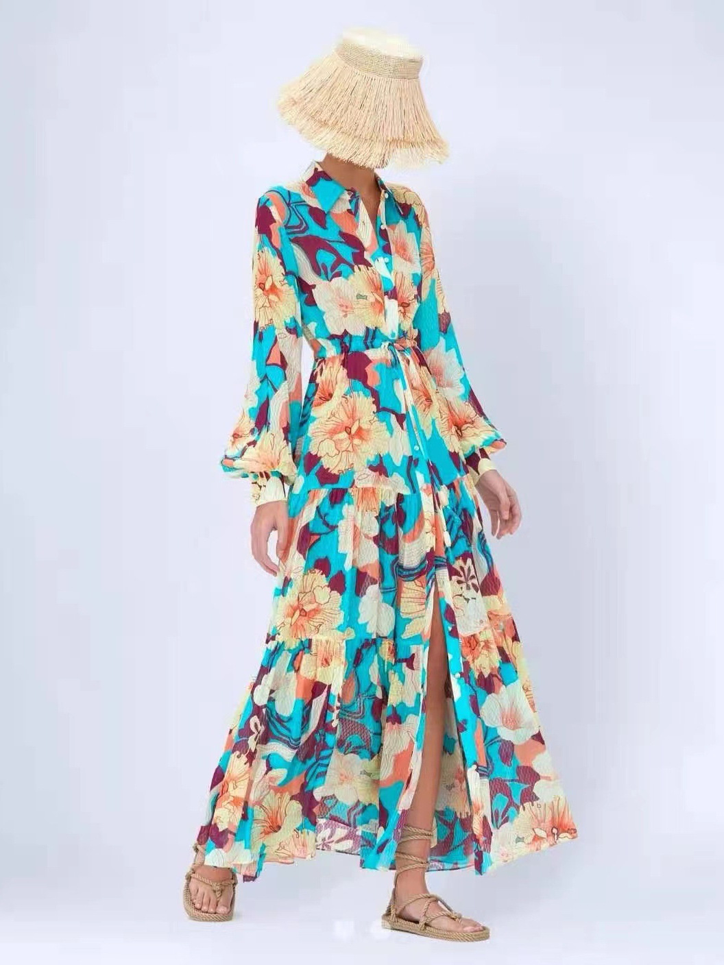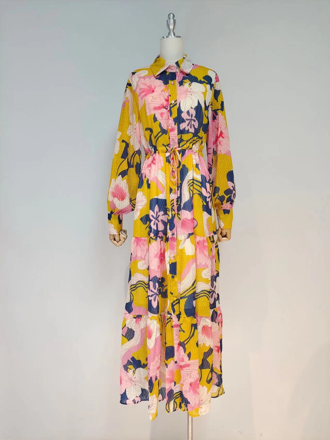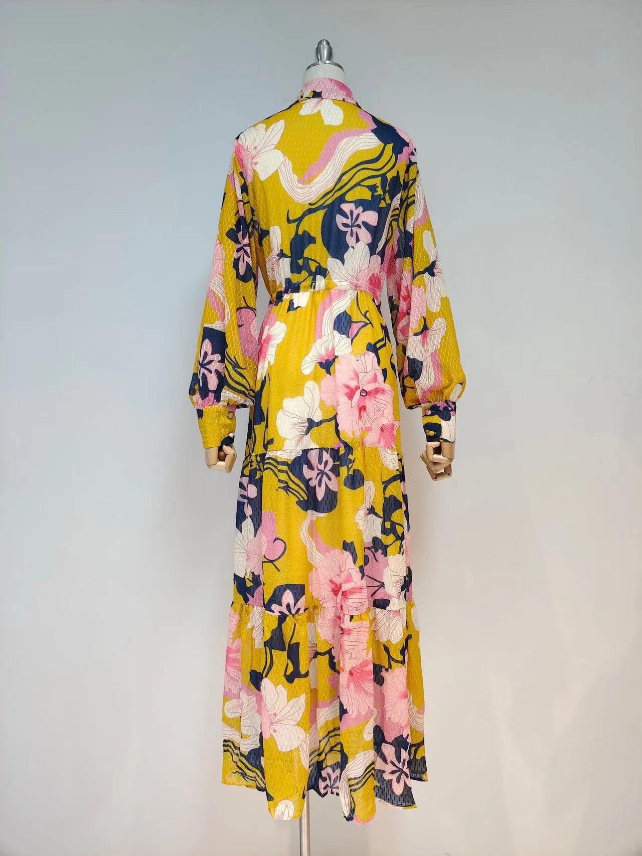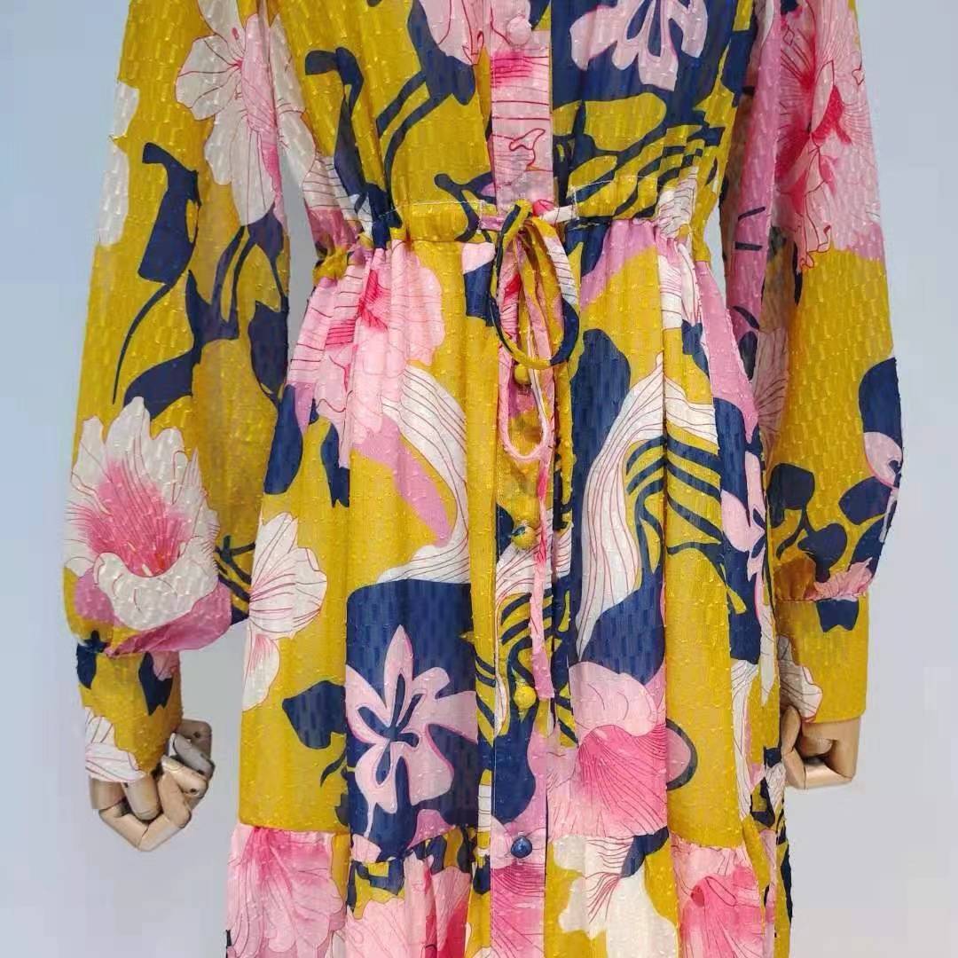Chiếc đầm dành cho những ngày xuân với họa tiết in đẹp mắt. Thiết kế dáng rộng thoải mái, kết hợp cùng phần cổ bẻ và eo cao tạo nên điểm nhấn thanh lịch. Kiểu dáng chữ A nhẹ nhàng giúp tôn dáng người mặc một cách tinh tế. Sản phẩm phù hợp cho nhiều dịp sinh hoạt hằng ngày. Có thể phối cùng giày bệt hoặc giày có qu để hoàn thiện bộ trang phục. | Tên sản phẩm: Váy Đầm Liền Thân Nữ Dáng Chữ A Họa Tiết Hoa Kín Cổ Hàng Mùa Xuân Thu Đông Phong Cách Âu Mỹ - Thời Trang Nữ | Mã sản phẩm: K7567 - Giá: 1.900.000đ | Mã nhà sản xuất: GUDG-G05Hình ảnh sản phẩm