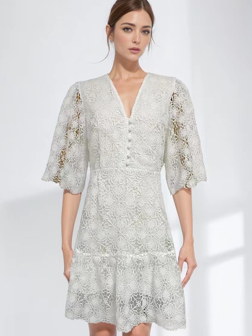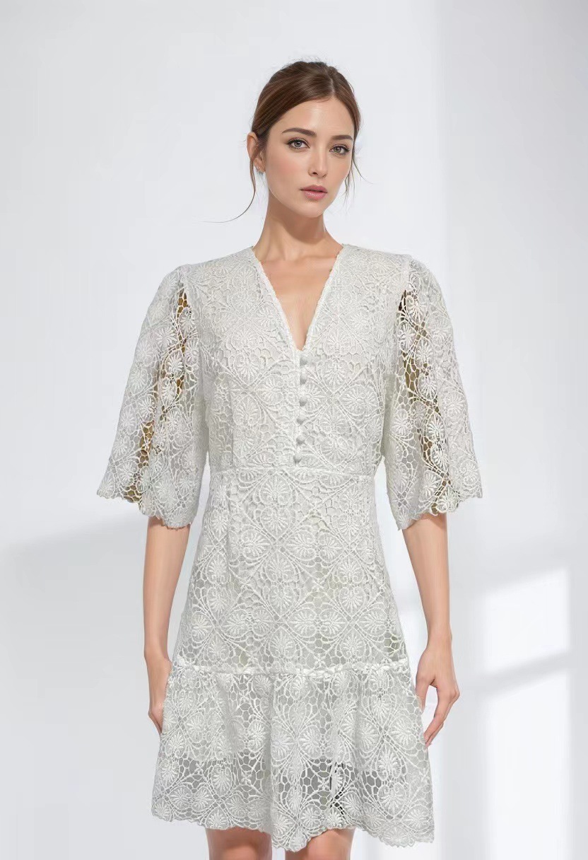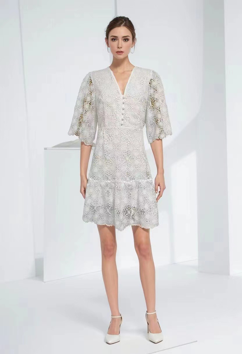 Chiếc đầm ngắn tay cổ chữ V, hoàn toàn mới cho những ngày hè. Thiết kế ôm nhẹ ở eo tôn lên đường nét cơ thể, điểm nhấn là các chi tiết xuyên thấu tinh tế. Kiểu dáng phù hợp cho việc đi làm hoặc dạo phố. Mặc kết hợp với giày bệt hoặc sandal để tạo vẻ ngoài nhẹ nhàng, năng động. Chất vải mềm mại, thoáng mát giúp bạn cảm thấy dễ chịu suốt ngày dài. | Tên sản phẩm: Váy Đầm Liền Thân Nữ Ngắn Tay Cổ Chữ V Hàng Mùa Hè - Thời Trang Nữ | Mã sản phẩm: K7585 - Giá: 1.810.000đ | Mã nhà sản xuất: GUDG-G05Hình ảnh sản phẩm