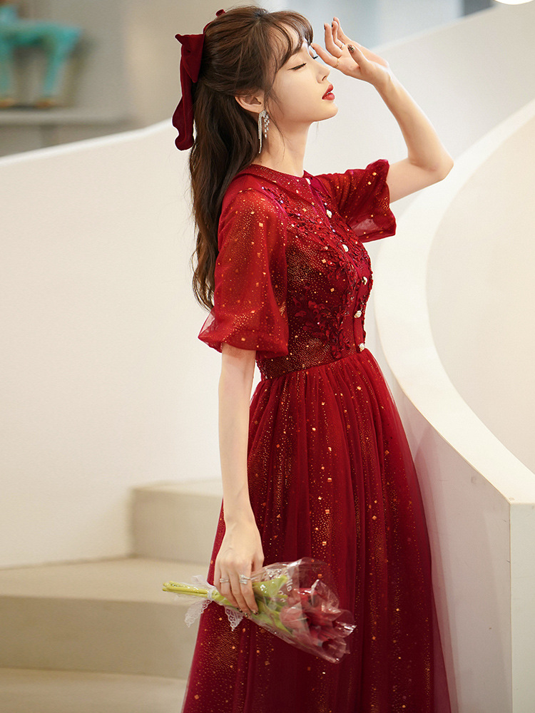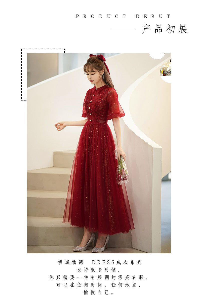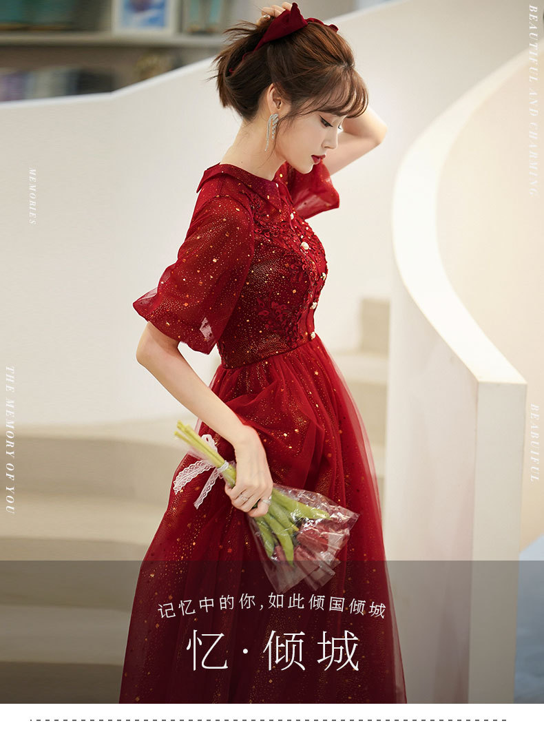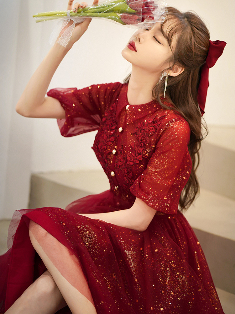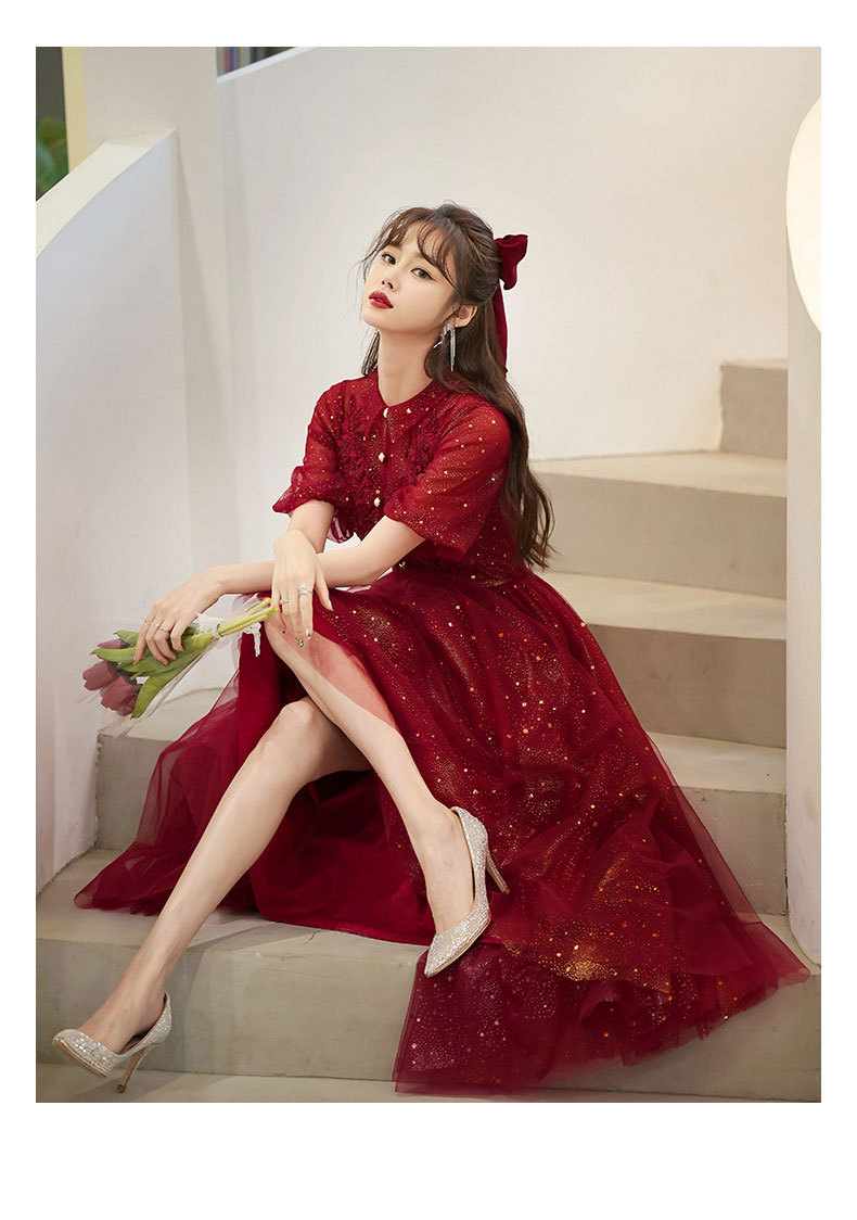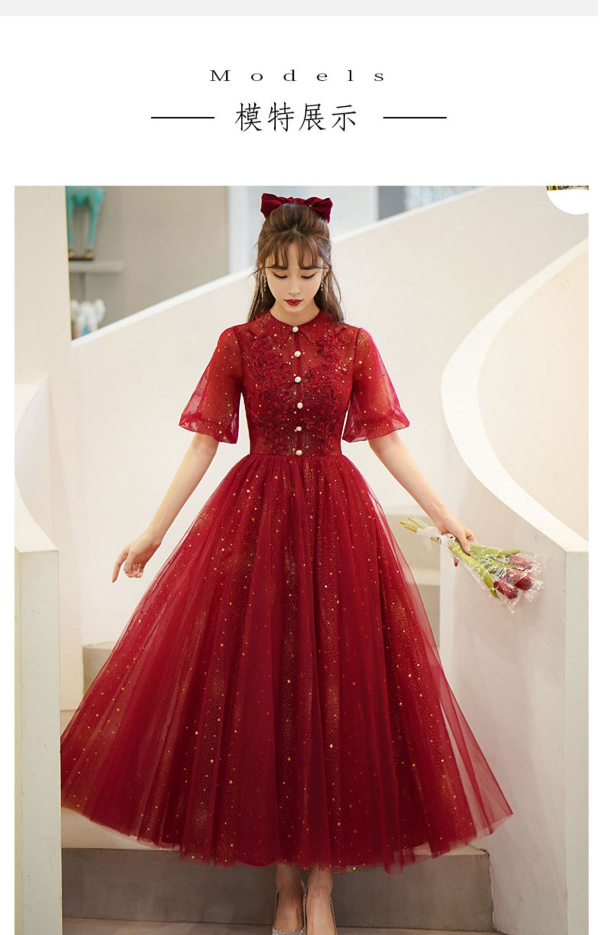 Váy dành cho cô dâu trong các buổi tiệc và lễ cưới. Thiết kế dáng dài, tay ngắn, phù hợp cho những dịp trọng đại như đám hỏi, lễ vu quy hay tiệc mừng. Tông màu đỏ thắm chủ đạo tạo điểm nhấn nổi bật và ý nghĩa. Chất vải nhẹ, thoáng mát giúp người mặc dễ chịu và tự tin suốt buổi lễ. Có thể kết hợp cùng phụ kiện như túy xách và giày cùng tông màu để hoàn thiện trang phục. | Tên sản phẩm: Váy Đầm Liền Thân Dự Tiệc Nữ Hàng Mùa Hè Dùng Trong Lễ Cưới Ngày Cưới - Thời Trang Nữ | Mã sản phẩm: K7601 - Giá: 1.350.000đ | Mã nhà sản xuất: MITY,-G04Hình ảnh sản phẩm