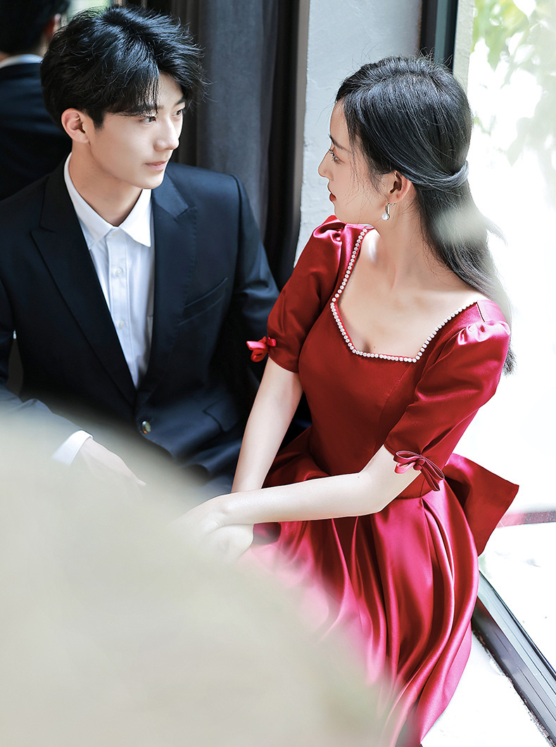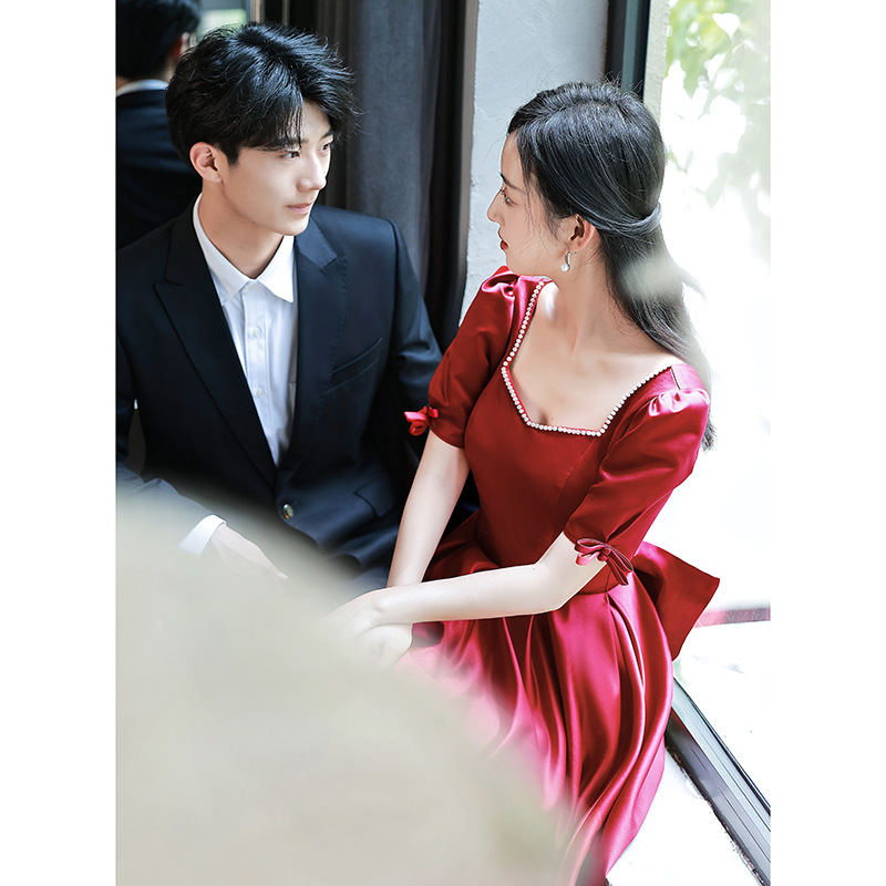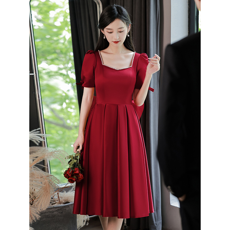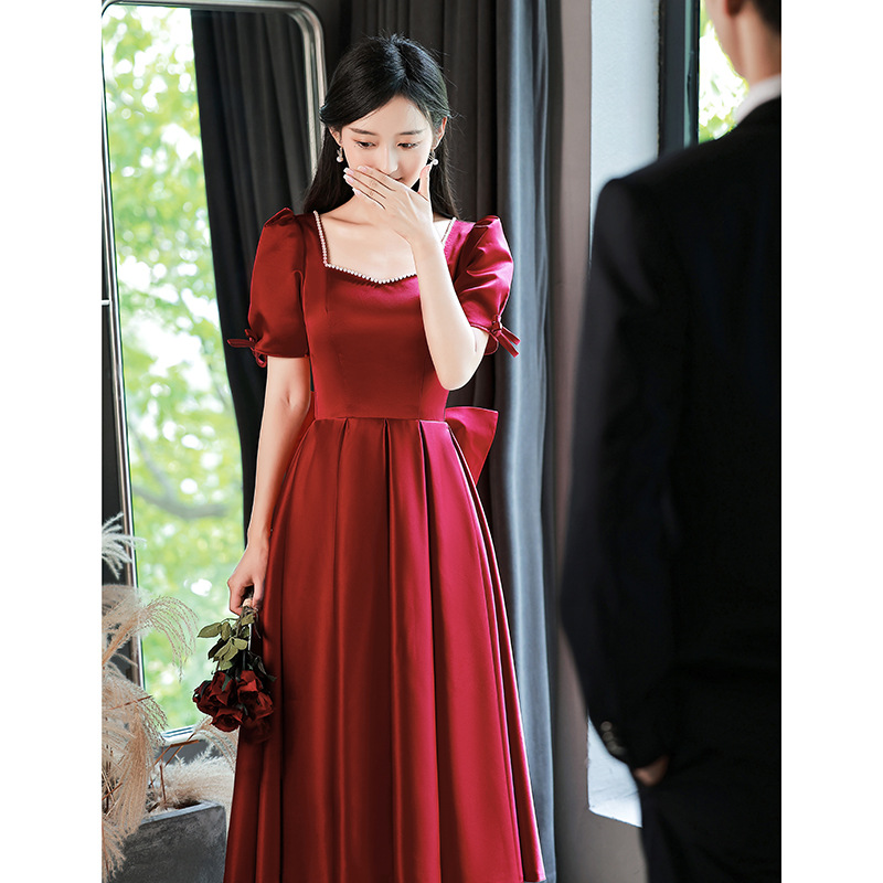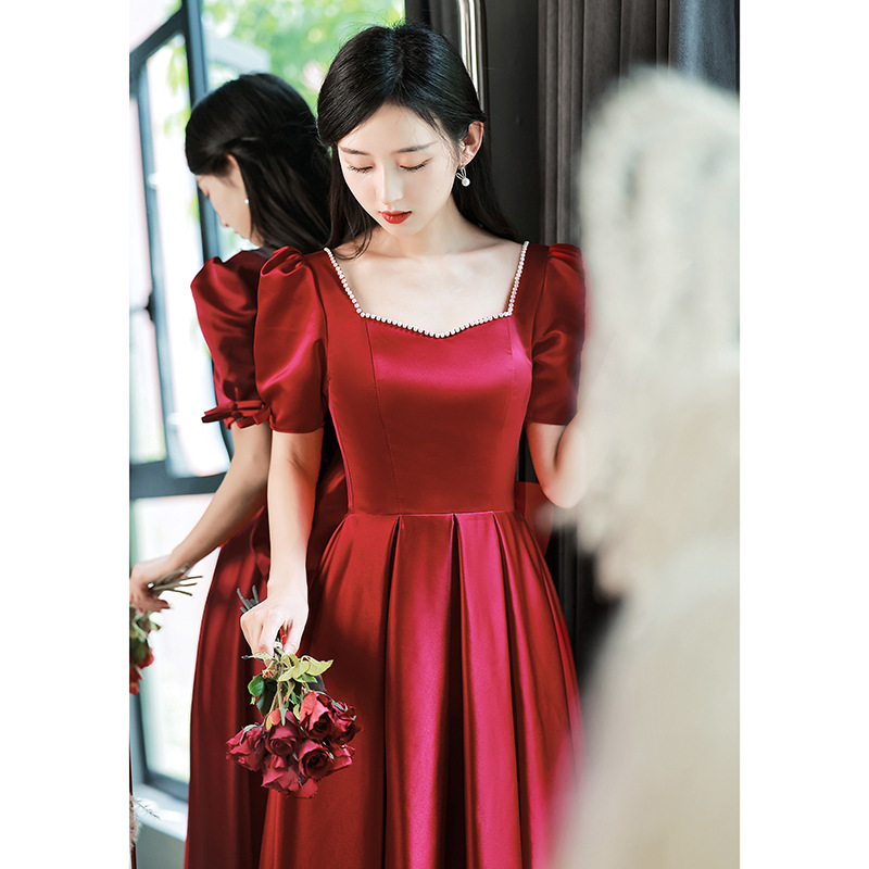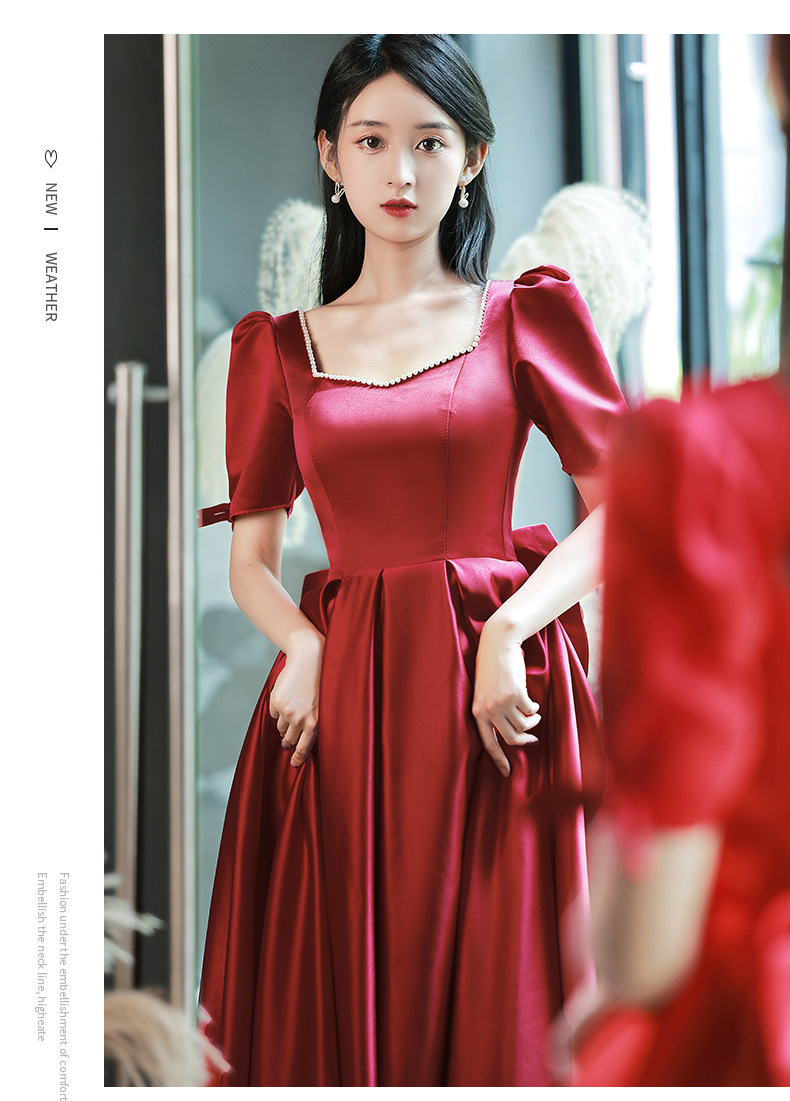 Váy dự tiệc dành cho cô dâu trong ngày cưới, với sắc đỏ rượu vang quyến rũ. Thiết kế theo phong cách công chúa hiện đại, phù hợp cho các dịp đám hỏi, lễ vu quy hay tiếp khách. Chất liệu satin mềm mại tôn lên đường nét cơ thể. Sản phẩm dễ dàng phối cùng phụ kiện và giày cao gót, giúp người mặc tự tin đón tiếp khách trong các buổi tiệc quan trọng. | Tên sản phẩm: Váy Đầm Liền Thân Dự Tiệc Nữ Dùng Trong Lễ Cưới Ngày Cưới - Thời Trang Nữ | Mã sản phẩm: K7602 - Giá: 1.250.000đ | Mã nhà sản xuất: MITY,-G04Hình ảnh sản phẩm