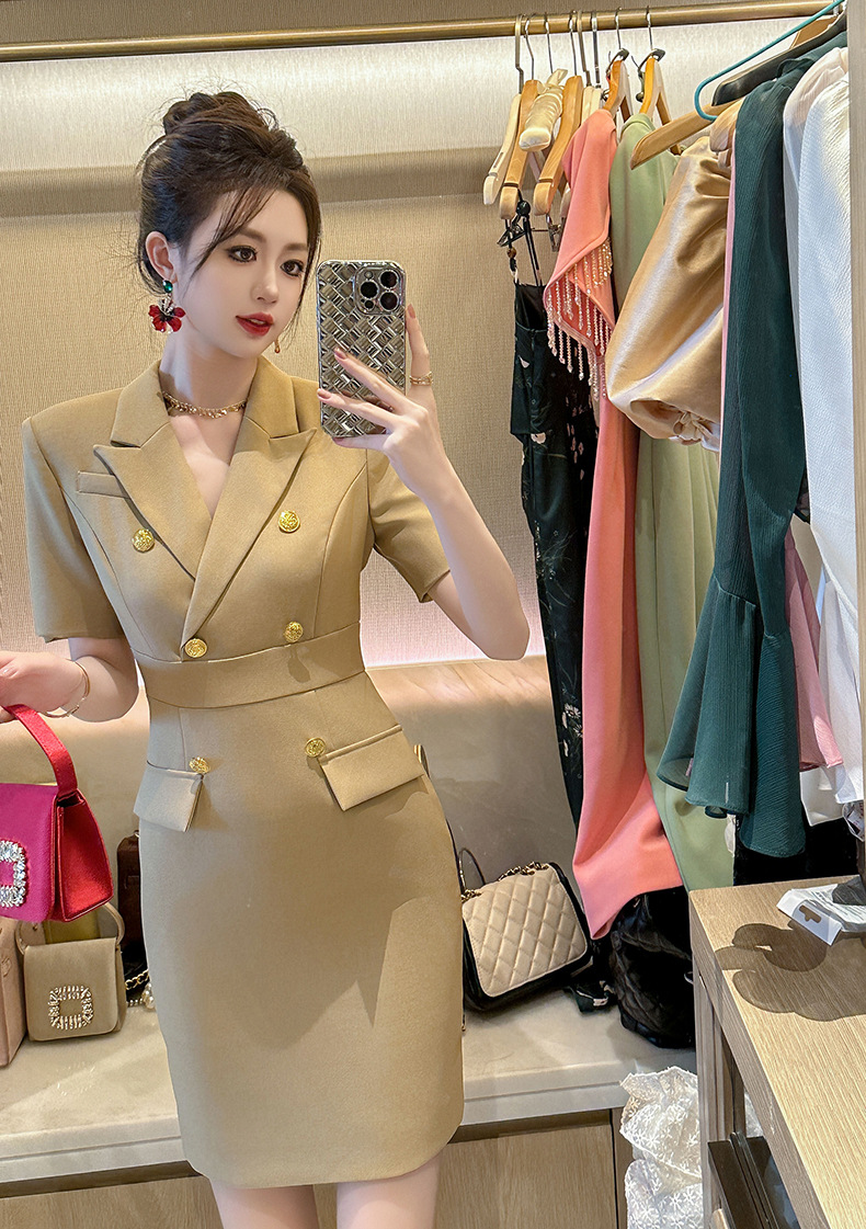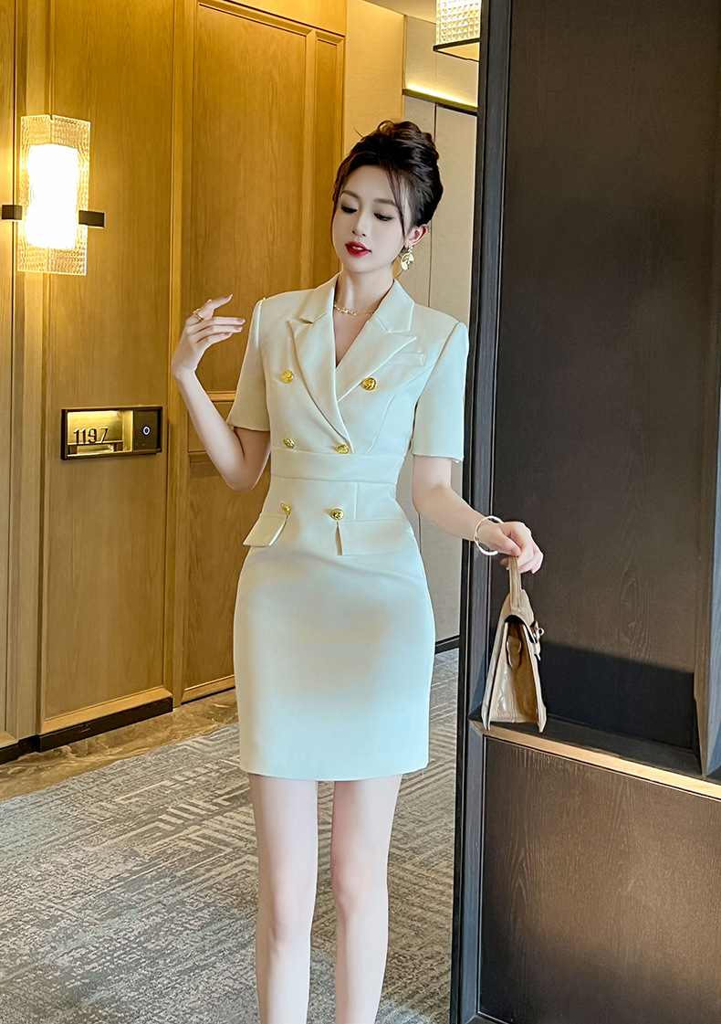 Chiếc đầm ngắn tay dành cho nữ, kiểu dáng ôm sát phù hợp đi làm. Thiết kế cổ áo vest và hai hàng khuy cài tạo điểm nhấn thanh lịch. Đầm có độ dài vừa phải, giúp tôn dáng cho những người có chiều cao khiêm tốn. Sản phẩm thích hợp mặc tại văn phòng hay các buổi gặp mặt. Có thể kết hợp cùng giày cao gót và túi xách để hoàn thiện bộ trang phục. | Tên sản phẩm: Áo Vest Nữ Vest Dáng Ôm Ngắn Tay Hàng Mùa Hè Đồ Công Sở - Thời Trang Nữ | Mã sản phẩm: K7608 - Giá: 1.220.000đ | Mã nhà sản xuất: CHDG-G04Hình ảnh sản phẩm