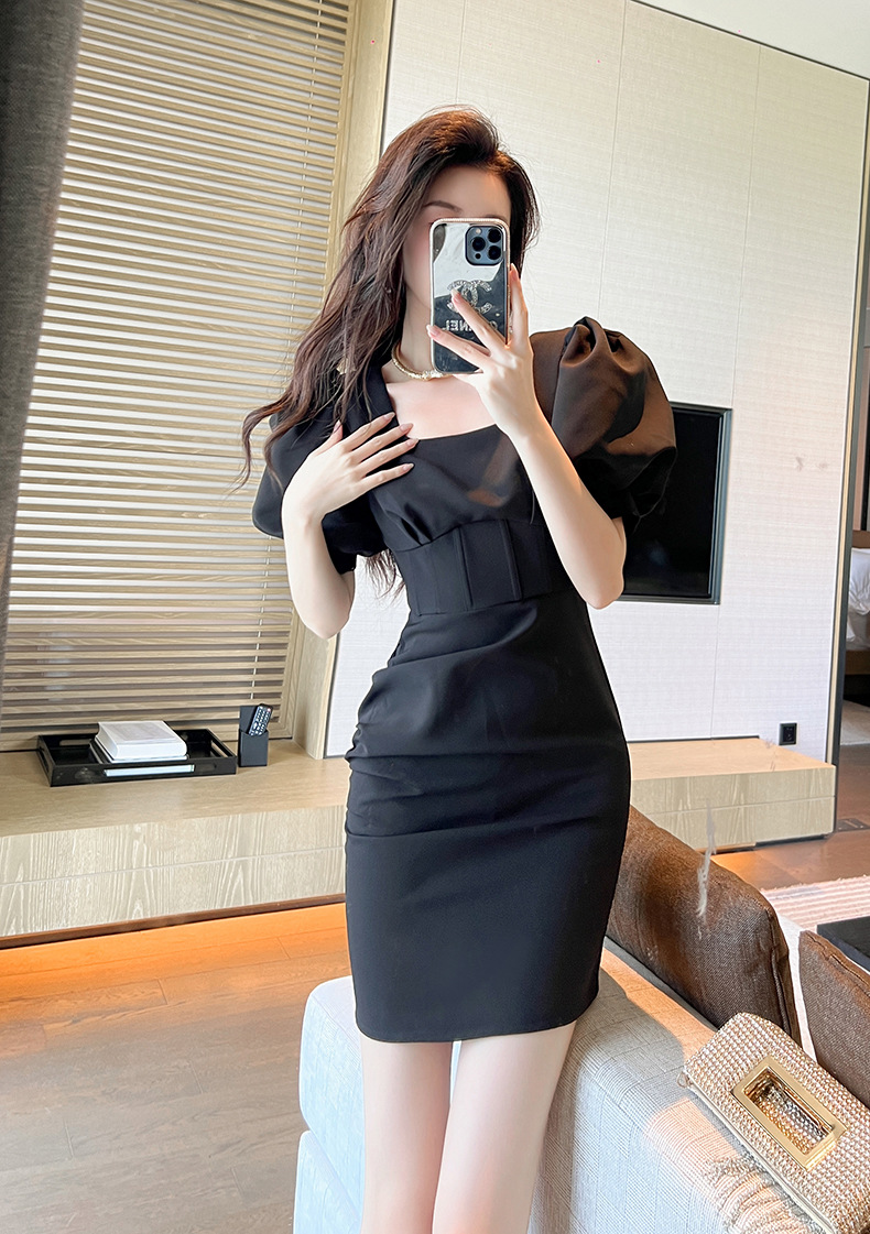 Chiếc đầm này mang phong cách thanh lịch, lấy cảm hứng từ những mẫu thiết kế cổ điển. Đầm có phần tay bồng nhẹ nhàng, eo được may ôm tôn dáng. Thiết kế ôm vừa vặn ở phần hông giúp tạo đường nét cơ thể mềm mại. Bạn có thể mặc đầm để đi làm, dự tiệc hoặc những dịp gặp mặt. Sản phẩm có màu đen dễ dàng phối hợp với nhiều loại phụ kiện khác nhau. | Tên sản phẩm: Váy Đầm Liền Thân Nữ Tay Phồng - Thời Trang Nữ | Mã sản phẩm: K7625 - Giá: 1.060.000đ | Mã nhà sản xuất: CHDG-G03Hình ảnh sản phẩm