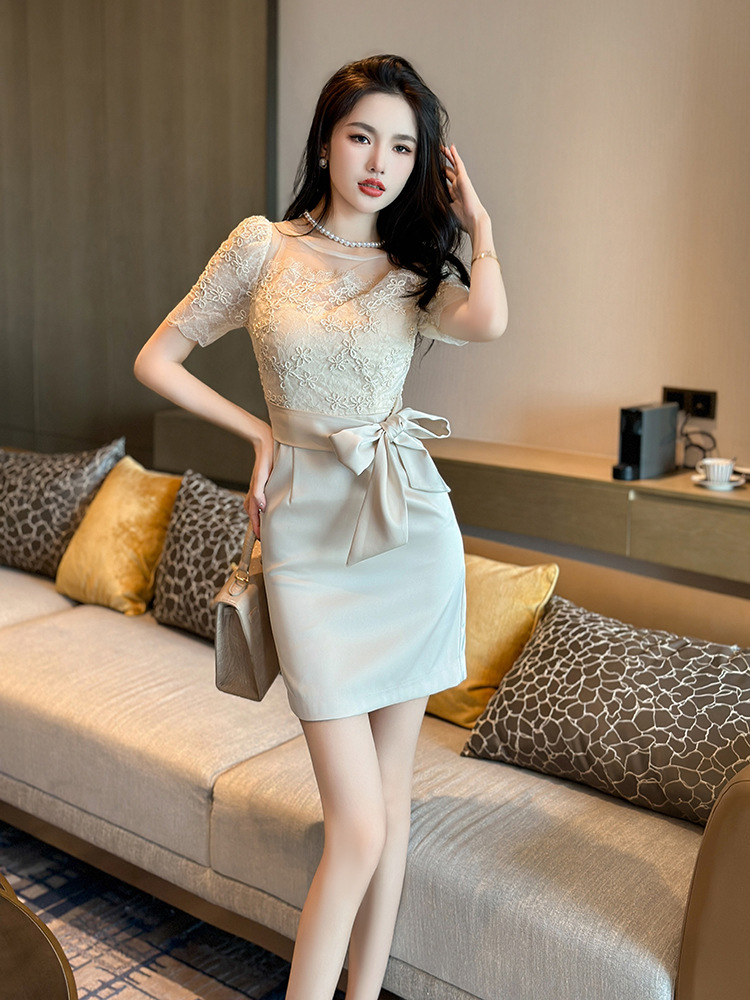 Chiếc đầm ôm dáng dành cho các bạn nữ có chiều cao khiêm tốn. Thiết kế theo phong cách Pháp, điểm nhấn là phần kết hợp ren tinh tế và dây buộc nơ eo, tôn lên đường cong cơ thể. Đầm dáng bó, phù hợp mặc trong mùa hè. Có thể phối cùng giày cao gót và túi xách nhỏ để đi làm hoặc dự tiệc. | Tên sản phẩm: Váy Đầm Liền Thân Nữ Chất Liệu Ren Dáng Ôm Hàng Mùa Hè - Thời Trang Nữ | Mã sản phẩm: K7694 - Giá: 1.190.000đ | Mã nhà sản xuất: CHDG-G04Hình ảnh sản phẩm