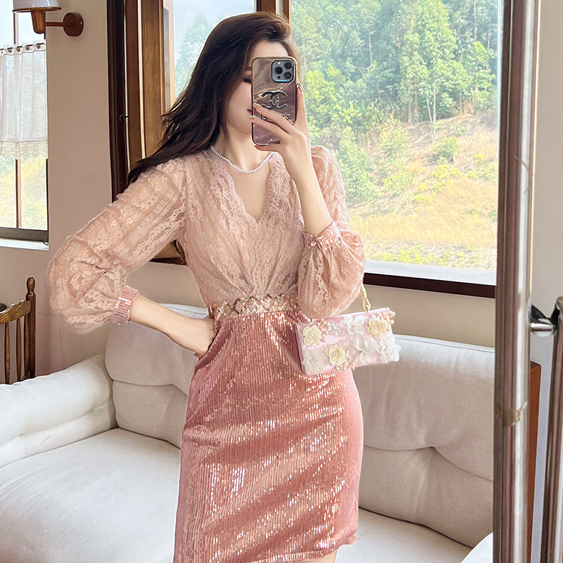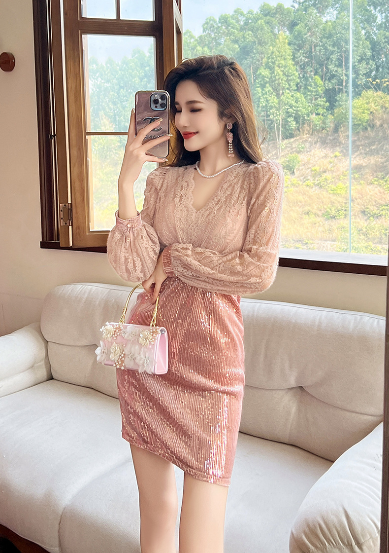 Váy dành cho các dịp lễ trọng đại, thiết kế ôm dáng tôn lên đường nét cơ thể. Cổ chữ V kết hợp điểm nhấn ren và ánh kim lấp lánh tạo nên vẻ thanh lịch. Chất liệu co giãn nhẹ mang lại sự thoải mái khi mặc. Sản phẩm phù hợp cho các buổi tiệc hoặc sự kiện quan trọng. Có thể giặt bằng tay và phơi trong bóng mát để giữ form váy lâu bền. | Tên sản phẩm: Váy Đầm Liền Thân Nữ Chất Liệu Ren Cổ Chữ V Hàng Mùa Xuân Thu Đông - Thời Trang Nữ | Mã sản phẩm: K7722 - Giá: 1.280.000đ | Mã nhà sản xuất: CHDG-G04Hình ảnh sản phẩm