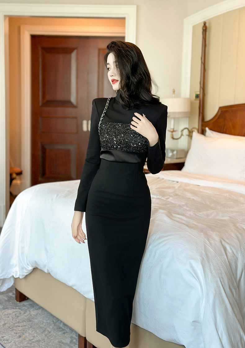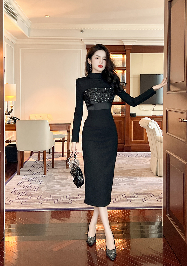 Chiếc đầm ngắn tay dáng dài màu đen, lấy cảm hứng từ phong cách thanh lịch kinh điển. Thiết kế ôm vừa vặn tôn lên những đường nét cơ thể một cách tinh tế. Chất vải dày dặn, mềm mại giúp bạn thoải mái vận động. Đây là mẫu đầm mặc được nhiều dịp trong mùa xuân, có thể mặc một mình hoặc phối cùng áo khoác nhẹ. Dễ dàng phối hợp với các phụ kiện để tạo nên vẻ ngoại hình ưa nhìn. | Tên sản phẩm: Váy Đầm Liền Thân Nữ Hàng Mùa Xuân Thu Đông - Thời Trang Nữ | Mã sản phẩm: K7725 - Giá: 1.100.000đ | Mã nhà sản xuất: CHDG-G03Hình ảnh sản phẩm