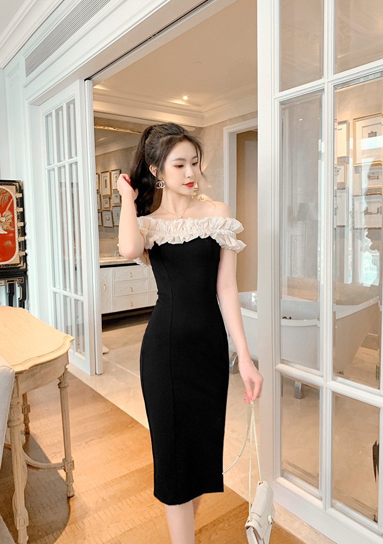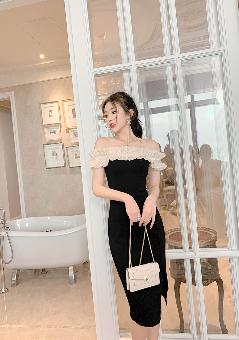 Đầm thiết kế dáng cổ trễ, khoe bờ v gợi cảm. Điểm nhấn từ đường cắt tà màu sắc tương phản cùng đường viền vải xòe mềm mại quanh cổ và tay, tạo nét duyên dáng. Form đầm ôm nhẹ vòng eo, bo vừa vặn ở hông và xẻ nhẹ phần tà. Sản phẩm phù hợp cho nhiều dịp đi chơi, dạo phố. Mặc kết hợp cùng giày sandal hoặc giày đế bằng để hoàn thiện bộ trang phục. | Tên sản phẩm: Váy Đầm Liền Thân Nữ Hàng Mùa Hè - Thời Trang Nữ | Mã sản phẩm: K7767 - Giá: 950.000đ | Mã nhà sản xuất: CHDG-G03Hình ảnh sản phẩm