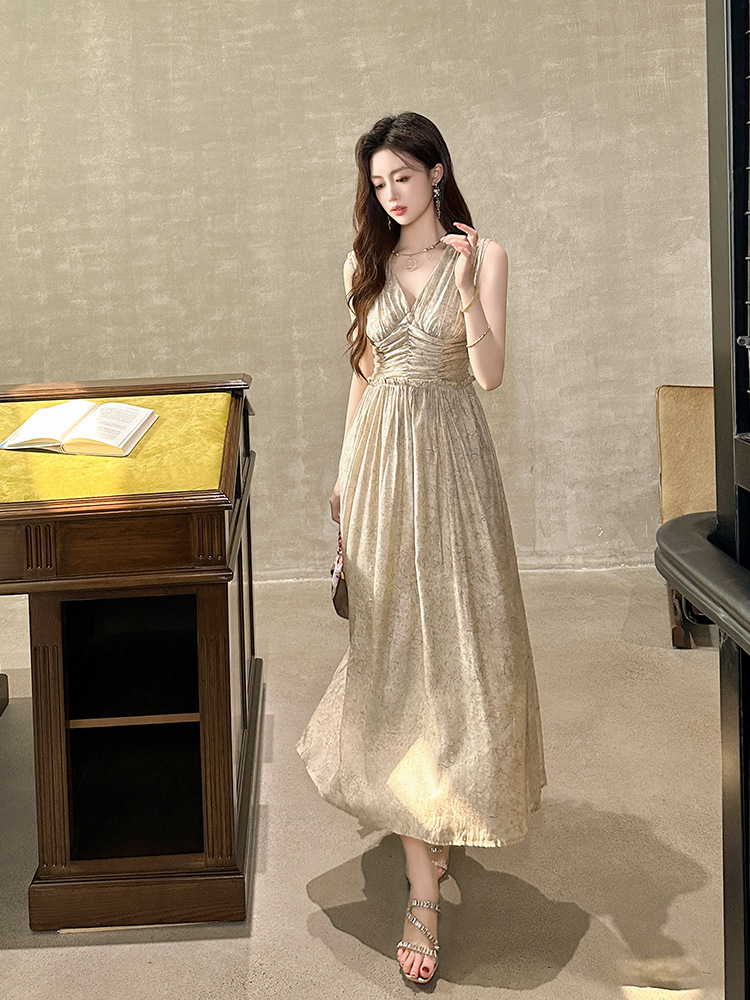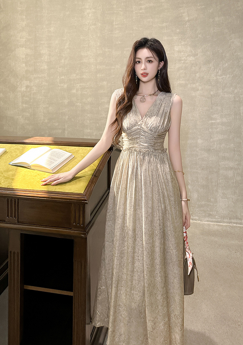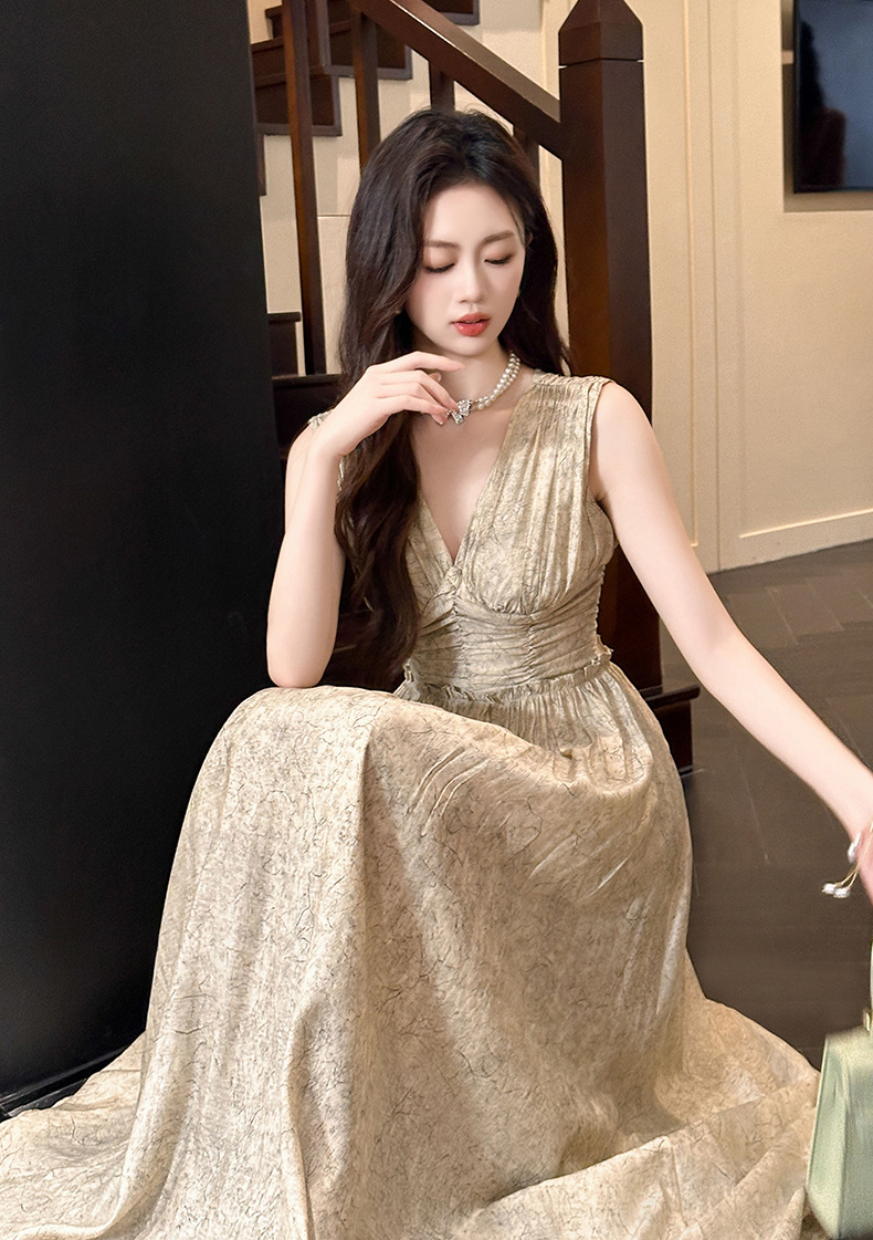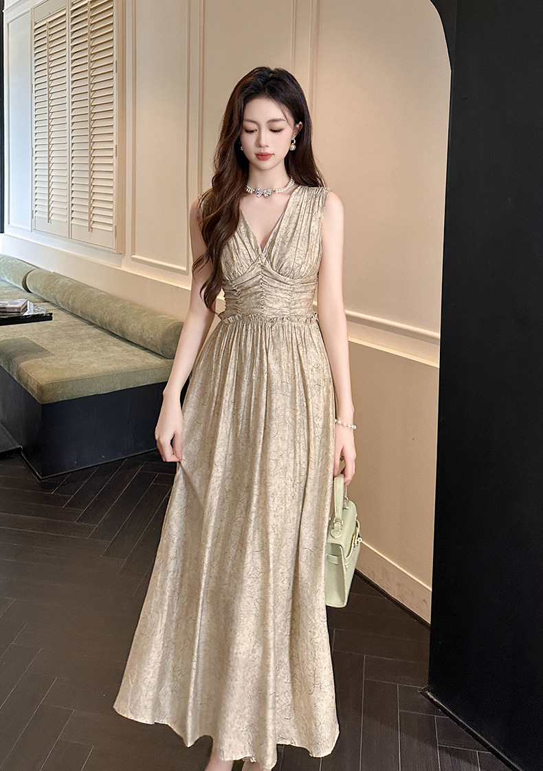 Chiếc váy dài dành cho các buổi tiệc tối, thiết kế không tay với phần cổ sâu tạo điểm nhấn. Đường eo được may ôn nhẹ giúp tôn dáng. Form dáng xòe nhẹ phía dưới tạo cảm giác thoải mái và thanh thoát khi di chuyển. Chất vải mềm mại, phù hợp để mặc trong những dịp lễ hội hay sự kiện. Sản phẩm dễ dàng phối cùng phụ kiện và giày cao gót. | Tên sản phẩm: Váy Đầm Liền Thân Dáng Dài Nữ Dáng Chữ A Cổ Chữ V Hàng Mùa Hè - Thời Trang Nữ | Mã sản phẩm: K7842 - Giá: 1.360.000đ | Mã nhà sản xuất: CHDG-G04Hình ảnh sản phẩm