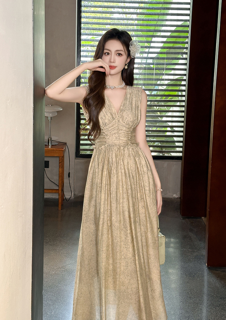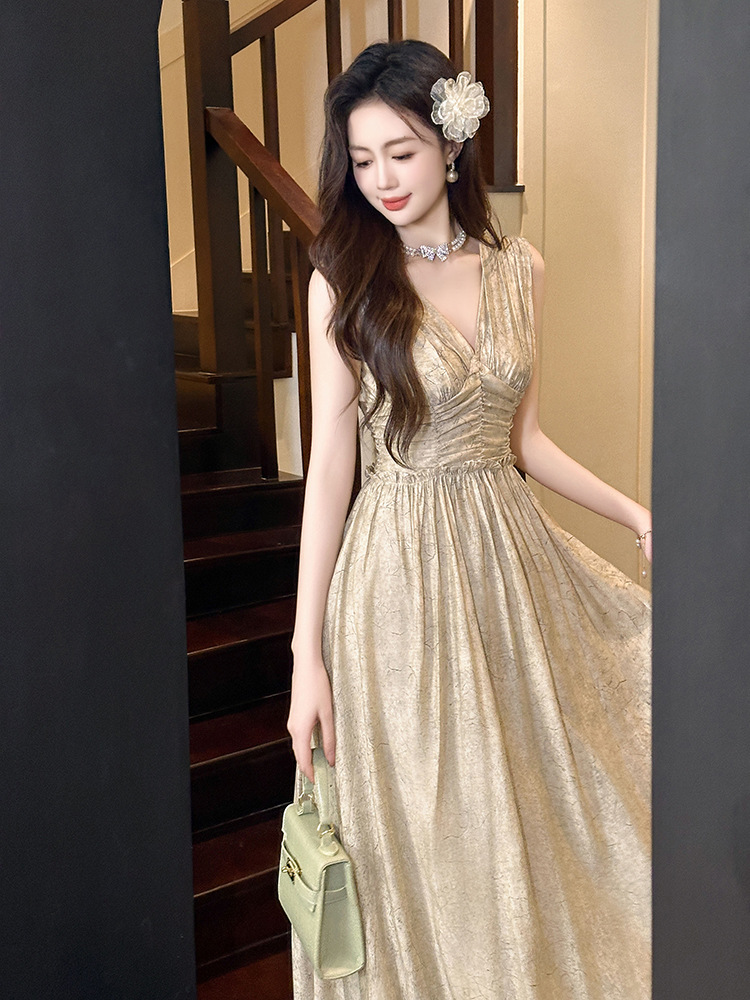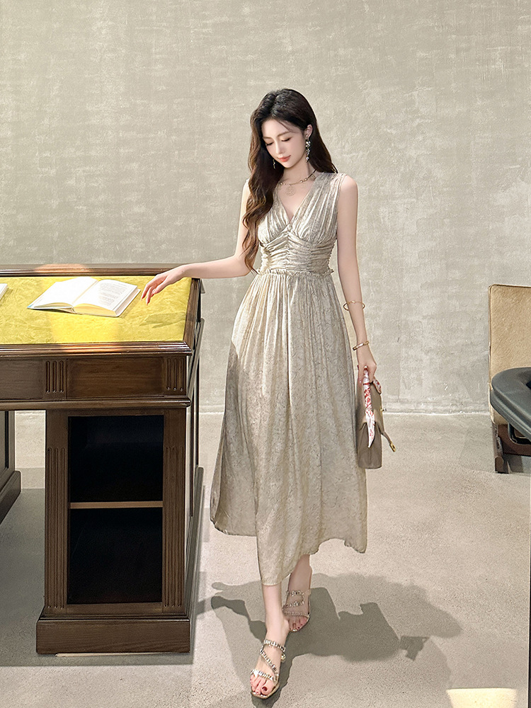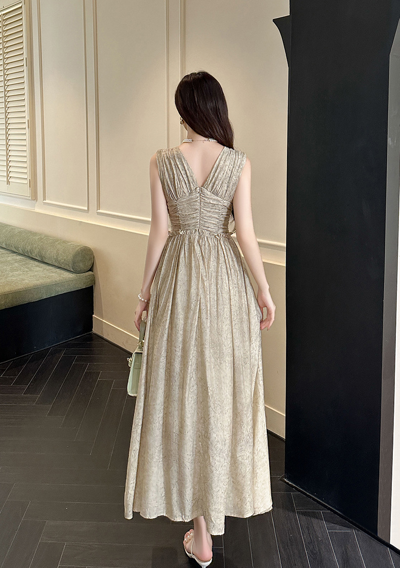 Chiếc váy dài dành cho các buổi tiệc tối, thiết kế không tay với phần cổ sâu tạo điểm nhấn. Đường eo được may ôn nhẹ giúp tôn dáng. Form dáng xòe nhẹ phía dưới tạo cảm giác thoải mái và thanh thoát khi di chuyển. Chất vải mềm mại, phù hợp để mặc trong những dịp lễ hội hay sự kiện. Sản phẩm dễ dàng phối cùng phụ kiện và giày cao gót. | Tên sản phẩm: Váy Đầm Liền Thân Dáng Dài Nữ Dáng Chữ A Cổ Chữ V Hàng Mùa Hè - Thời Trang Nữ | Mã sản phẩm: K7842 - Giá: 1.360.000đ | Mã nhà sản xuất: CHDG-G04Hình ảnh sản phẩm