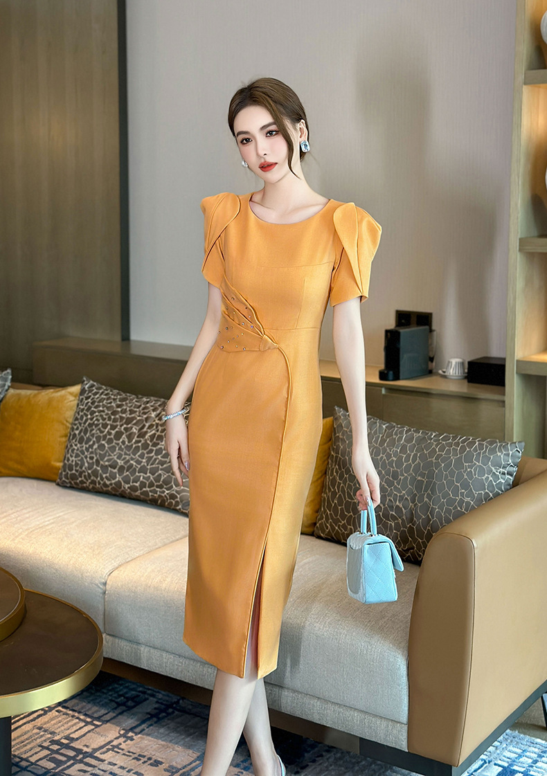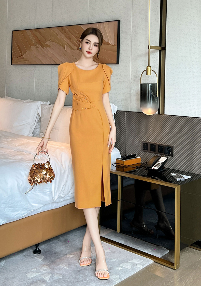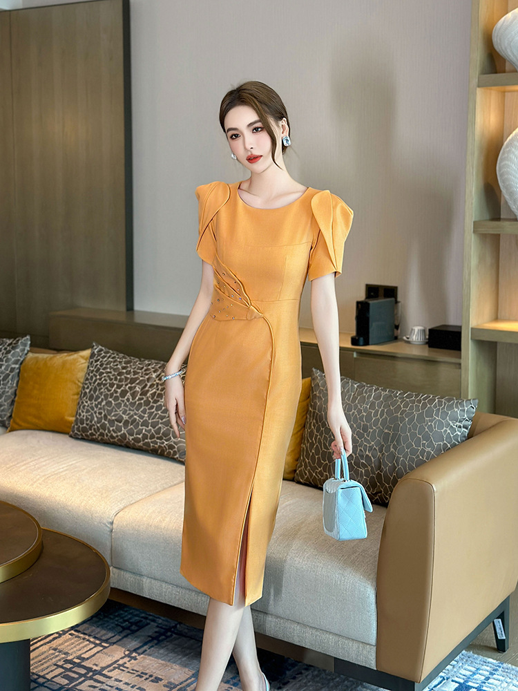 Đầm ôm dáng mới cho các dịp cần trang trọng. Thiết kế nổi bật với phần tay bồng công phu, điểm xuyết các hạt đá lấp lánh tinh tế. Kiểu dáng ôm sát cơ thể, tôn lên đường nét. Chất vải dày dặn giúp giữ form tuyệt đối. Sản phẩm phù hợp mặc trong các buổi tiệc, sự kiện hoặc đi làm. Kết hợp cùng phụ kiện nhỏ để hoàn thiện vẻ ngoài ấn tượng. | Tên sản phẩm: Váy Đầm Liền Thân Nữ Tay Phồng Hàng Mùa Hè - Thời Trang Nữ | Mã sản phẩm: K7880 - Giá: 1.220.000đ | Mã nhà sản xuất: CHDG-G04Hình ảnh sản phẩm