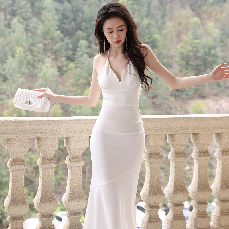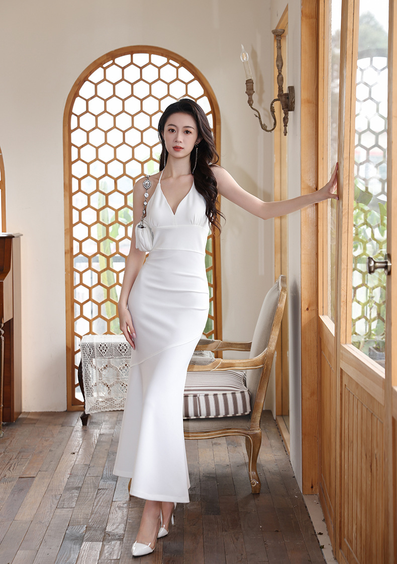 Chiếc đầm dạ hội dáng dài, điểm nhấn là phần cổ vòng và cổ chữ V tạo nên nét gợi cảm tinh tế. Thiết kế ôm sát eo, xòe nhẹ ở phần thân dưới theo phong cách đuôi cá, giúp tôn lên những đường nét cơ thể. Kiểu dáng mang hơi thở thời trang Pháp, phù hợp cho những buổi tiệc hay sự kiện vào mùa hè. Mặc cùng giày cao gót và phụ kiện đơn giản để hoàn thiện vẻ ngoài. | Tên sản phẩm: Váy Đầm Liền Thân Nữ Kiểu Đuôi Cá Cổ Chữ V Hàng Mùa Hè - Thời Trang Nữ | Mã sản phẩm: K7892 - Giá: 1.020.000đ | Mã nhà sản xuất: CHDG-G03Hình ảnh sản phẩm
