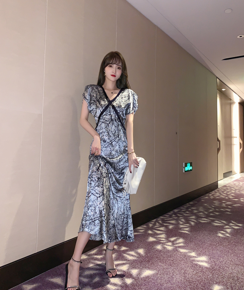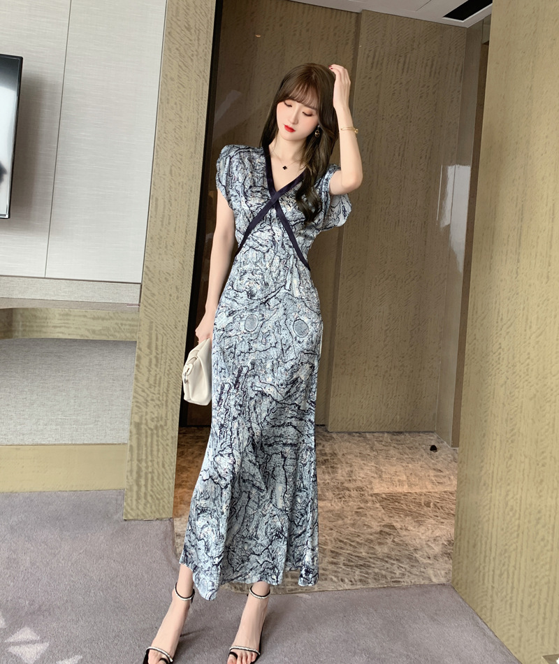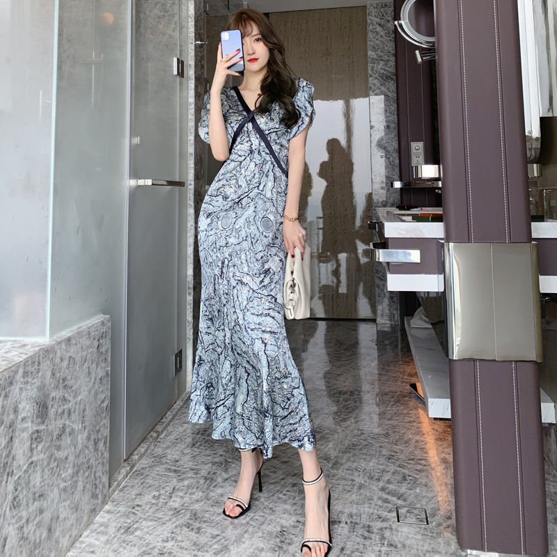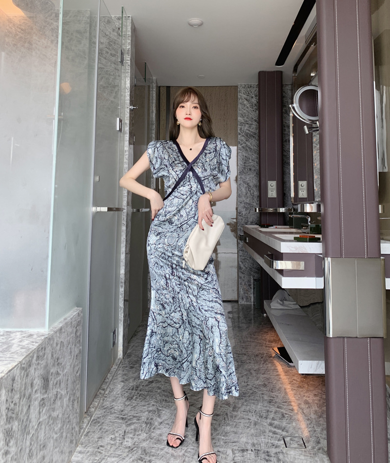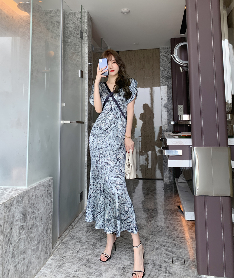 Chiếc đầm dáng dài với phần chân váy xòe mềm mại tựa đuôi cá, điểm nhấn là cổ khoét hình chữ V thanh lịch. Chất vải lụa mịn in họa tiết hoa nổi bật, ôm nhẹ vào eo giúp tôn dáng người mặc. Sản phẩm thích hợp cho những buổi gặp mặt hoặc dạo phố vào mùa hè. Khi giặt, nên hạn chế vắt mạnh và phơi nơi râm mát để giữ form váy và màu sắc lâu bền. | Tên sản phẩm: Váy Đầm Liền Thân Dáng Dài Nữ Họa Tiết Hoa Cổ Chữ V Hàng Mùa Hè - Thời Trang Nữ | Mã sản phẩm: K7901 - Giá: 990.000đ | Mã nhà sản xuất: CHDG-G03Hình ảnh sản phẩm