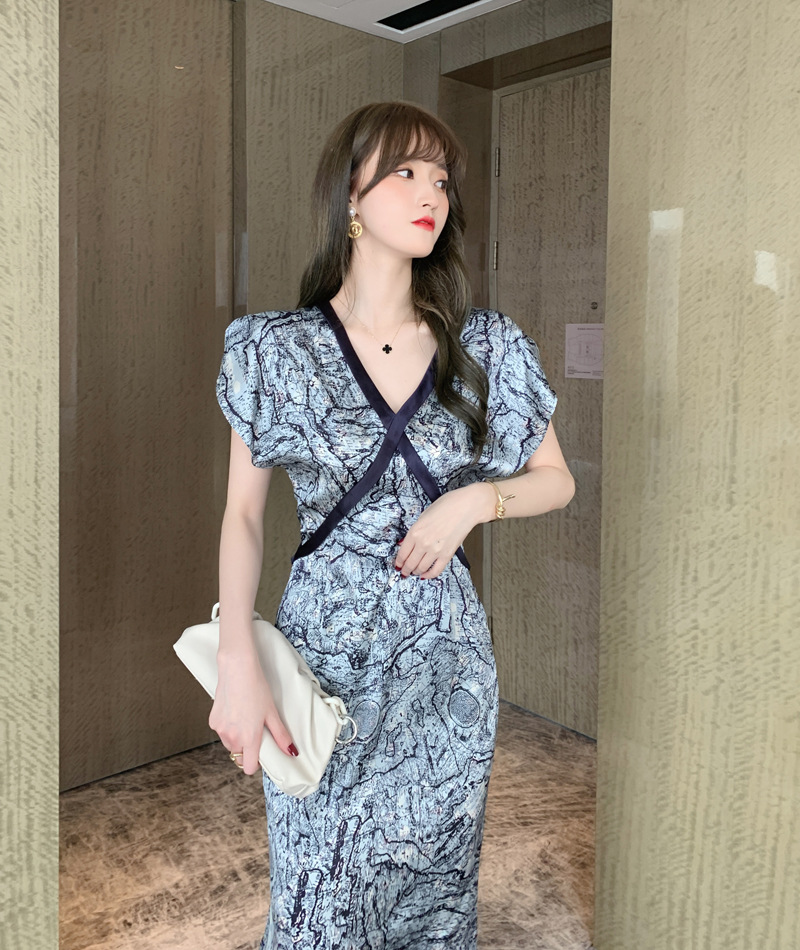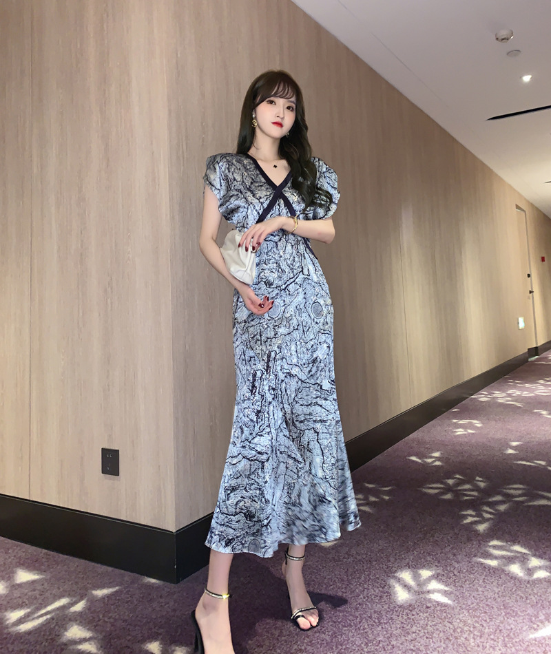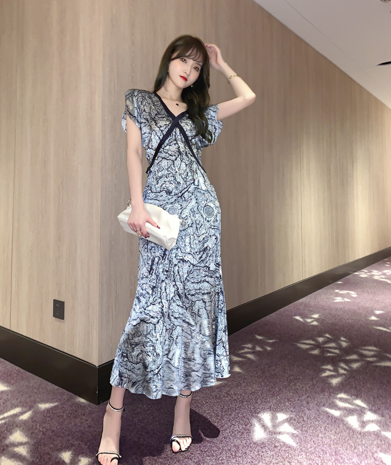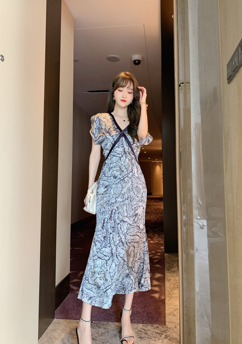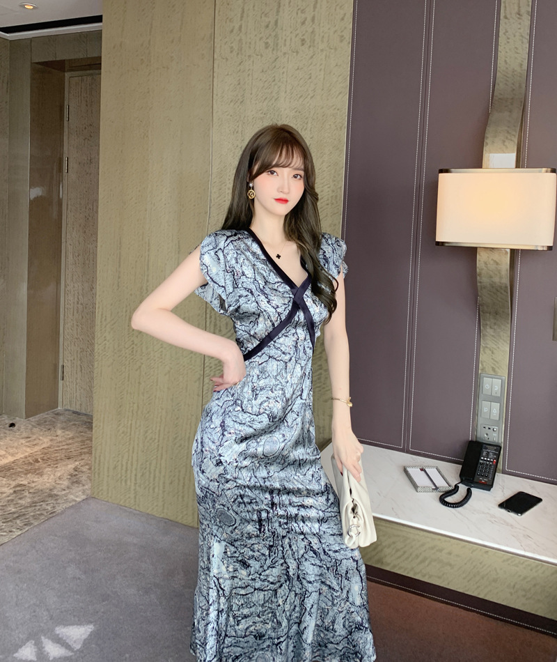Chiếc đầm dáng dài với phần chân váy xòe mềm mại tựa đuôi cá, điểm nhấn là cổ khoét hình chữ V thanh lịch. Chất vải lụa mịn in họa tiết hoa nổi bật, ôm nhẹ vào eo giúp tôn dáng người mặc. Sản phẩm thích hợp cho những buổi gặp mặt hoặc dạo phố vào mùa hè. Khi giặt, nên hạn chế vắt mạnh và phơi nơi râm mát để giữ form váy và màu sắc lâu bền. | Tên sản phẩm: Váy Đầm Liền Thân Dáng Dài Nữ Họa Tiết Hoa Cổ Chữ V Hàng Mùa Hè - Thời Trang Nữ | Mã sản phẩm: K7901 - Giá: 990.000đ | Mã nhà sản xuất: CHDG-G03Hình ảnh sản phẩm