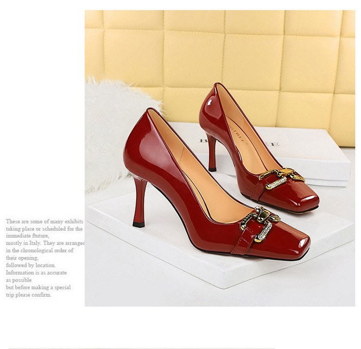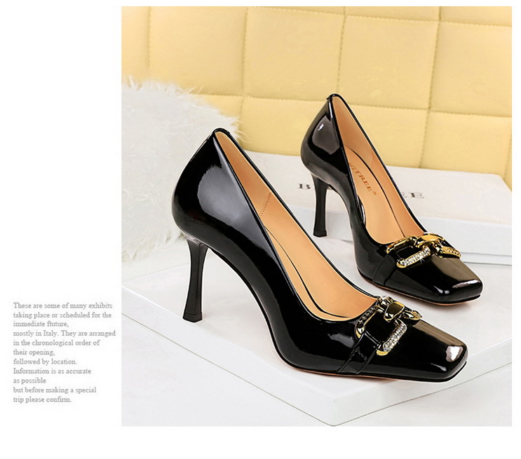 Đôi giày này có phần mũi vuông nhẹ nhàng, kết hợp cùng thiết kế cổ thấp tôn dáng. Chất liệu bề mặt bóng đẹp, điểm nhấn là khóa kim loại lấp lánh gắn đá. Phần gót rất cao và thanhai mảnh, giúp tôn lên vẻ thanh lịch cho người mang. Bạn có thể dễ dàng phối cùng nhiều trang phục khác nhau để tạo điểm nhấn nổi bật cho set đồ thêm phần ấn tượng. | Tên sản phẩm: Giày Cao Gót Nữ Gắn Đá Gót Nhọn Phong Cách Âu Mỹ - Giày Dép Nữ | Mã sản phẩm: L0002 - Giá: 640.000đ | Mã nhà sản xuất: PITYIN-G02Hình ảnh sản phẩm