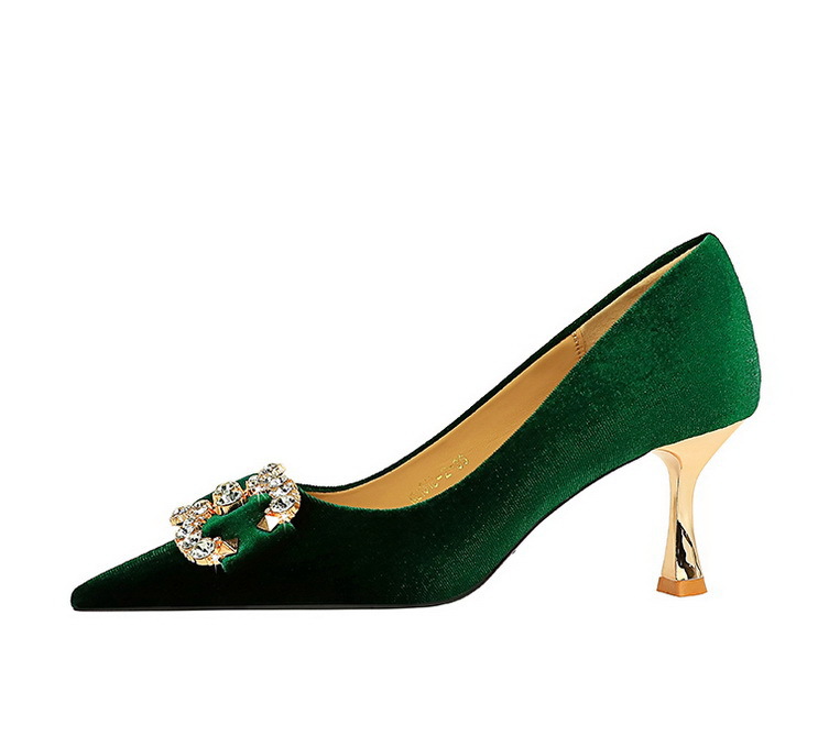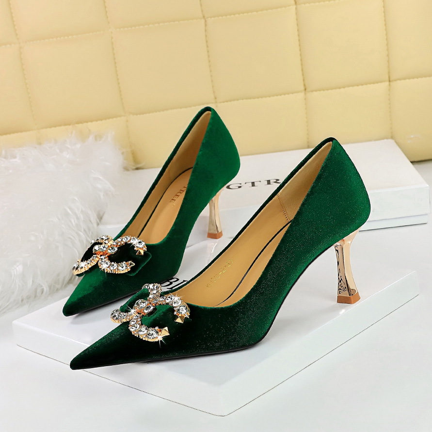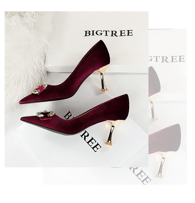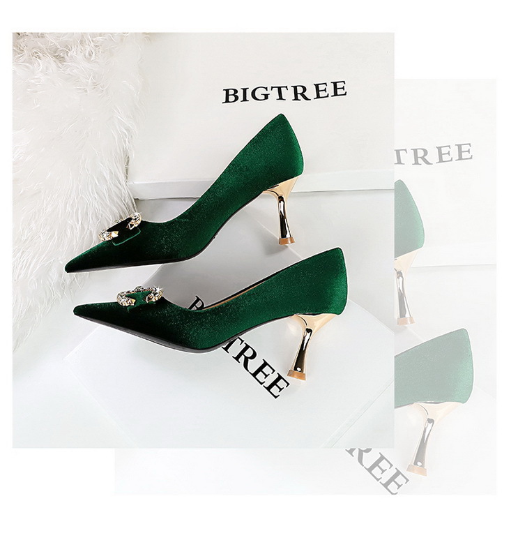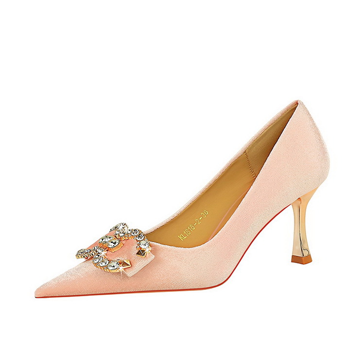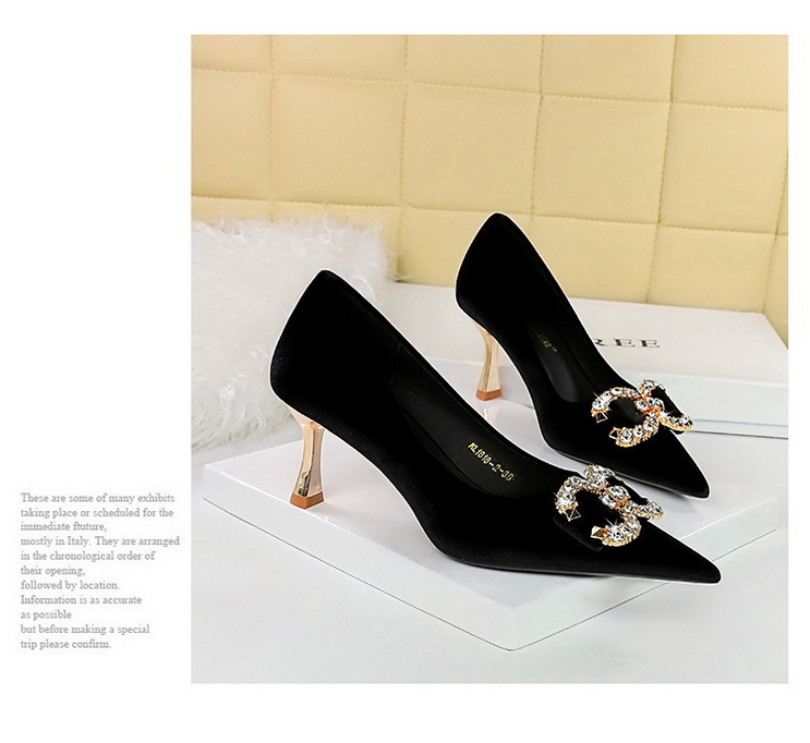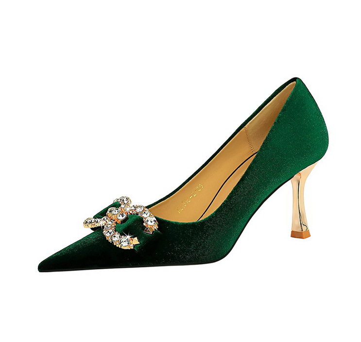 Đôi giày cao gót này có phần mũi nhọn và cổ giày thấp, tạo nên vẻ thanh thoát. Chất liệu bề mặt được làm từ vải mịn có độ mềm mại. Điểm nhấn nổi bật là chi tiết nơ kết hợp cùng khóa đá lấp lánh, mang đến vẻ đẹp dịu dàng và nữ tính. Kiểu dáng rất phù hợp để mang trong các buổi tiệc hay sự kiện. Sử dụng bằng cách mang cùng những bộ trang phục đi dự tiệc để hoàn thiện phong cách. | Tên sản phẩm: Giày Cao Gót Nữ Thắt Nơ Bướm Gắn Đá Mũi Nhọn - Giày Dép Nữ | Mã sản phẩm: L0005 - Giá: 700.000đ | Mã nhà sản xuất: PITYIN-G02Hình ảnh sản phẩm