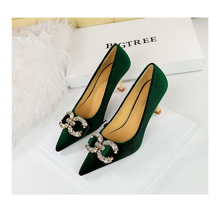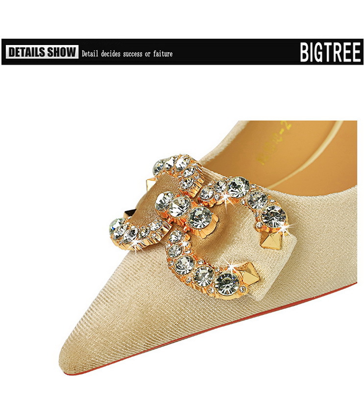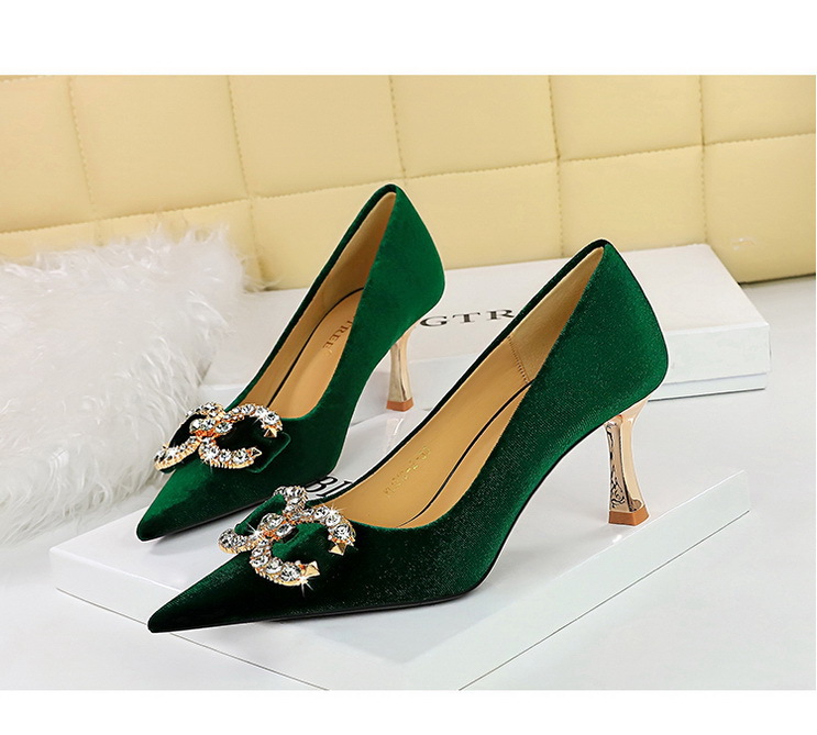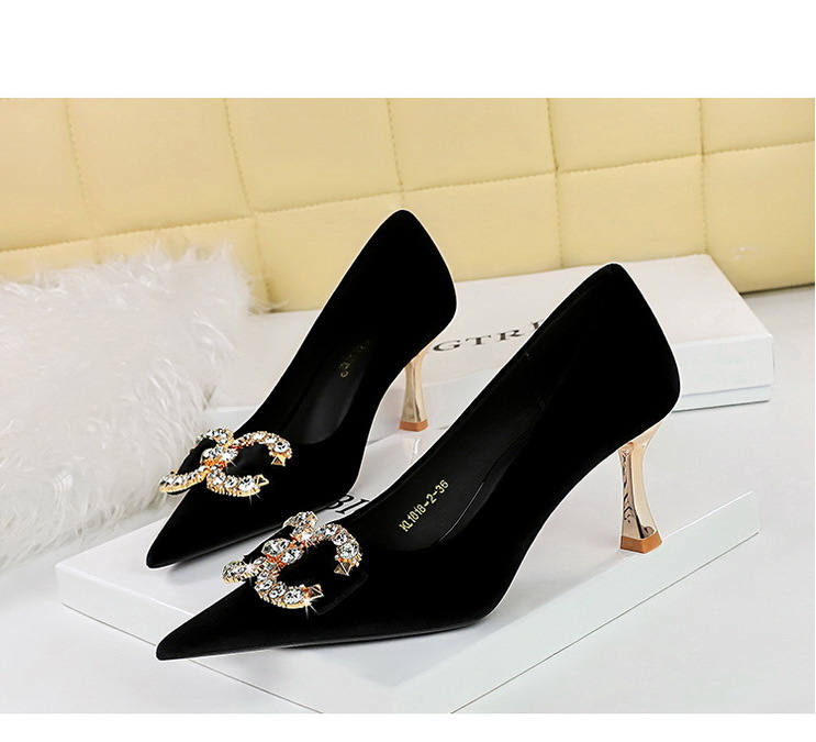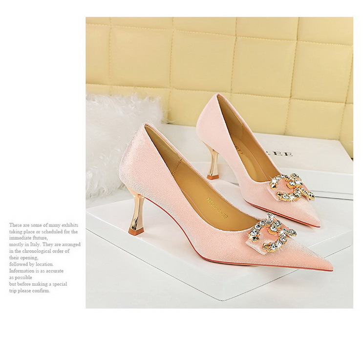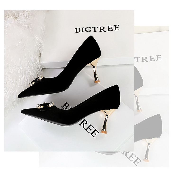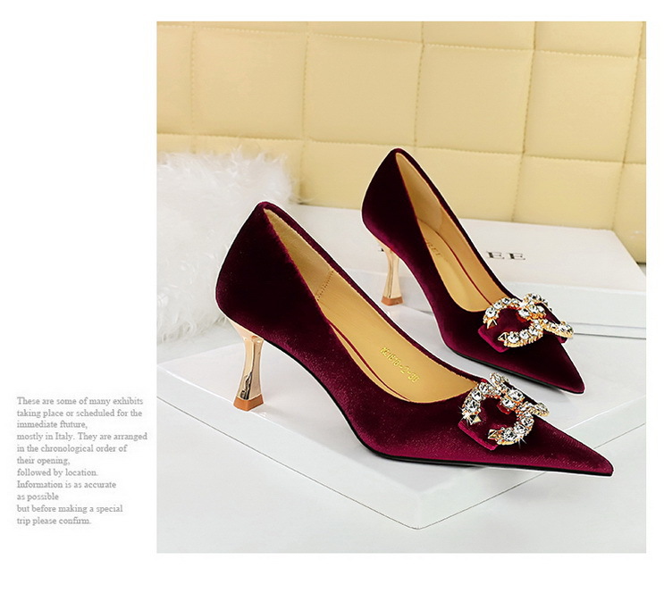 Đôi giày cao gót này có phần mũi nhọn và cổ giày thấp, tạo nên vẻ thanh thoát. Chất liệu bề mặt được làm từ vải mịn có độ mềm mại. Điểm nhấn nổi bật là chi tiết nơ kết hợp cùng khóa đá lấp lánh, mang đến vẻ đẹp dịu dàng và nữ tính. Kiểu dáng rất phù hợp để mang trong các buổi tiệc hay sự kiện. Sử dụng bằng cách mang cùng những bộ trang phục đi dự tiệc để hoàn thiện phong cách. | Tên sản phẩm: Giày Cao Gót Nữ Thắt Nơ Bướm Gắn Đá Mũi Nhọn - Giày Dép Nữ | Mã sản phẩm: L0005 - Giá: 700.000đ | Mã nhà sản xuất: PITYIN-G02Hình ảnh sản phẩm