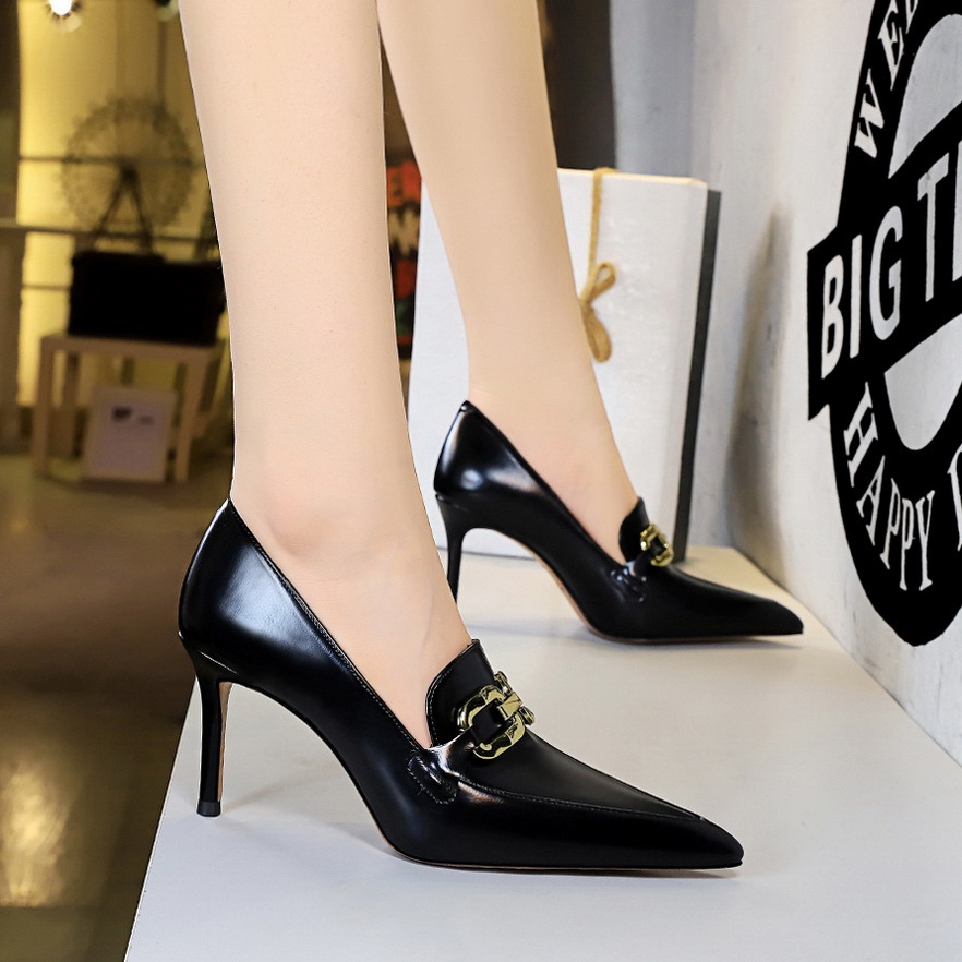 Đôi giày này mang phong cách cổ điển châu Âu với kiểu dáng mũi nhọn thanh lịch. Phần gót nhọn cao giúp tôn dáng người sử dụng một cách tinh tế. Điểm nhấn đặc biệt là khóa kim loại phía trước, tạo nên nét cá tính mạnh mẽ. Thiết kế ôm sát chân với phần cổ sâu, mang lại sự thoải mái khi di chuyển. Sản phẩm phù hợp để phối cùng nhiều loại trang phục khác nhau. Có thể dùng để đi làm, dự tiệc hoặc trong những dịp giao lưu thông thường. | Tên sản phẩm: Giày Cao Gót Nữ Mũi Nhọn Gót Nhọn Phong Cách Âu Mỹ - Giày Dép Nữ | Mã sản phẩm: L0007 - Giá: 700.000đ | Mã nhà sản xuất: PITYIN-G02Hình ảnh sản phẩm