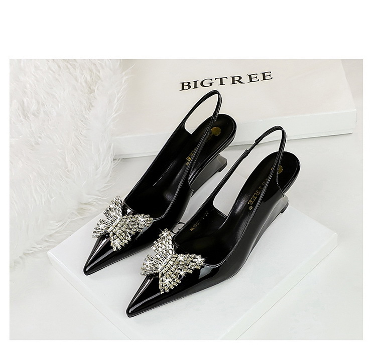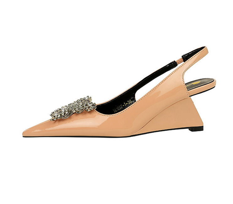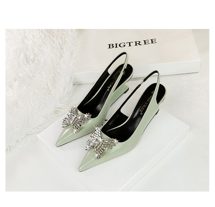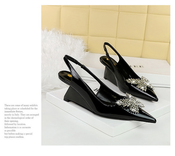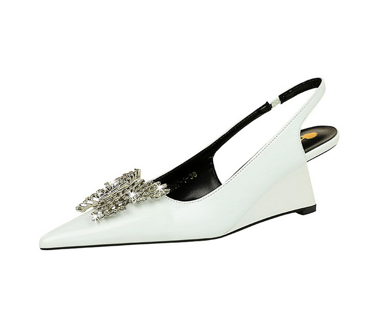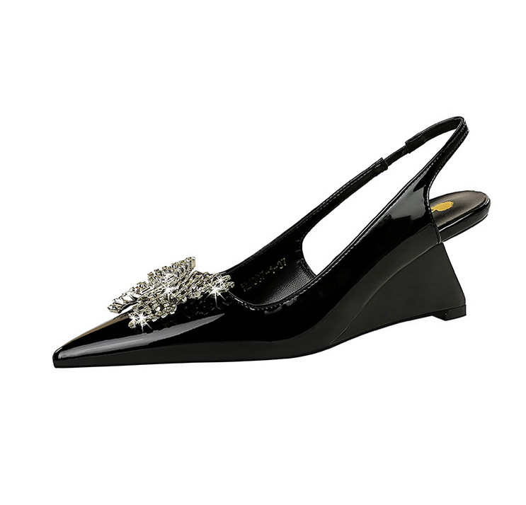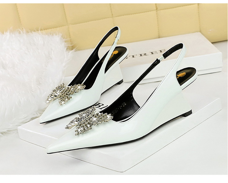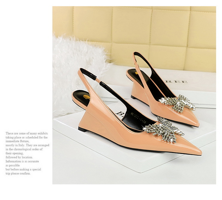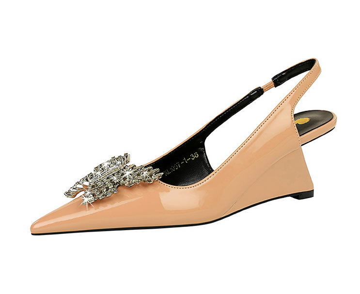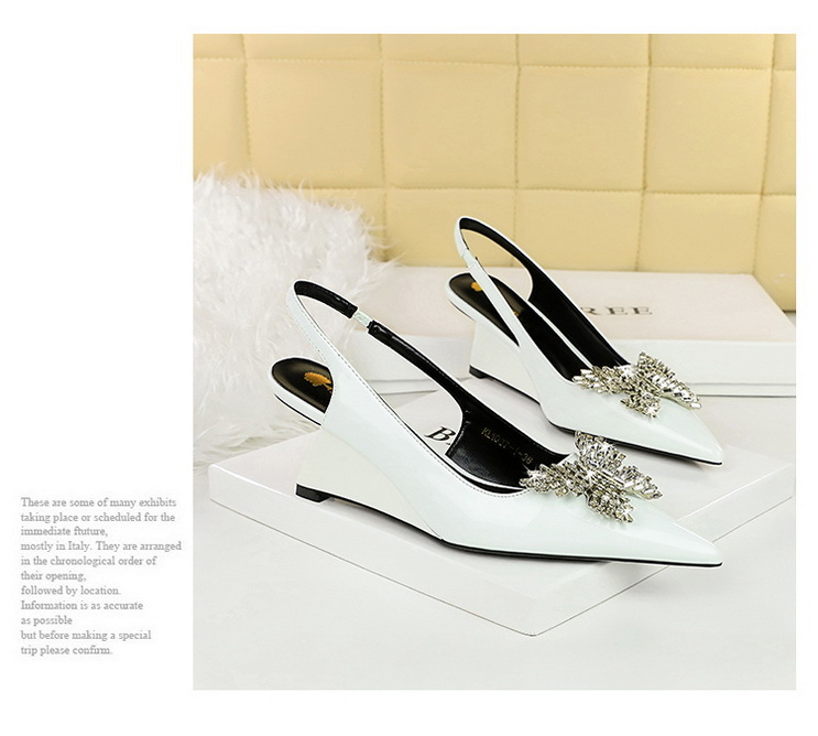 Đôi giày nữ này có phần đế cao vừa phải giúp tôn dáng. Mũi giày nhọn và phần cổ giày thấp tạo nên điểm nhấn thanh lịch. Phần thân giày làm từ chất liệu da bóng, điểm xuyết nơ kết hợp viên đá lấp lánh ở phía trước. Phía sau gót có dây cài bằng kim loại giúp giữ chân chắc chắn. Kiểu dáng thoáng mát nhờ thiết kế khoét họa tiết ở phần thân. Dễ dàng phối cùng nhiều trang phục khác nhau. | Tên sản phẩm: Giày Cao Gót Nữ Thắt Nơ Bướm Gắn Đá Mũi Nhọn Đế Xuồng - Giày Dép Nữ | Mã sản phẩm: L0016 - Giá: 810.000đ | Mã nhà sản xuất: PITYIN-G03Hình ảnh sản phẩm