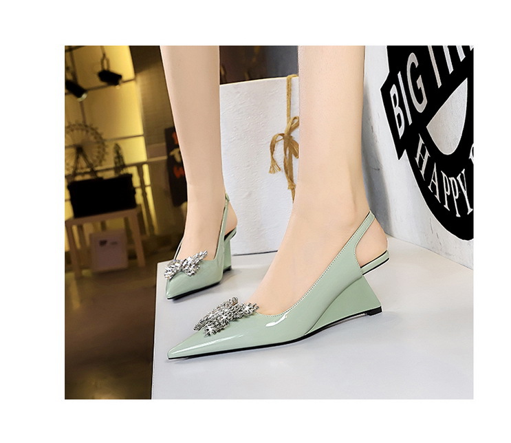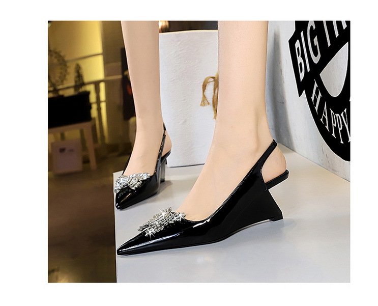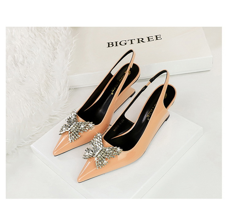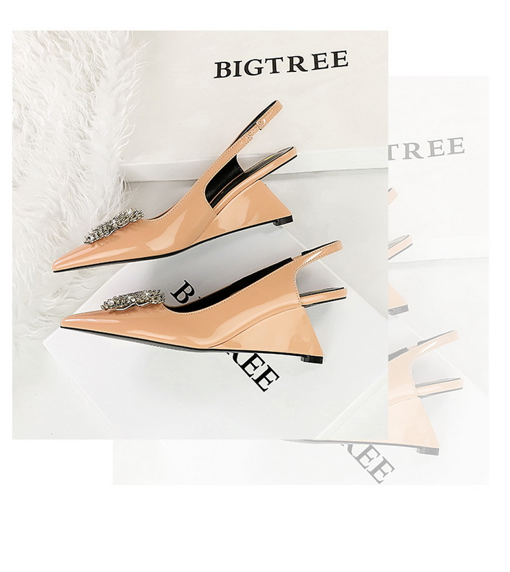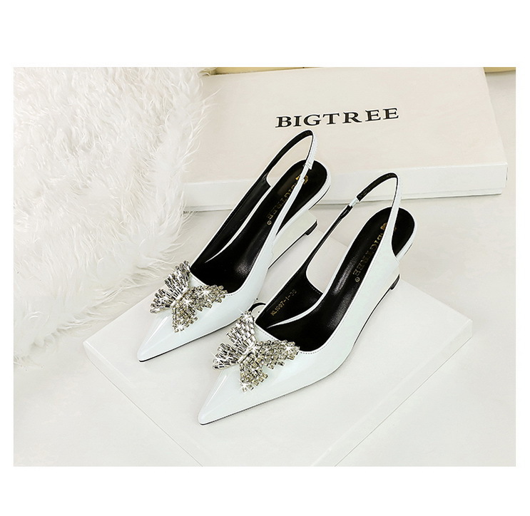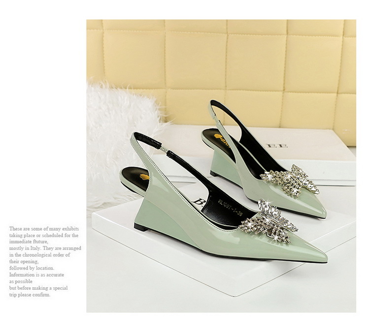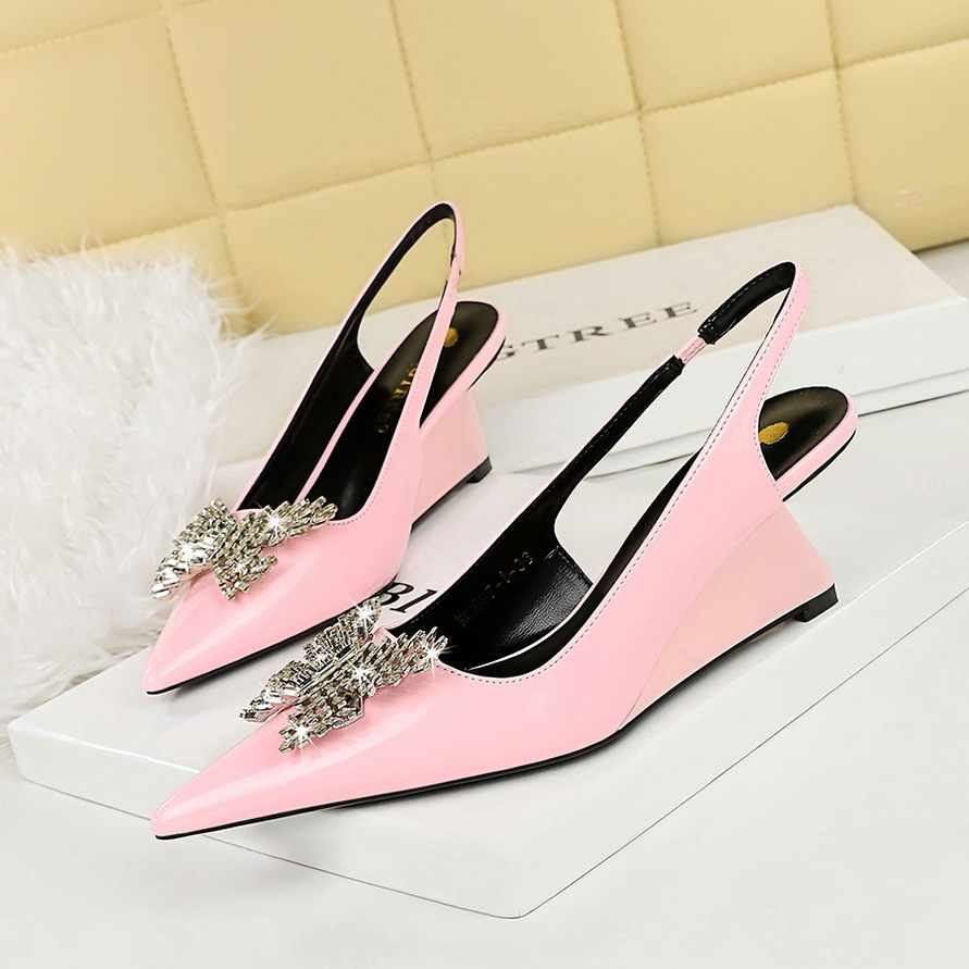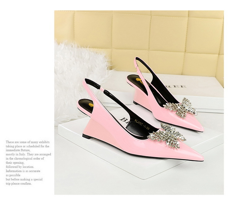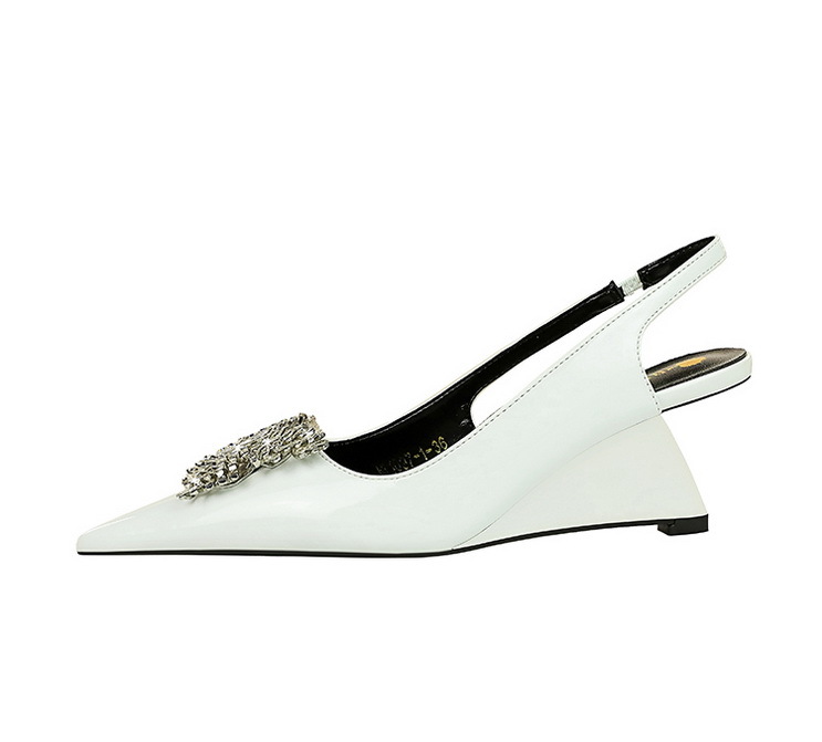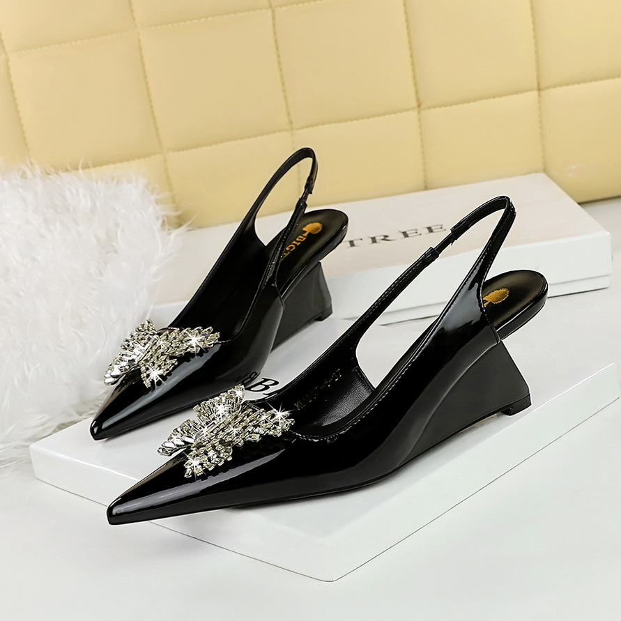 Đôi giày nữ này có phần đế cao vừa phải giúp tôn dáng. Mũi giày nhọn và phần cổ giày thấp tạo nên điểm nhấn thanh lịch. Phần thân giày làm từ chất liệu da bóng, điểm xuyết nơ kết hợp viên đá lấp lánh ở phía trước. Phía sau gót có dây cài bằng kim loại giúp giữ chân chắc chắn. Kiểu dáng thoáng mát nhờ thiết kế khoét họa tiết ở phần thân. Dễ dàng phối cùng nhiều trang phục khác nhau. | Tên sản phẩm: Giày Cao Gót Nữ Thắt Nơ Bướm Gắn Đá Mũi Nhọn Đế Xuồng - Giày Dép Nữ | Mã sản phẩm: L0016 - Giá: 810.000đ | Mã nhà sản xuất: PITYIN-G03Hình ảnh sản phẩm