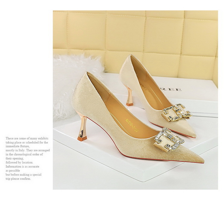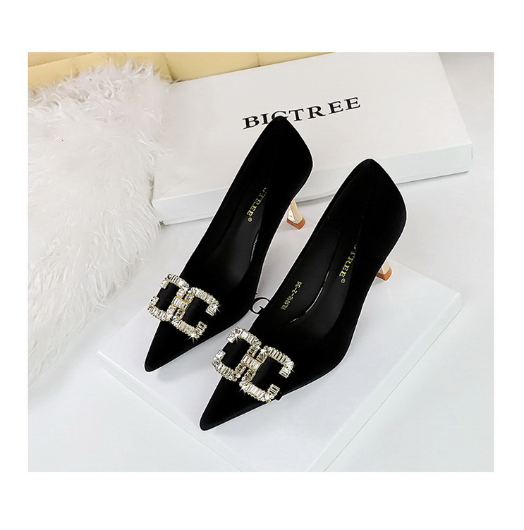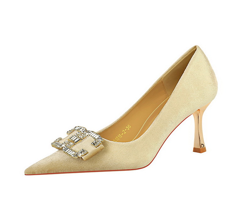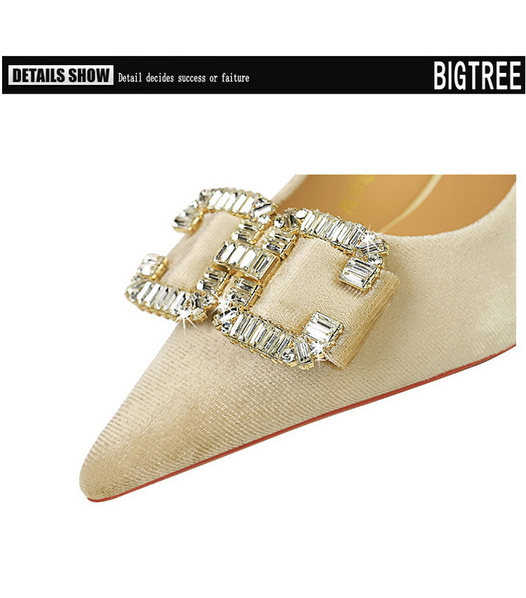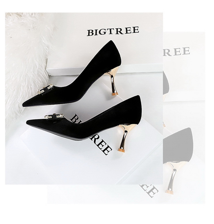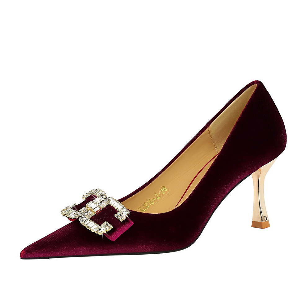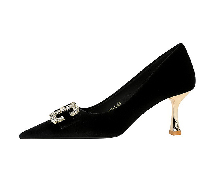 Đôi giày này có phần mũi nhọn thanh lịch và cổ giày thấp, tôn dáng bàn chân một cách tinh tế. Chất liệu bề mặt được làm từ loại vải mịn màng, mang lại cảm giác dễ chịu. Điểm nhấn nổi bật là nơ kết hợp với viên đá lấp lánh được đính khéo léo ở phía trước, tạo nên vẻ đẹp duyên dáng. Sản phẩm thích hợp để mang trong các buổi tiệc hay sự kiện. Khi sử dụng, bạn nên kết hợp với những bộ trang phục có phong cách nhẹ nhàng, nữ tính. | Tên sản phẩm: Giày Cao Gót Nữ Thắt Nơ Bướm Gắn Đá Mũi Nhọn - Giày Dép Nữ | Mã sản phẩm: L0019 - Giá: 700.000đ | Mã nhà sản xuất: PITYIN-G02Hình ảnh sản phẩm