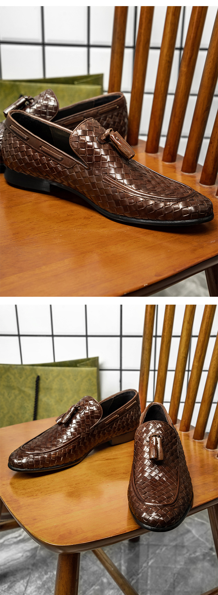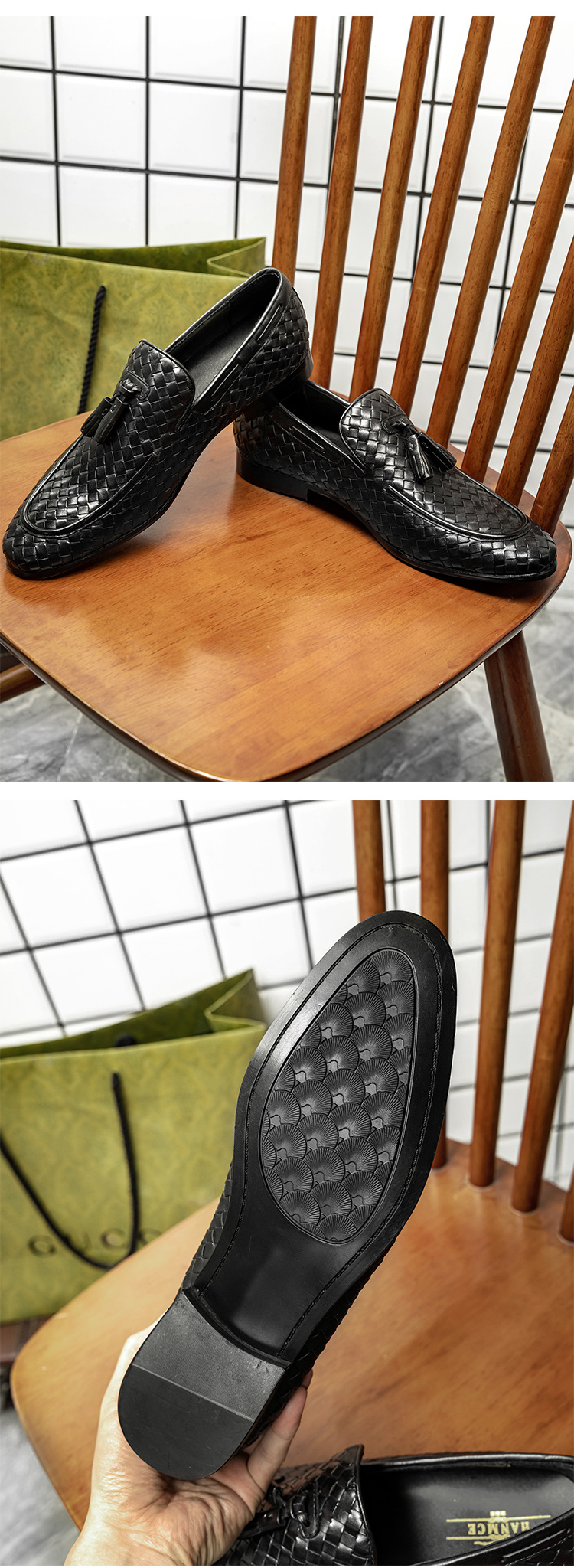 Giày tây nam kiểu dáng Hàn Quốc với điểm nhấn là những tua rua mềm mại tạo nên vẻ trẻ trung, năng động. Sản phẩm được làm thủ công từ chất liệu da bò mềm, mang lại cảm giác dễ chịu khi mang. Kiểu giày không cần buộc dây rất thuận tiện, phù hợp cho cả công sở và những dịp gặp gỡ thông thường. Bạn có thể kết hợp cùng quần âu hoặc quần jeans để có vẻ ngoài chỉn chu mà vẫn thoải mái. | Tên sản phẩm: Giày Da Nam Chất Liệu Da Bò Phong Cách Hàn Quốc - Giày Dép Nam | Mã sản phẩm: L0037 - Giá: 2.850.000đ | Mã nhà sản xuất: YADAO-G06Hình ảnh sản phẩm