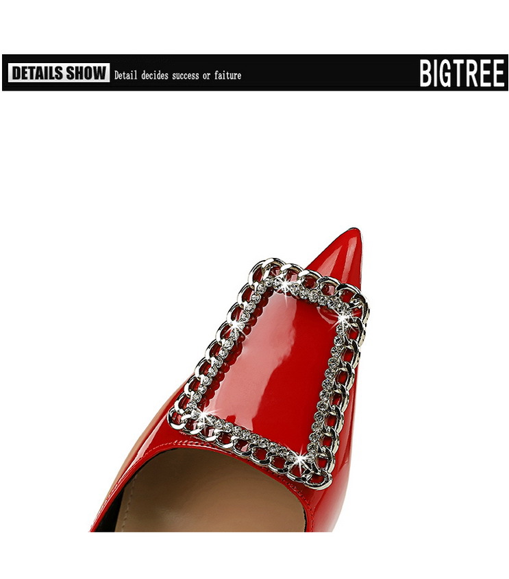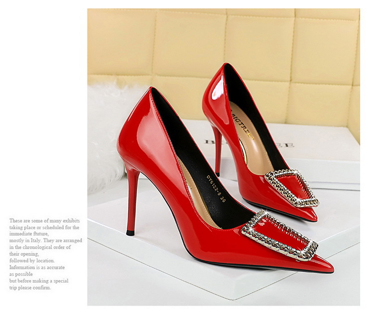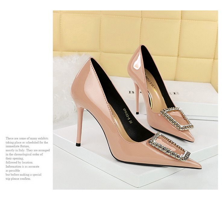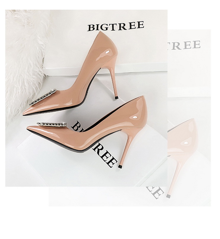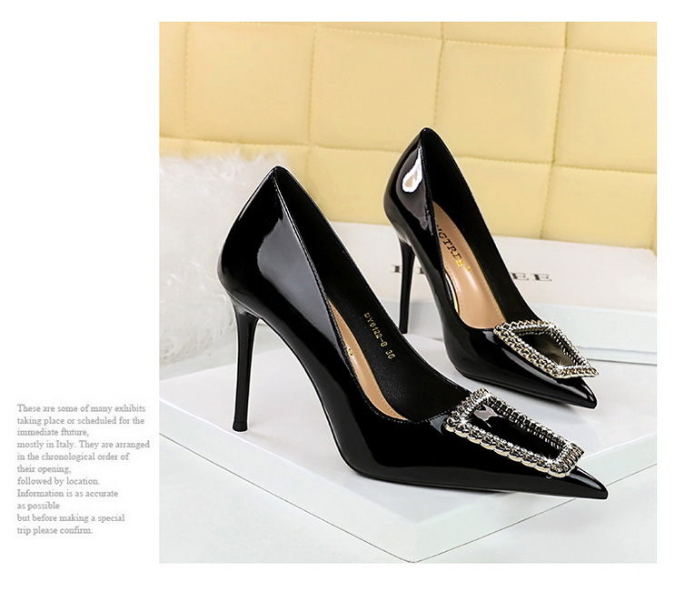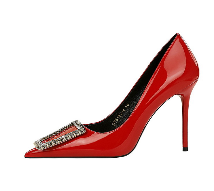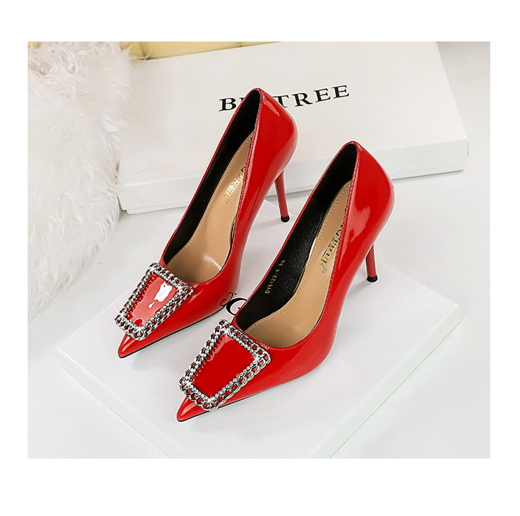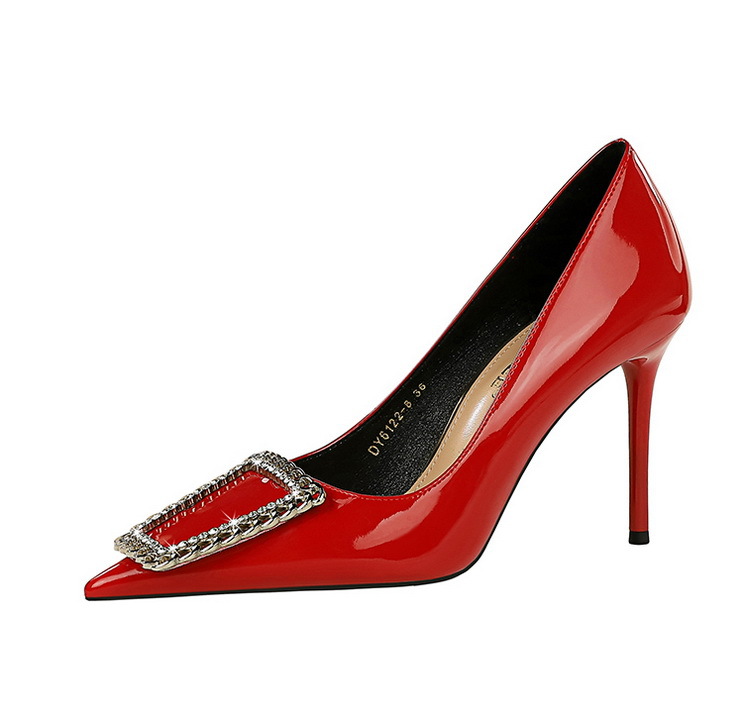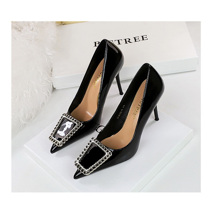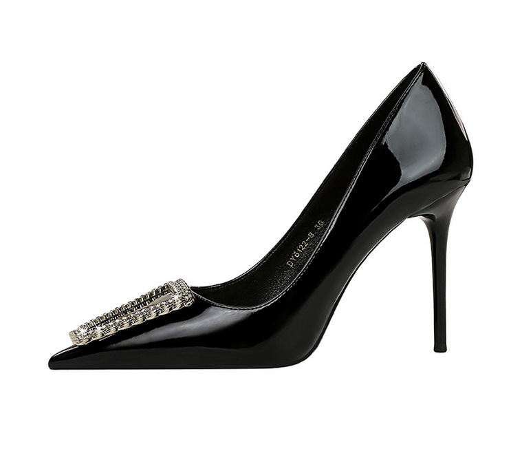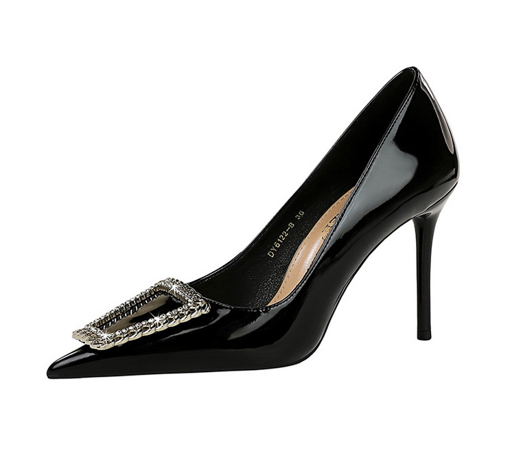 Đôi giày cao gót này có mặt ngoài bóng loáng, kiểu dáng mũi nhọn và cổ thấp tạo nên vẻ thanh thoát. Điểm nhấn nổi bật là chiếc khóa kim loại lớn được đính viên đá lấp lánh, giúp đôi chân thêm phần nổi bật. Chất liệu da bóng mềm mại, ôm chân nhẹ nhàng. Sản phẩm thích hợp để mang trong các buổi tiệc hoặc sự kiện. Khi sử dụng, nên chọn size vừa vặn và kéo khóa cẩn thận để giữ chân thoải mái. | Tên sản phẩm: Giày Cao Gót Nữ Gắn Đá Mũi Nhọn Phong Cách Âu Mỹ - Giày Dép Nữ | Mã sản phẩm: L0042 - Giá: 650.000đ | Mã nhà sản xuất: PITYIN-G02Hình ảnh sản phẩm