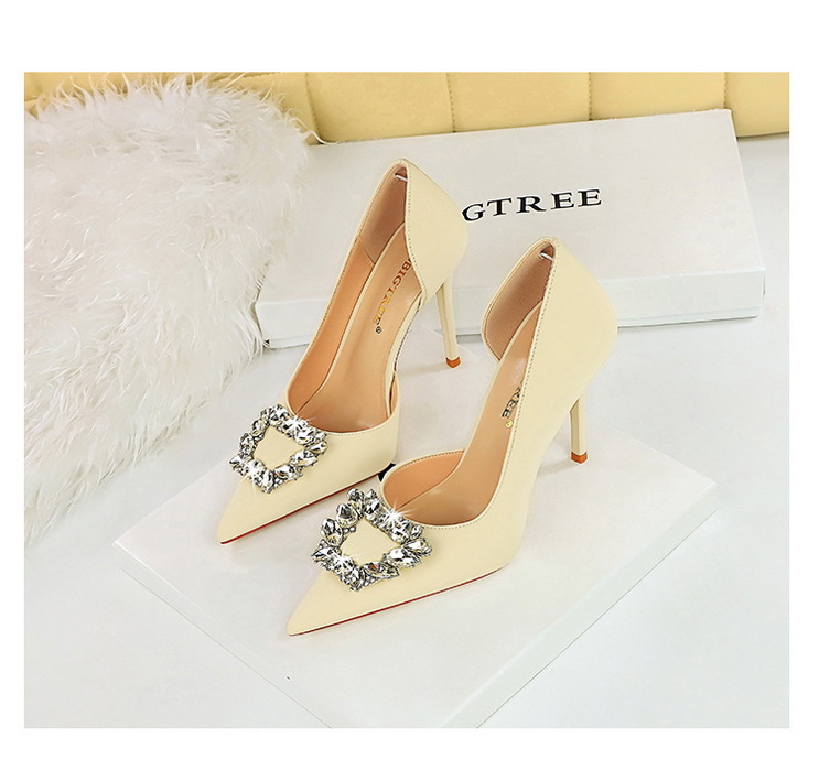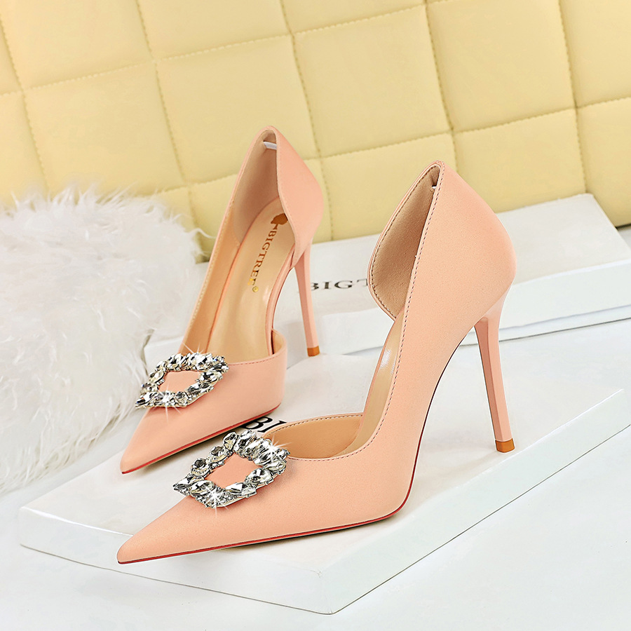 Đôi giày này có kiểu dáng mũi nhọn và gót rất cao, tạo dáng thanh thoát. Phần thân giày phía bên được khoét lỗ cách điệu, điểm thêm chi tiết khóa kim loại lấp lánh gắn đá. Kiểu dáng này mang phong cách châu Âu hiện đại, phù hợp cho các buổi tiệc hay sự kiện. Khi sử dụng, bạn nên chọn size vừa vặn với chân và kết hợp cùng những bộ trang phục dự tiệc. | Tên sản phẩm: Giày Cao Gót Nữ Gắn Đá Mũi Nhọn Gót Nhọn Phong Cách Âu Mỹ - Giày Dép Nữ | Mã sản phẩm: L0058 - Giá: 680.000đ | Mã nhà sản xuất: PITYIN-G02Hình ảnh sản phẩm