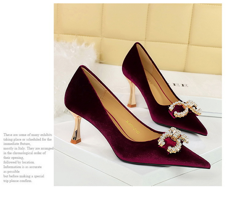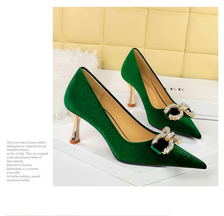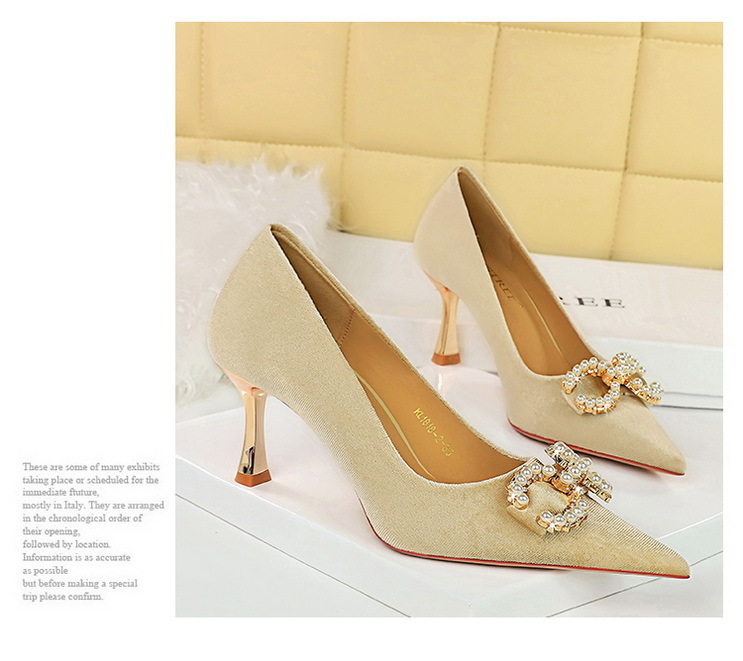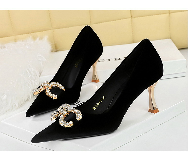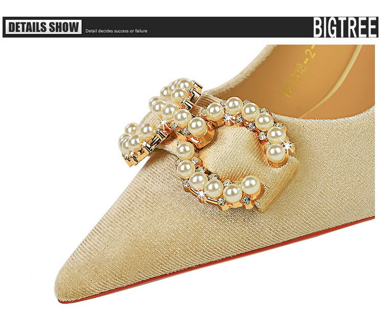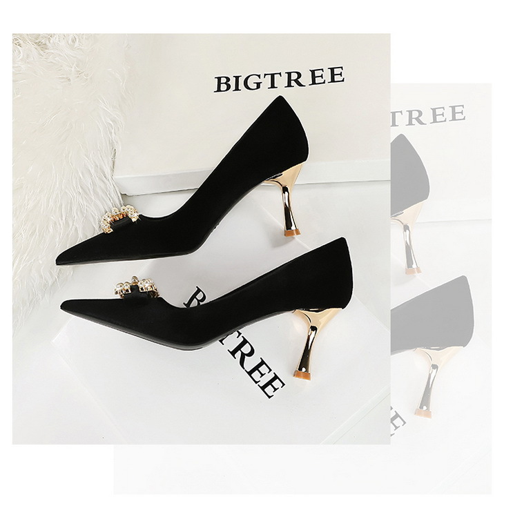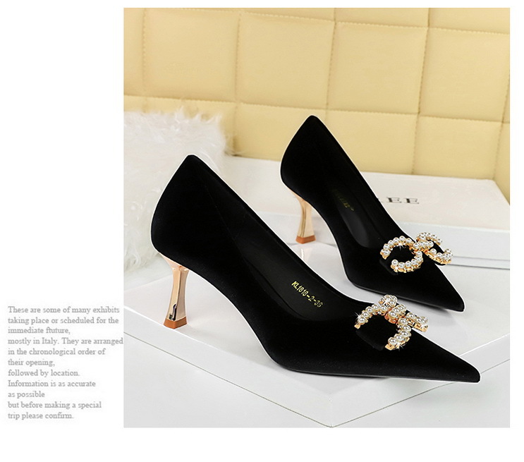 Đôi giày này có phần mũi nhọn thanh thoát và cổ giày thấp, tôn dáng bàn chân. Chất liệu bề mặt được làm từ loại vải mịn màng, tạo cảm giác mềm mại. Điểm nhấn nổi bật là chi tiết khóa kết hợp giữa hạt ngọc tr và viên đá lấp lánh, mang đến vẻ đẹp dịu dàng. Kiểu dáng phù hợp để mang trong các buổi họp mặt hoặc khi kết hợp cùng trang phục đi làm. Bạn có thể dễ dàng phối với nhiều loại trang phục khác nhau để tạo nên phong cách riêng. | Tên sản phẩm: Giày Cao Gót Nữ Gắn Đá Mũi Nhọn Phong Cách Hàn Quốc - Giày Dép Nữ | Mã sản phẩm: L0067 - Giá: 700.000đ | Mã nhà sản xuất: PITYIN-G02Hình ảnh sản phẩm