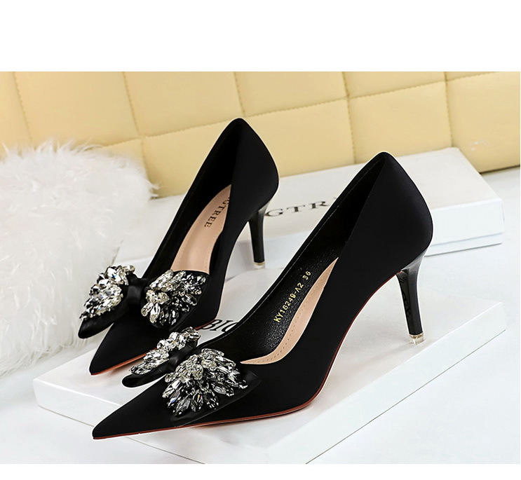 Đôi giày này mang phong cách châu Âu hiện đại, phù hợp cho các buổi tiệc hoặc sự kiện. Thiết kế có mũi nhọn thanh lịch, cổ giày thấp và gót nhọn cao giúp tôn dáng. Điểm nhấn nổi bật là nơ kết hợp với các viên đá lấp lánh tinh tế ở phần mu bàn chân. Sản phẩm dễ dàng phối cùng nhiều trang phục như đầm dự tiệc hay quần tây. Khi sử dụng, chỉ cần xỏ chân vào và điều chỉnh dây nơ cho vừa vặn và thoải mái. | Tên sản phẩm: Giày Cao Gót Nữ Thắt Nơ Bướm Gắn Đá Mũi Nhọn Gót Nhọn Phong Cách Âu Mỹ - Giày Dép Nữ | Mã sản phẩm: L0076 - Giá: 750.000đ | Mã nhà sản xuất: PITYIN-G02Hình ảnh sản phẩm
