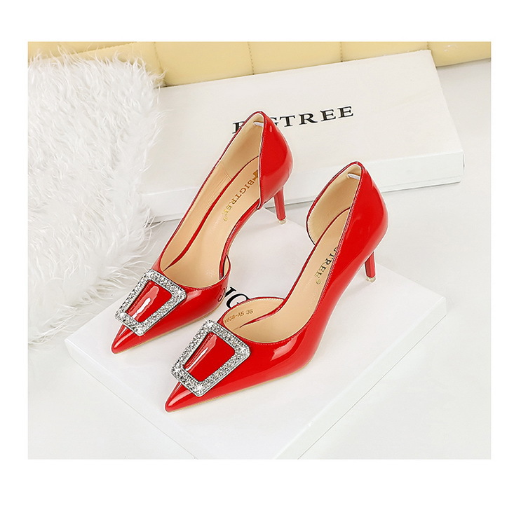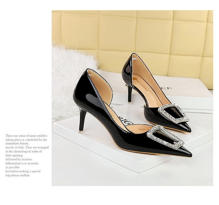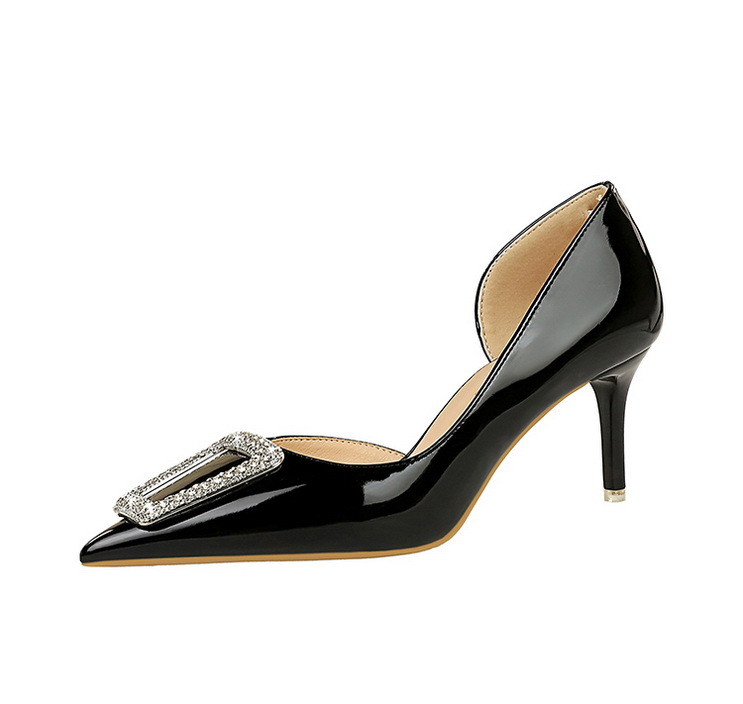 Đôi giày này có phần mũi nhọn thanh lịch và mặt trên làm từ chất liệu da bóng. Điểm nhấn đặc biệt là chi tiết khoét hở tinh tế ở hai bên hông, giúp đôi chân thêm phần quyến rũ. Khóa kim loại gắn đá lấp lánh được đặt cạnh mu bàn chân, tạo nên vẻ đẹp nổi bật. Kiểu dáng mang phong cách châu Âu hiện đại, rất phù hợp để đi trong các buổi tiệc. Sử dụng bằng cách xỏ chân vào và cài khóa thật khít là đã có ngay một phong cách hoàn hảo. | Tên sản phẩm: Giày Cao Gót Nữ Gắn Đá Mũi Nhọn Phong Cách Âu Mỹ - Giày Dép Nữ | Mã sản phẩm: L0099 - Giá: 750.000đ | Mã nhà sản xuất: PITYIN-G02Hình ảnh sản phẩm