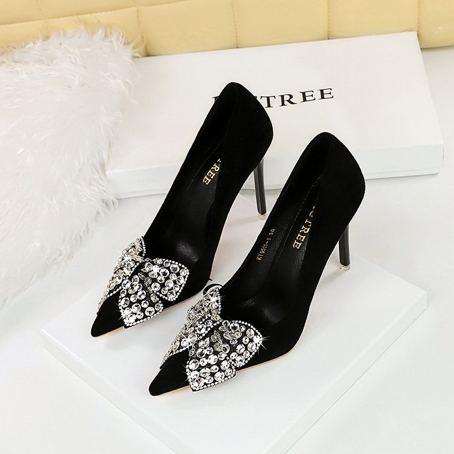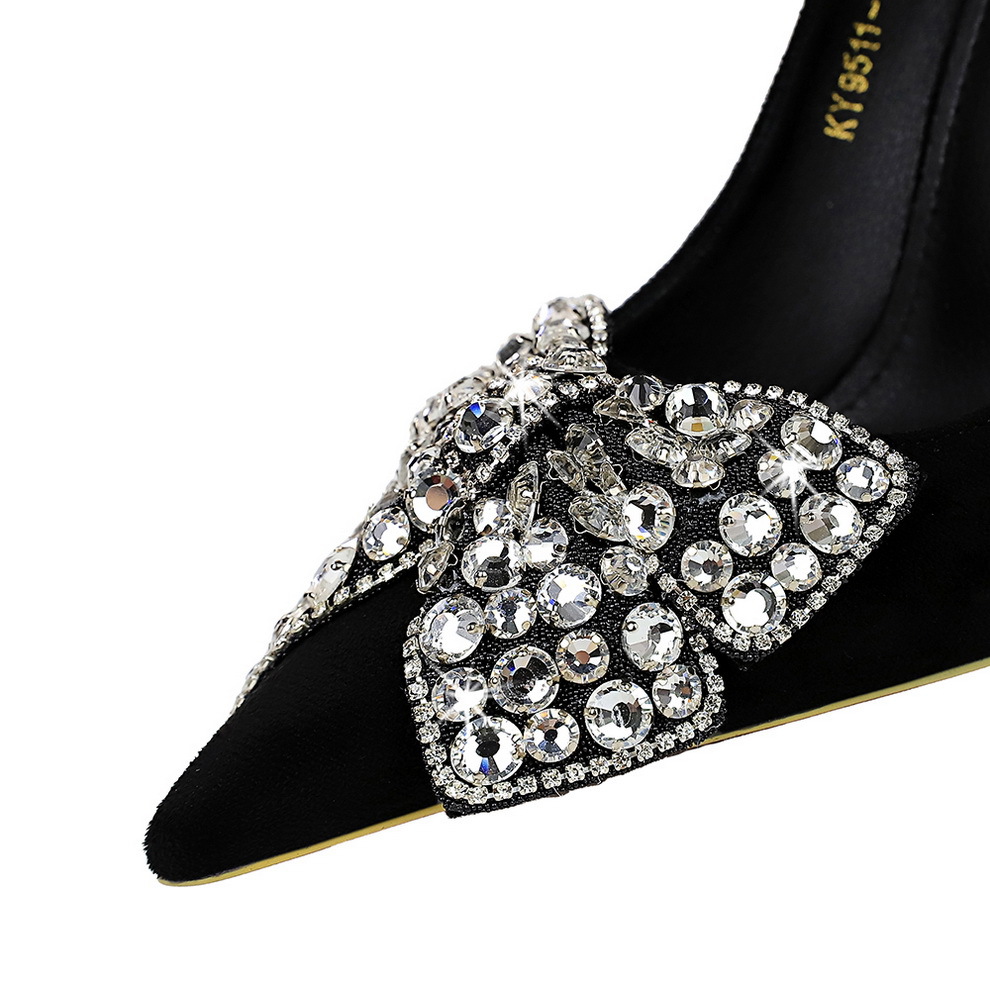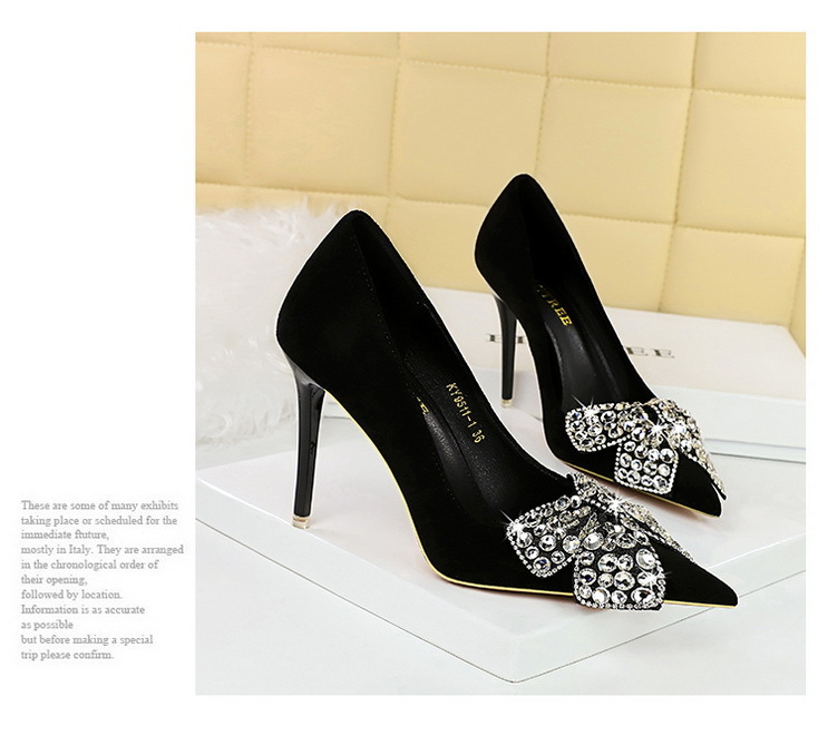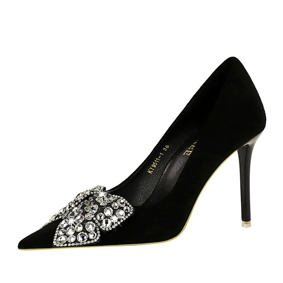 Đôi giày này có phần mũi nhọn và dáng gót rất cao, thanh thoát. Chất liệu bề mặt được làm từ vải mềm mịn, tạo cảm giác dễ chịu. Điểm nhấn là chiếc nơ kết hợp với những viên đá lấp lánh ở phía trước, giúp đôi chân thêm phần nổi bật. Kiểu dáng cổ điển, phù hợp để mang trong các buổi tiệc hoặc sự kiện. Bạn có thể phối cùng đầm dạ hội hoặc trang phục dự tiệc để tạo nên vẻ đẹp lịch sự và duyên dáng. | Tên sản phẩm: Giày Cao Gót Nữ Thắt Nơ Bướm Gắn Đá Mũi Nhọn Gót Nhọn Phong Cách Âu Mỹ - Giày Dép Nữ | Mã sản phẩm: L0108 - Giá: 750.000đ | Mã nhà sản xuất: PITYIN-G02Hình ảnh sản phẩm
