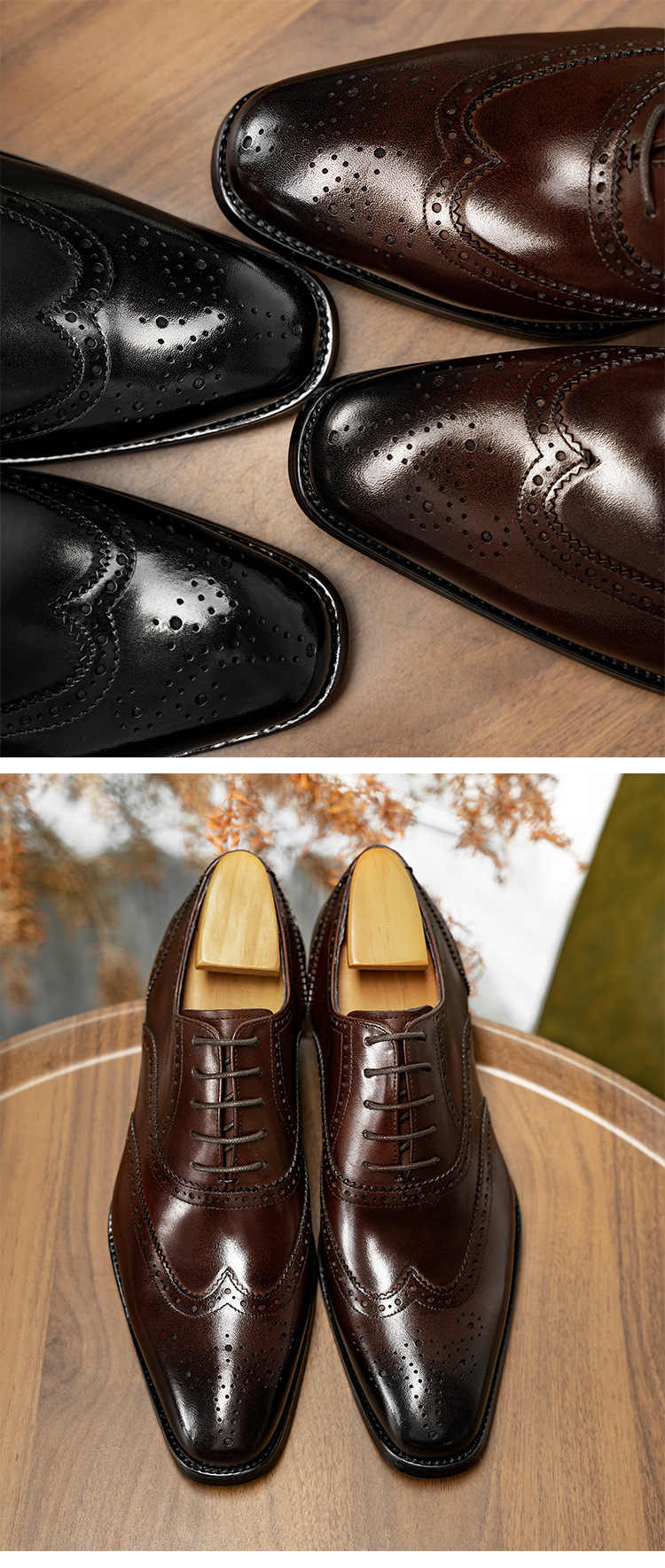 Giày da thật dành cho nam, kiểu dáng giày bu-roa với các đường khắc hình hoa văn tinh tế. Mẫu giày này phối hợp đế sục chắc chắn, tạo nên vẻ lịch sự nhẹ nhàng. Rất phù hợp mang đi làm trong môi trường cần sự chỉn chu, hoặc dự các buổi gặp mặt. Có thể dùng cùng quần âu, quần kaki để hoàn thiện bộ trang phục. Sản phẩm dễ dàng phối đồ và sử dụng được quanh năm. | Tên sản phẩm: Giày Da Nam Chất Liệu Da Bò - Giày Dép Nam | Mã sản phẩm: L0127 - Giá: 2.480.000đ | Mã nhà sản xuất: YADAO-G05Hình ảnh sản phẩm