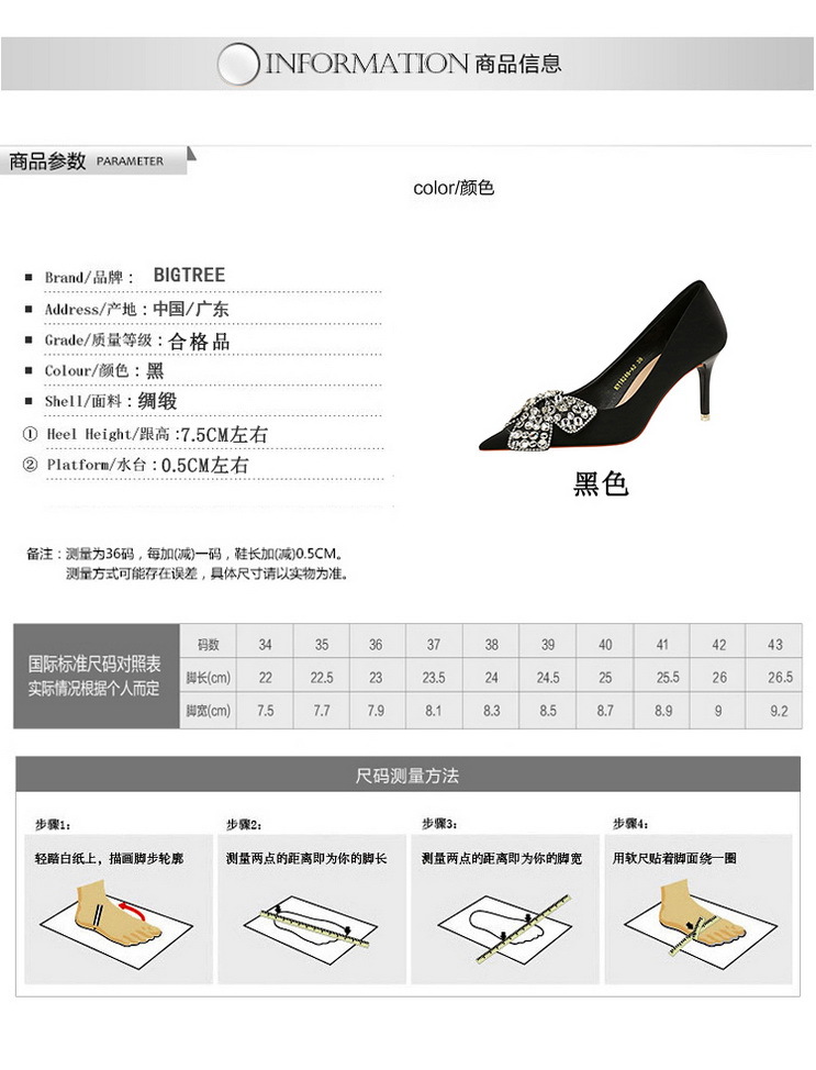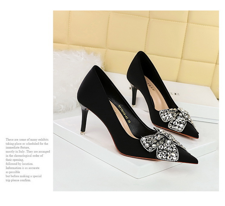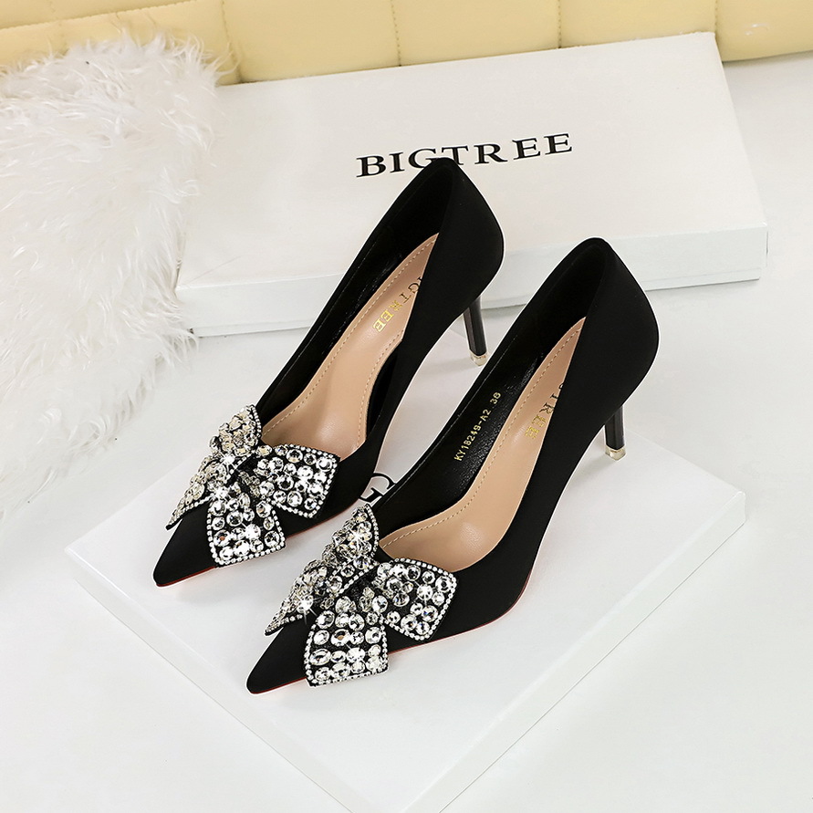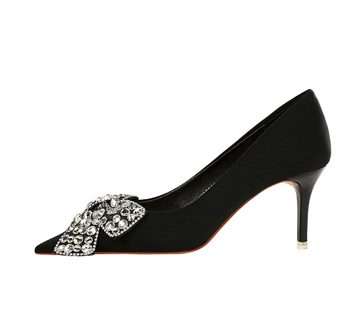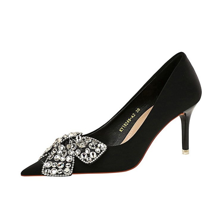 Đôi giày này có phần mũi nhọn và cổ thấp, tạo dáng thanh thoát cho bàn chân. Chất liệu vải lụa mềm mại mang lại cảm giác dễ chịu. Điểm nhấn là nơ kết hợp đá lấp lánh tinh tế ở phía trước. Phần gót cao và mảnh giúp tôn lên dáng người. Sản phẩm thích hợp để mang trong các buổi tiệc hoặc sự kiện. Khi sử dụng, nên chọn kích cỡ vừa vặn và vệ sinh bằng khăn mềm. | Tên sản phẩm: Giày Cao Gót Nữ Thắt Nơ Bướm Gắn Đá Mũi Nhọn Gót Nhọn Phong Cách Hàn Quốc - Giày Dép Nữ | Mã sản phẩm: L0130 - Giá: 750.000đ | Mã nhà sản xuất: PITYIN-G02Hình ảnh sản phẩm