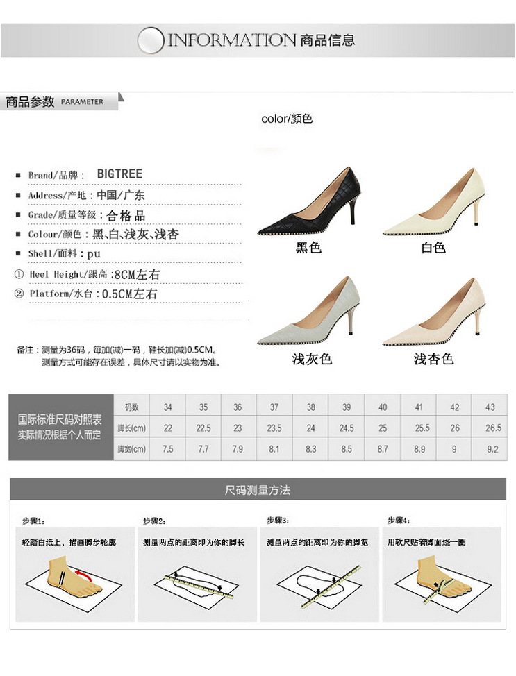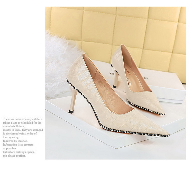 Đôi giày này có kiểu dáng cổ điển phong cách châu Âu, phù hợp cho các buổi tối. Phần mũi giày nhọn và gót thanhai mảnh tôn lên vẻ thanh lịch. Trên thân giày được điểm xuyết bằng những hạt kim loại và đinh tán nhỏ tạo điểm nhấn nổi bật. Kiểu giày hở cổ chân giúp dễ dàng kết hợp với nhiều trang phục khác nhau. Bạn có thể mang chúng để đi chơi, dự tiệc hoặc phối cùng quần âu, váy liền để tạo phong cách cá nhân. | Tên sản phẩm: Giày Cao Gót Nữ Mũi Nhọn Gót Nhọn Phong Cách Âu Mỹ - Giày Dép Nữ | Mã sản phẩm: L0154 - Giá: 640.000đ | Mã nhà sản xuất: PITYIN-G02Hình ảnh sản phẩm