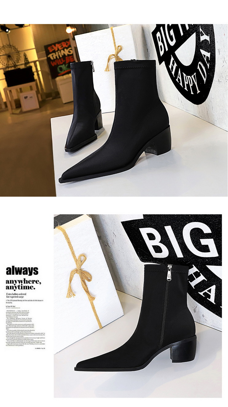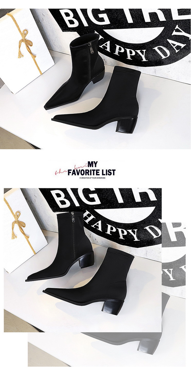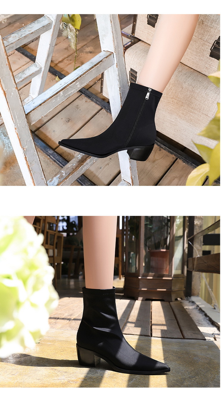 Đôi bốt cổ thấp này mang phong cách phương Tây hiện đại, phù hợp cho các buổi tối. Sản phẩm có phần mũi nhọn và gót thấp chắc chắn, giúp tôn dáng và dễ dàng di chuyển. Chất liệu co giãn nhẹ ôm sát chân, mang lại cảm giác thoải mái suốt ngày dài. Bạn có thể kết hợp với nhiều loại trang phục khác nhau để tạo điểm nhấn nổi bật. | Tên sản phẩm: Boot Cổ Thấp Nữ Mũi Nhọn Gót Vuông Phong Cách Âu Mỹ - Giày Dép Nữ | Mã sản phẩm: L0191 - Giá: 810.000đ | Mã nhà sản xuất: PITYIN-G03Hình ảnh sản phẩm