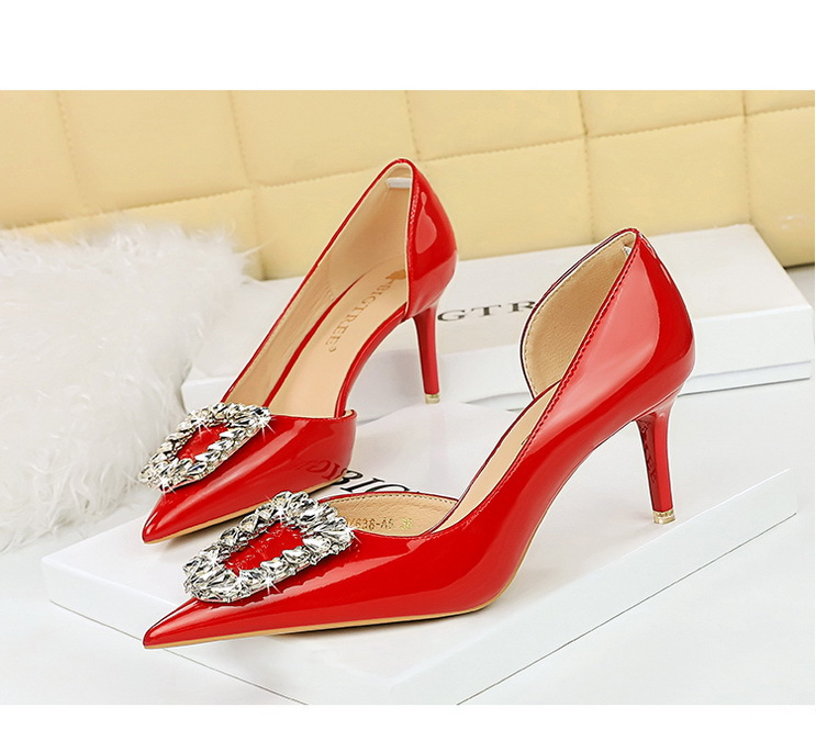 Đôi giày này mang phong cách châu Âu hiện đại, dáng mũi nhọn thanh lịch cùng phần cổ thấp tạo vẻ khoe dáng. Chất da bóng mịn ôm vừa chân, điểm nhấn là chi tiết khoét hờ bên hông tinh tế, kết hợp nút đá lấp lánh tăng thêm nét duyên dáng. Đế cao gót mảnh giúp tôn dáng người đi. Sản phẩm phù hợp dự tiệc hoặc các dịp cần diện đồ chỉn chu. Khi sử dụng, lau bề mặt bằng vải mềm để giữ giày luôn sáng đẹp. | Tên sản phẩm: Giày Cao Gót Nữ Gắn Đá Mũi Nhọn Gót Nhọn Phong Cách Âu Mỹ - Giày Dép Nữ | Mã sản phẩm: L0206 - Giá: 700.000đ | Mã nhà sản xuất: PITYIN-G02Hình ảnh sản phẩm