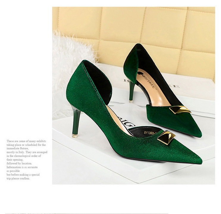 Đôi giày này có phần mũi nhọn và cổ thấp, tạo nên vẻ thanh lịch. Phần gót cao và mảnh giúp tôn dáng người đi. Điểm nhấn đặc biệt là chi tiết khoét hờ ở bên hông, được điểm xuyết thêm bằng phụ kiện ánh kim tinh tế. Bề mặt được làm từ chất liệu mềm mại, mang lại cảm giác dễ chịu. Bạn có thể dễ dàng phối cùng nhiều trang phục khác nhau để tạo nên những phong cách riêng. | Tên sản phẩm: Giày Cao Gót Nữ Mũi Nhọn Gót Nhọn Dày Ấm Phong Cách Âu Mỹ - Giày Dép Nữ | Mã sản phẩm: L0208 - Giá: 640.000đ | Mã nhà sản xuất: PITYIN-G02Hình ảnh sản phẩm