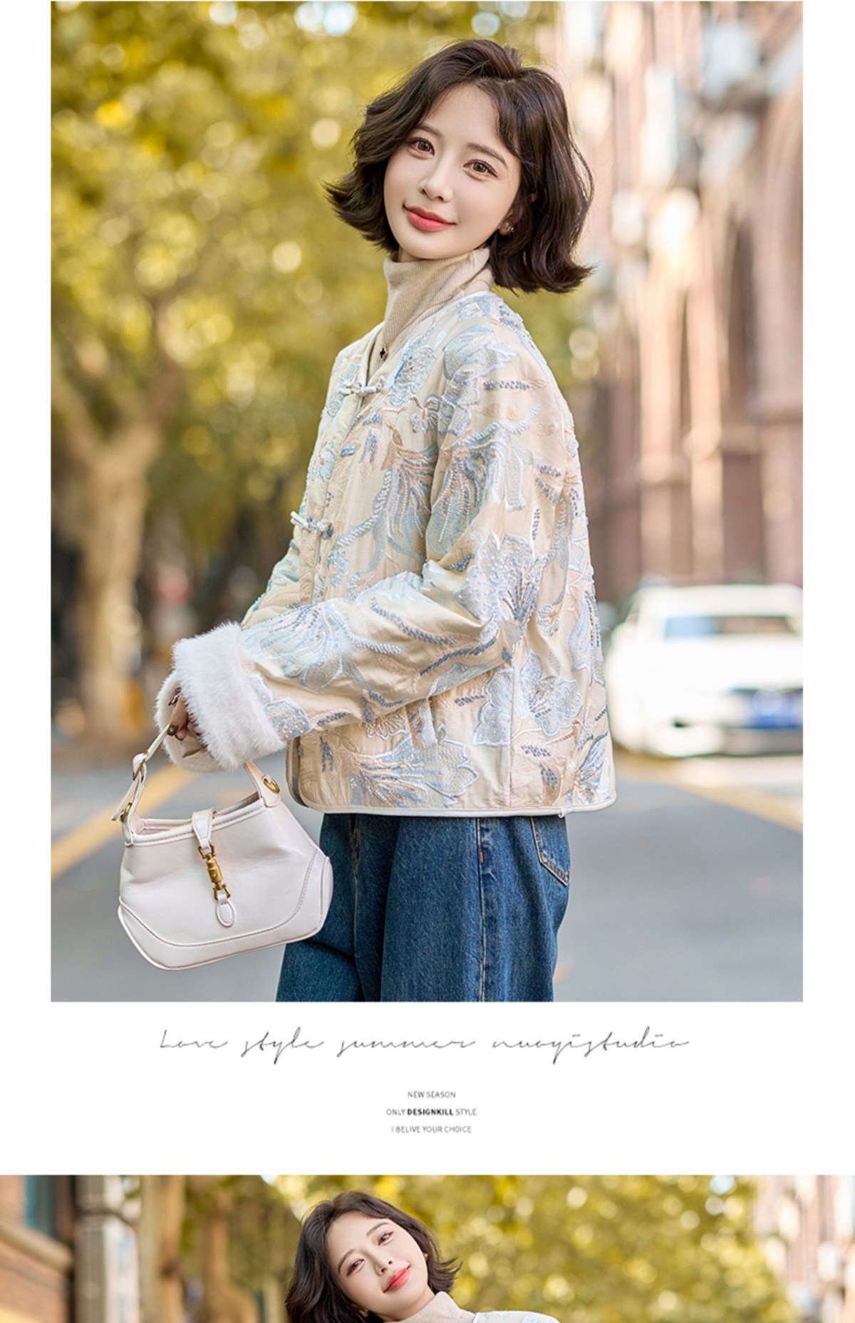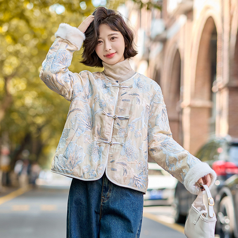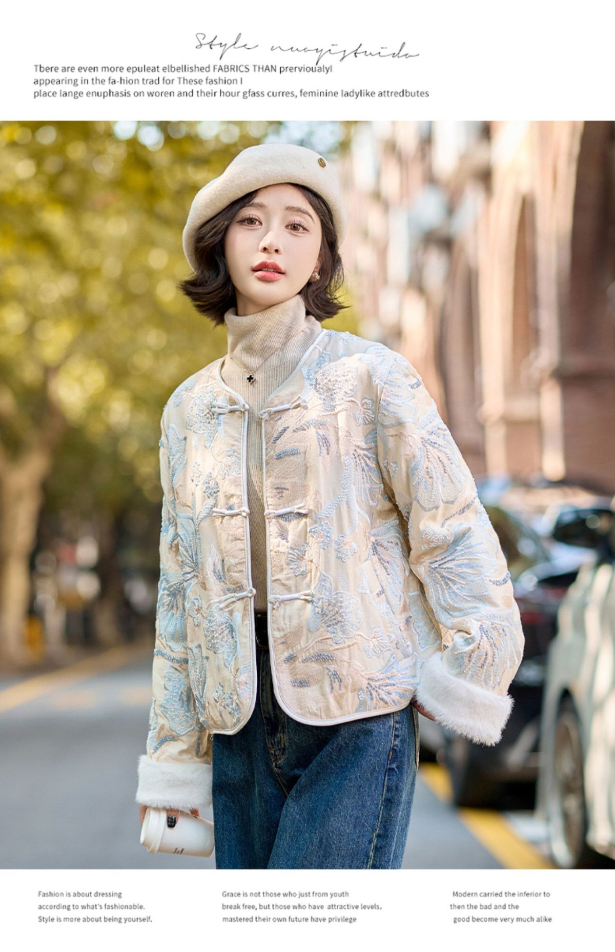 Áo khoác dành cho nữ, kiểu dáng ngắn gọn, phù hợp tiết trời se lạnh. Chất liệu bên trong được lót bằng lớp lông vũ từ loài vịt trắng, mang lại cảm giác nhẹ nhàng và ấm áp. Thiết kế kết hợp nét đẹp truyền thống với phong cách hiện đại, tạo vẻ thanh thoát. Dễ dàng phối cùng nhiều loại trang phục như quần jeans hay váy liền để tạo điểm nhấn. Sản phẩm giữ ấm tốt mà không gây cảm giác nặng nề hay vướng víu khi mặc. | Tên sản phẩm: Áo Khoác Nữ Hàng Mùa Xuân Thu Đông Phục Cổ Cổ Điển - Thời Trang Nữ | Mã sản phẩm: L0238 - Giá: 4.020.000đ | Mã nhà sản xuất: HADA-G06Hình ảnh sản phẩm