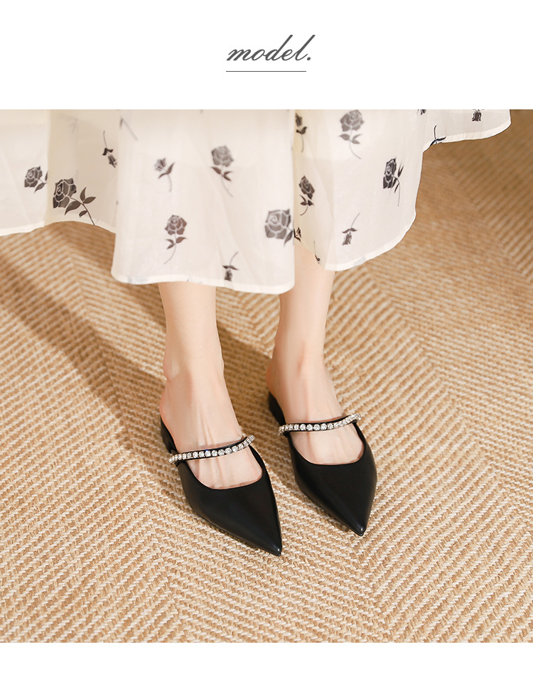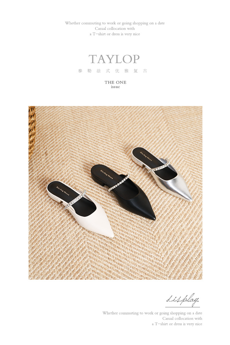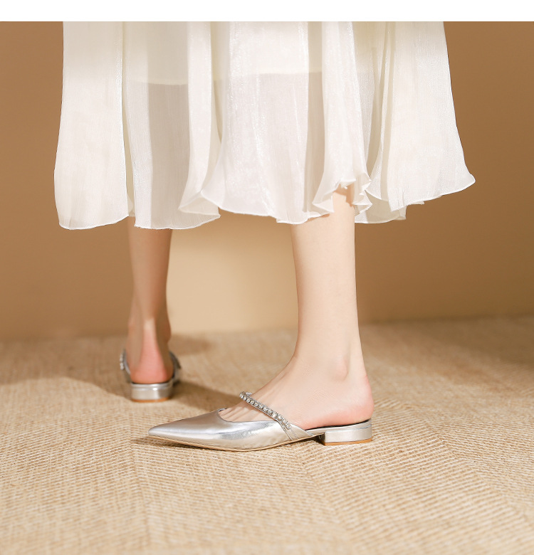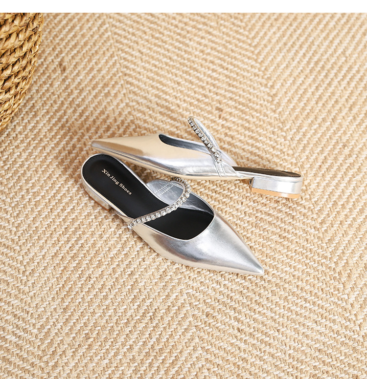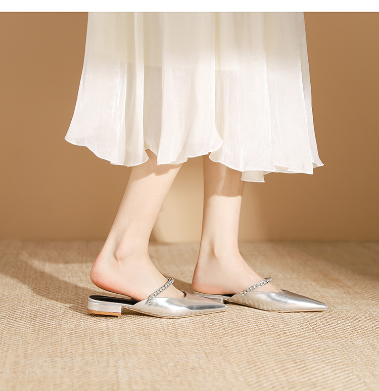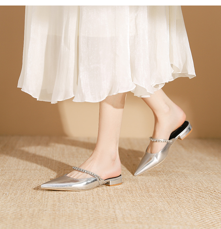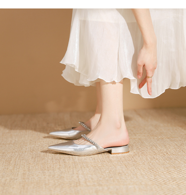 Đôi giày bệt mũi nhọn này có điểm nhấn là dây chuyền đính những viên đá lấp lánh màu ánh bạc tinh tế. Kiểu dáng thanh lịch, phù hợp cho những dịp giao lưu hàng ngày. Chất liệu nhẹ và mềm mại, mang lại cảm giác dễ chịu khi đi cả ngày. Bạn có thể kết hợp cùng nhiều loại trang phục như quần âu, chân váy để tạo nên vẻ ngoại ấn tượng. | Tên sản phẩm: Giày Bệt Nữ Gắn Đá Mũi Nhọn Hàng Mùa Xuân Thu Đông - Giày Dép Nữ | Mã sản phẩm: L0275 - Giá: 740.000đ | Mã nhà sản xuất: HUDSH-G02Hình ảnh sản phẩm
