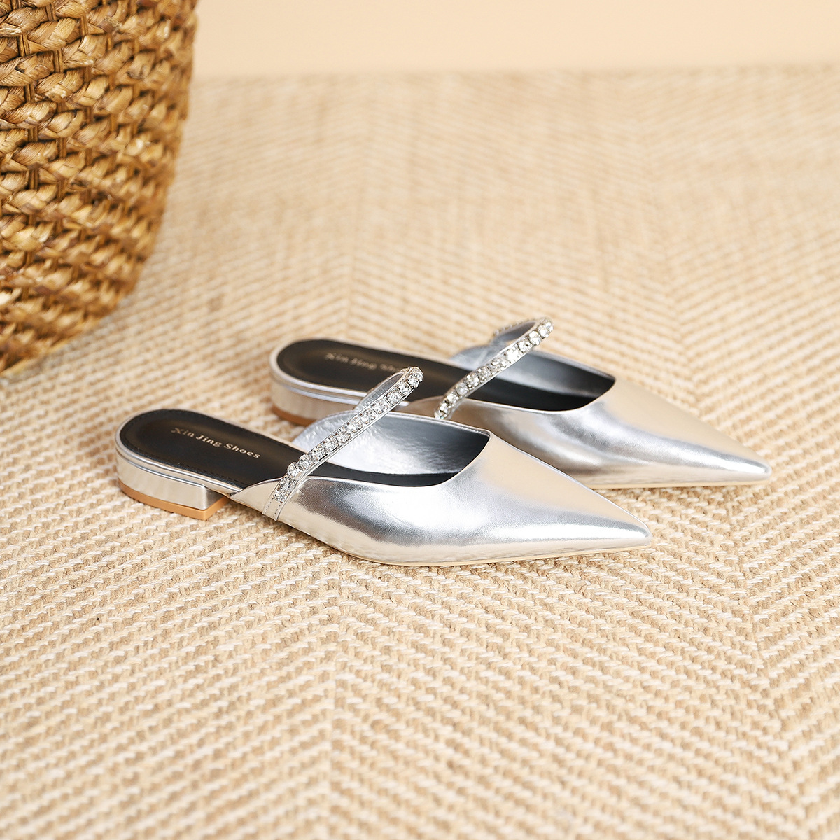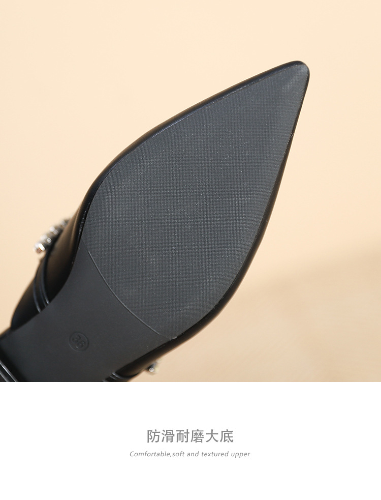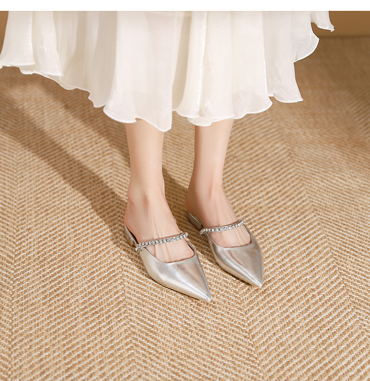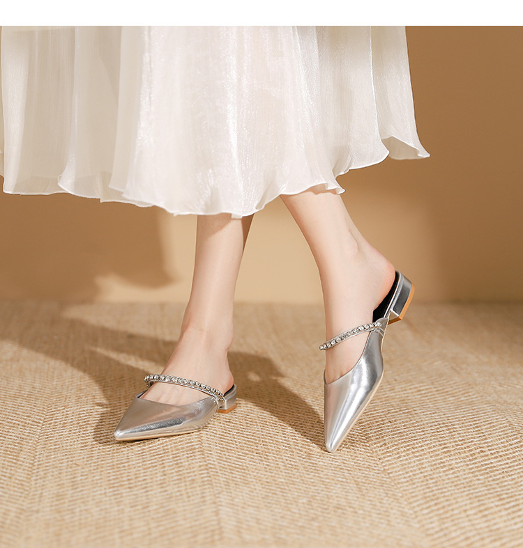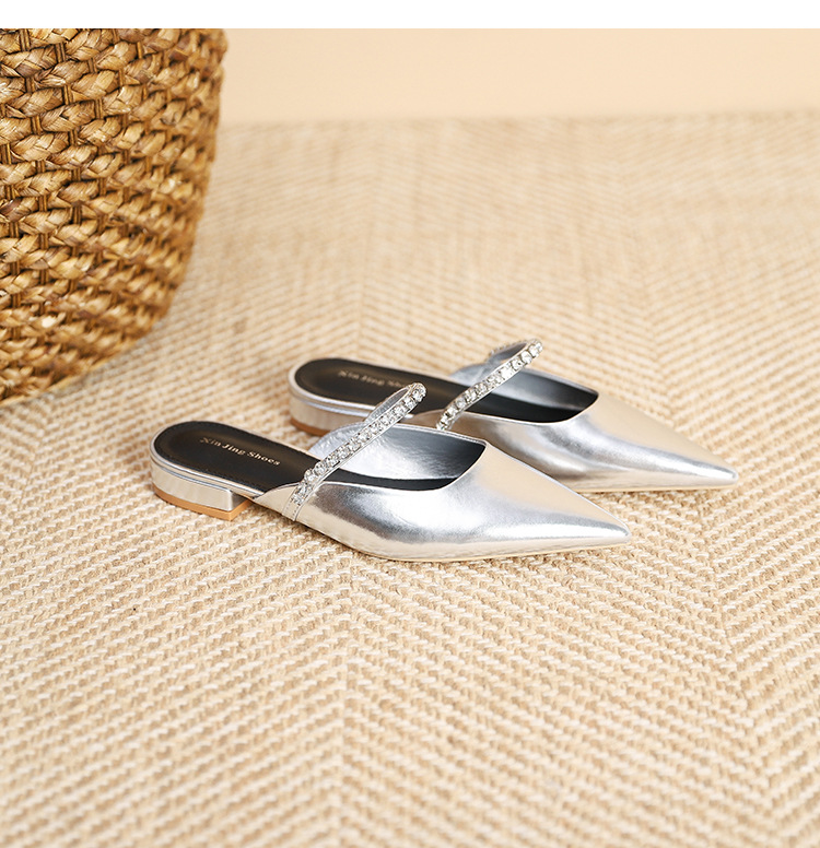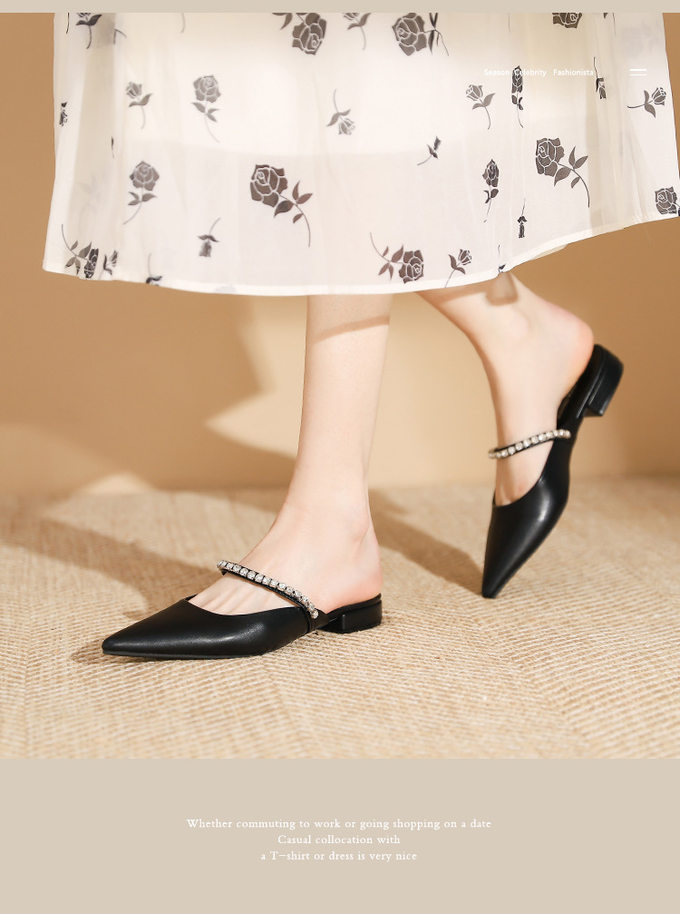 Đôi giày bệt mũi nhọn này có điểm nhấn là dây chuyền đính những viên đá lấp lánh màu ánh bạc tinh tế. Kiểu dáng thanh lịch, phù hợp cho những dịp giao lưu hàng ngày. Chất liệu nhẹ và mềm mại, mang lại cảm giác dễ chịu khi đi cả ngày. Bạn có thể kết hợp cùng nhiều loại trang phục như quần âu, chân váy để tạo nên vẻ ngoại ấn tượng. | Tên sản phẩm: Giày Bệt Nữ Gắn Đá Mũi Nhọn Hàng Mùa Xuân Thu Đông - Giày Dép Nữ | Mã sản phẩm: L0275 - Giá: 740.000đ | Mã nhà sản xuất: HUDSH-G02Hình ảnh sản phẩm