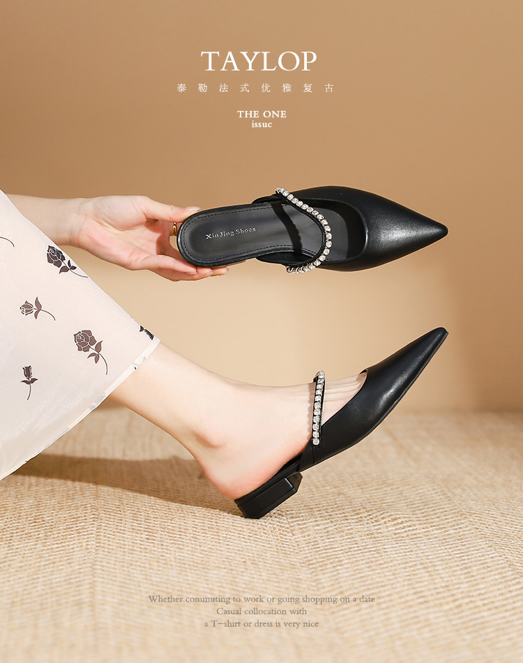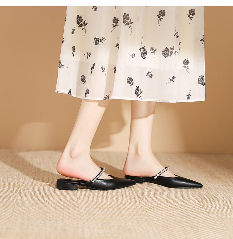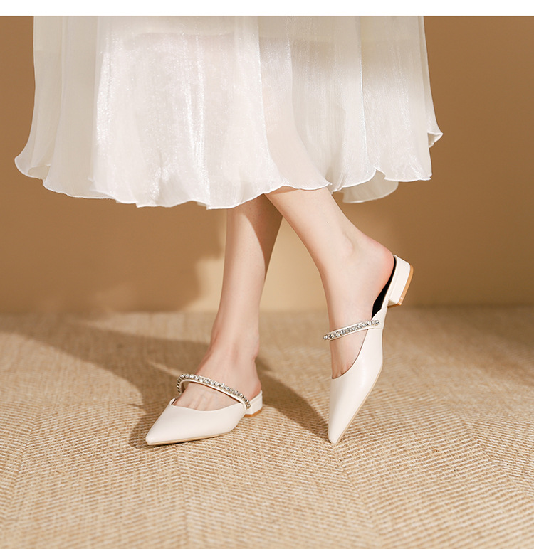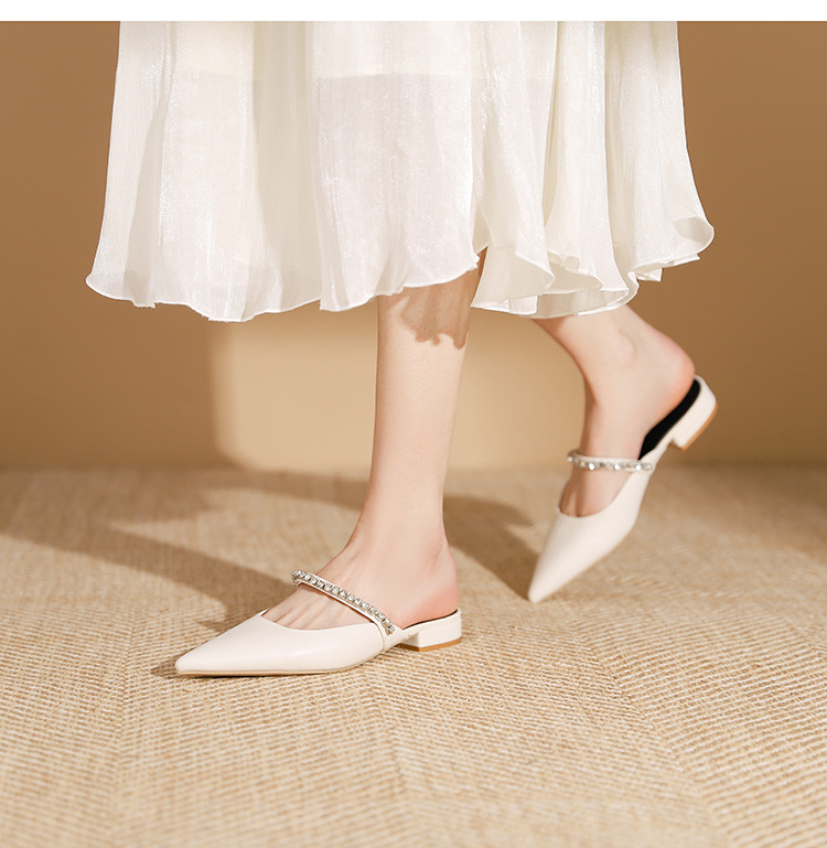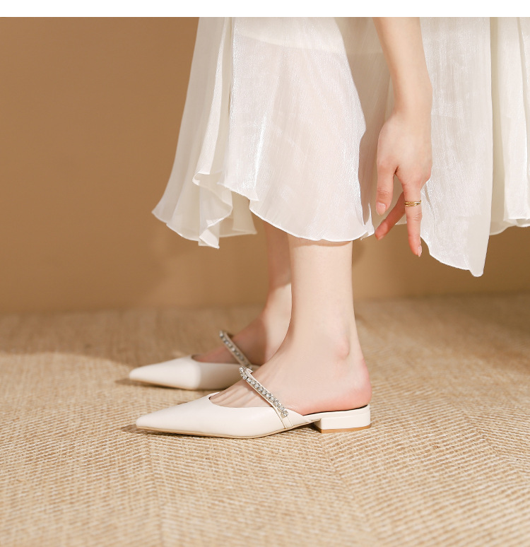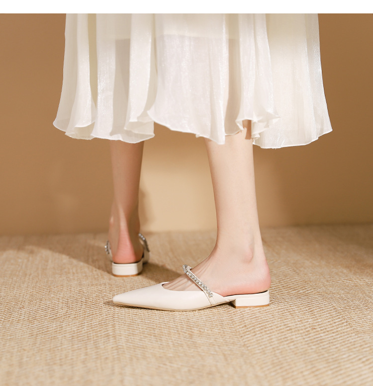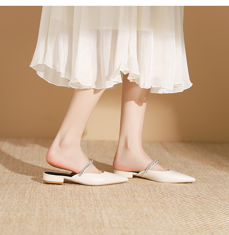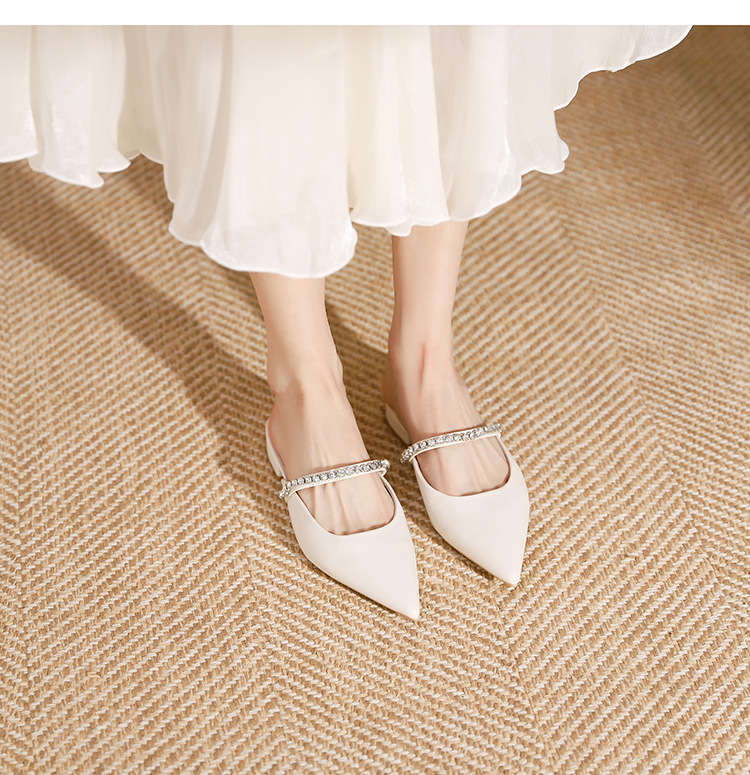 Đôi giày bệt mũi nhọn này có điểm nhấn là dây chuyền đính những viên đá lấp lánh màu ánh bạc tinh tế. Kiểu dáng thanh lịch, phù hợp cho những dịp giao lưu hàng ngày. Chất liệu nhẹ và mềm mại, mang lại cảm giác dễ chịu khi đi cả ngày. Bạn có thể kết hợp cùng nhiều loại trang phục như quần âu, chân váy để tạo nên vẻ ngoại ấn tượng. | Tên sản phẩm: Giày Bệt Nữ Gắn Đá Mũi Nhọn Hàng Mùa Xuân Thu Đông - Giày Dép Nữ | Mã sản phẩm: L0275 - Giá: 740.000đ | Mã nhà sản xuất: HUDSH-G02Hình ảnh sản phẩm