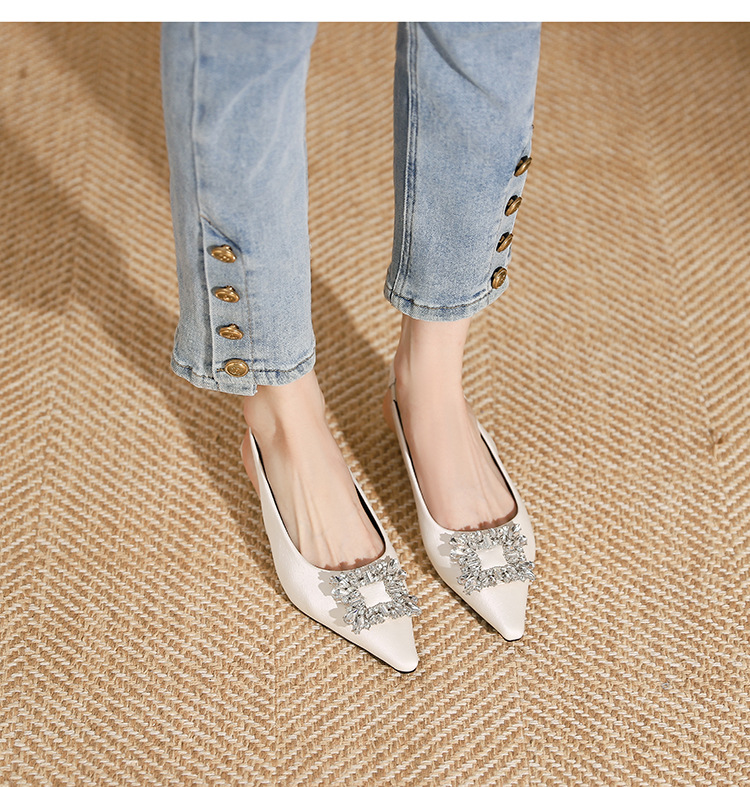 Đôi giày này có phần mũi nhọn tinh tế điểm xuyết ánh kim lấp lánh, tạo điểm nhấn nổi bật. Kiểu dáng cổ thấp phong cách Pháp kết hợp cùng đế bằng phẳng và thiết kế hở gót, mang lại sự thoải mái tối đa cho đôi chân. Khóa vuông bằng kim loại ở phía trước giúp đôi giày thêm phần cá tính. Sản phẩm thích hợp sử dụng trong những dịp đi làm, dạo phố hoặc gặp gỡ bạn bè. Chỉ cần xỏ chân vào và cài khóa là bạn đã có một set đồ hoàn chỉnh. | Tên sản phẩm: Giày Bệt Nữ Mũi Nhọn Hàng Mùa Hè - Giày Dép Nữ | Mã sản phẩm: L0280 - Giá: 800.000đ | Mã nhà sản xuất: HUDSH-G02Hình ảnh sản phẩm