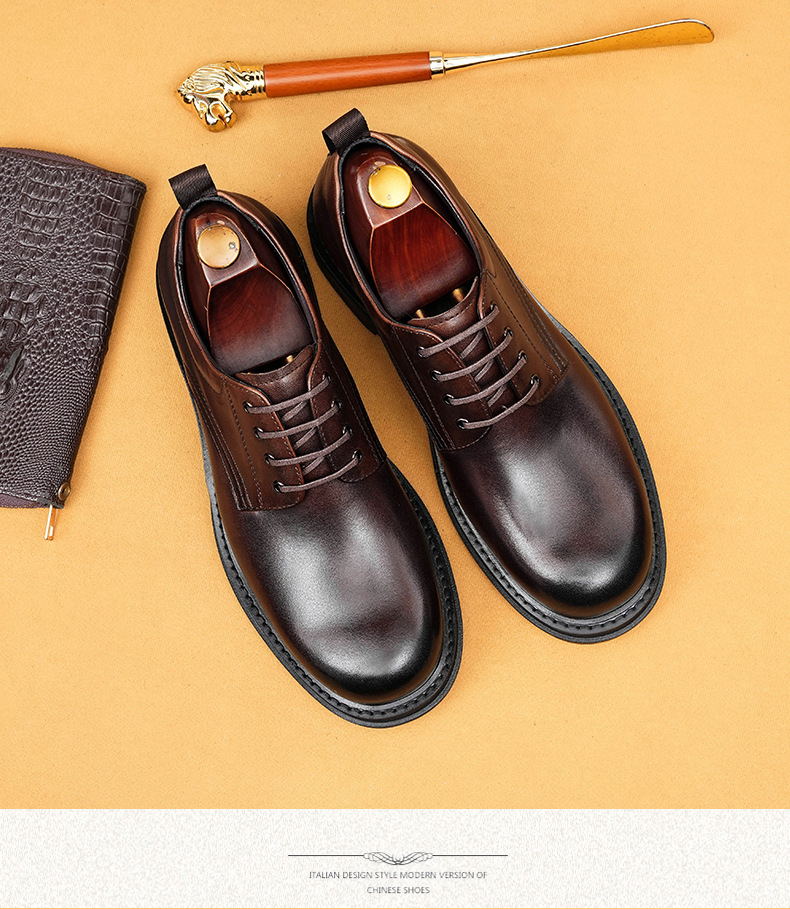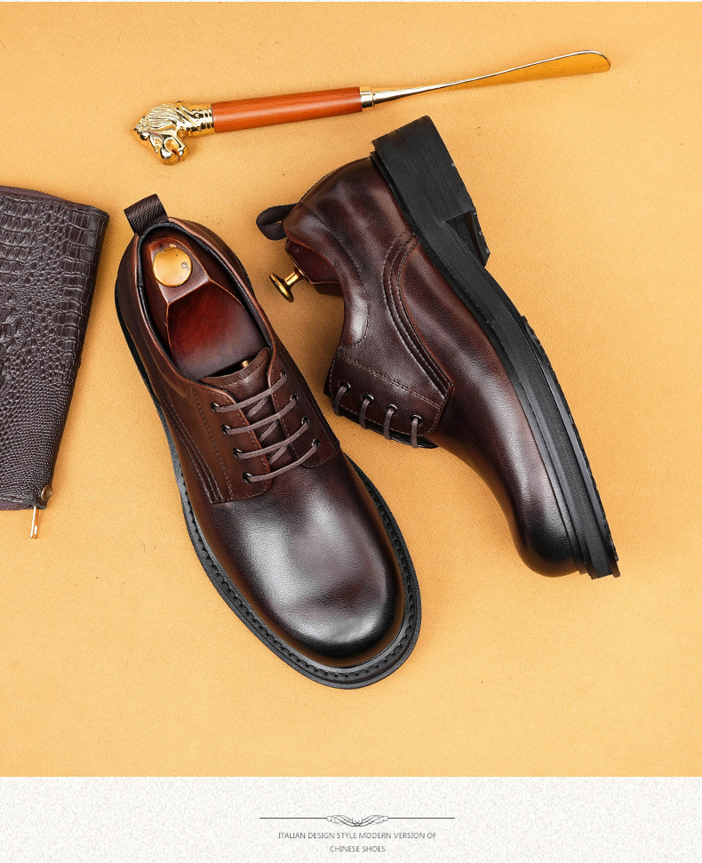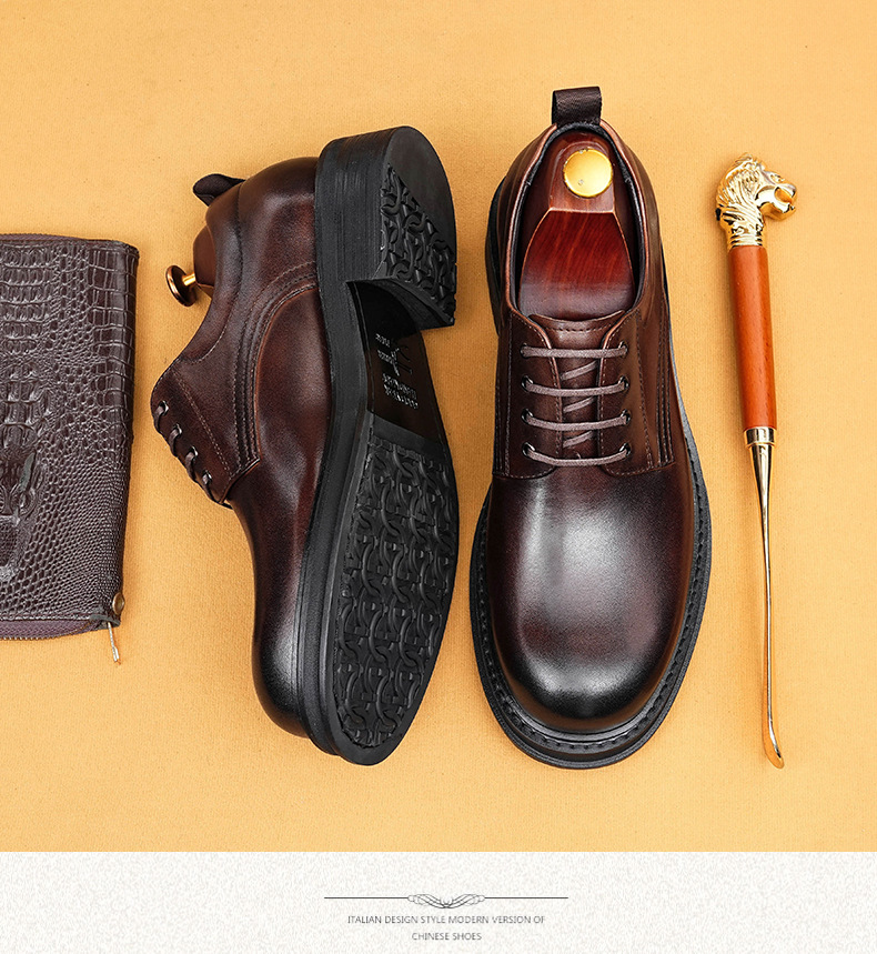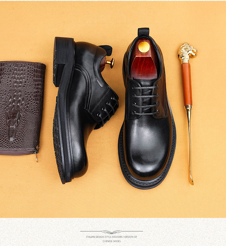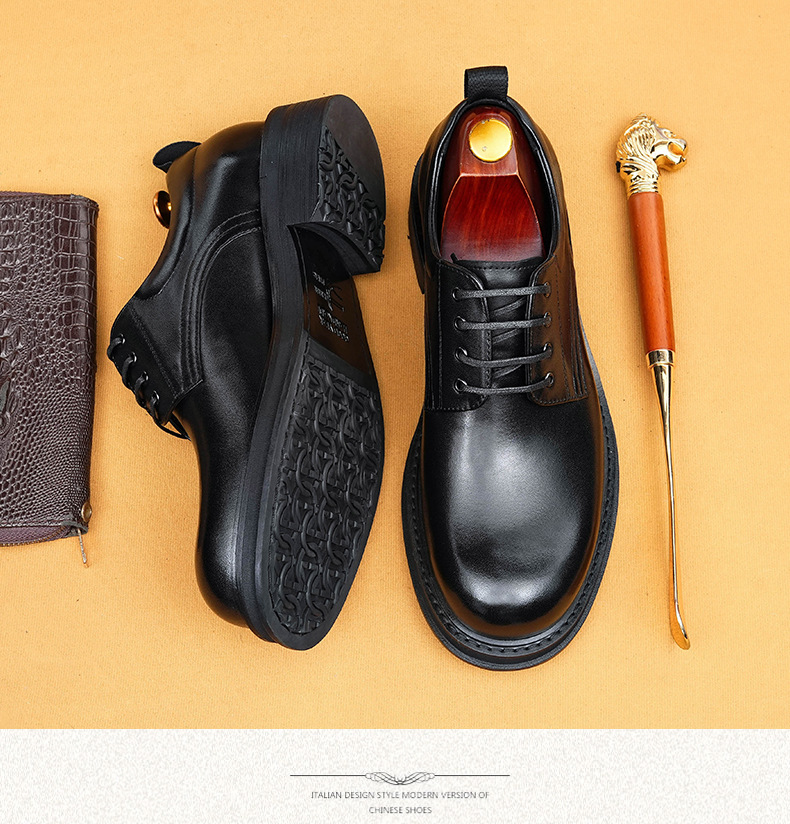 Giày da thật dành cho nam, kiểu dáng mũi vuông cổ điển. Sản phẩm kết hợp hài hòa giữa phong cách làm việc và dạo phố. Đế giày được thiết kế có độ dày vừa phải, giúp tăng chiều cao nhẹ một cách tự nhiên khi mang. Bạn có thể dễ dàng phối cùng cả trang phục công sở lẫn quần áo mặc thường ngày. Chất liệu da mềm mại ôm chân, mang lại sự dễ chịu cho đôi chân trong suốt thời gian sử dụng. | Tên sản phẩm: Giày Da Nam Chất Liệu Da Bò Tăng Chiều Cao Đế Cao - Giày Dép Nam | Mã sản phẩm: L0288 - Giá: 2.360.000đ | Mã nhà sản xuất: SHERAW-G05Hình ảnh sản phẩm