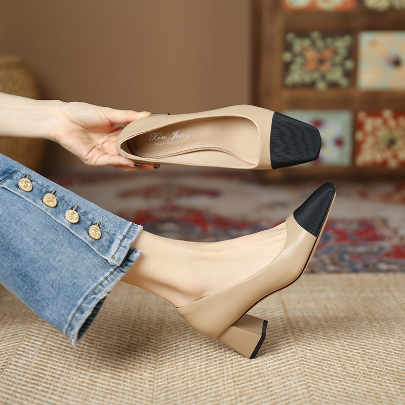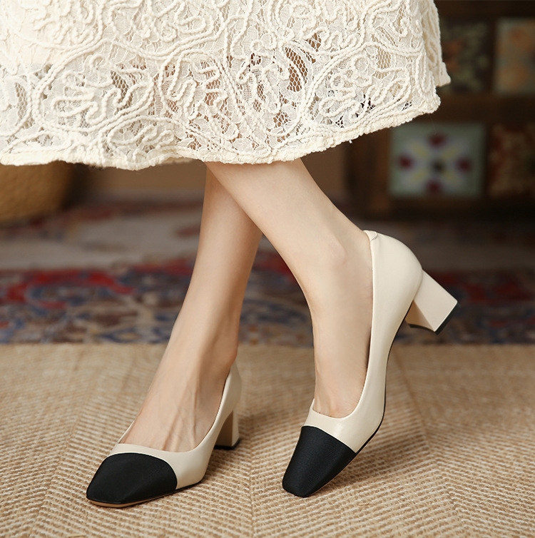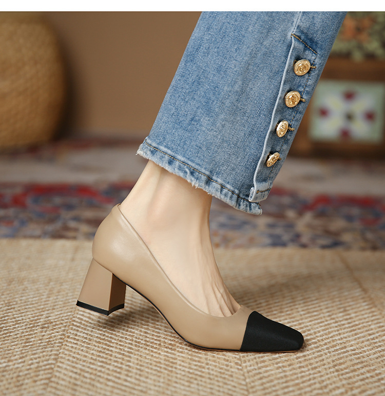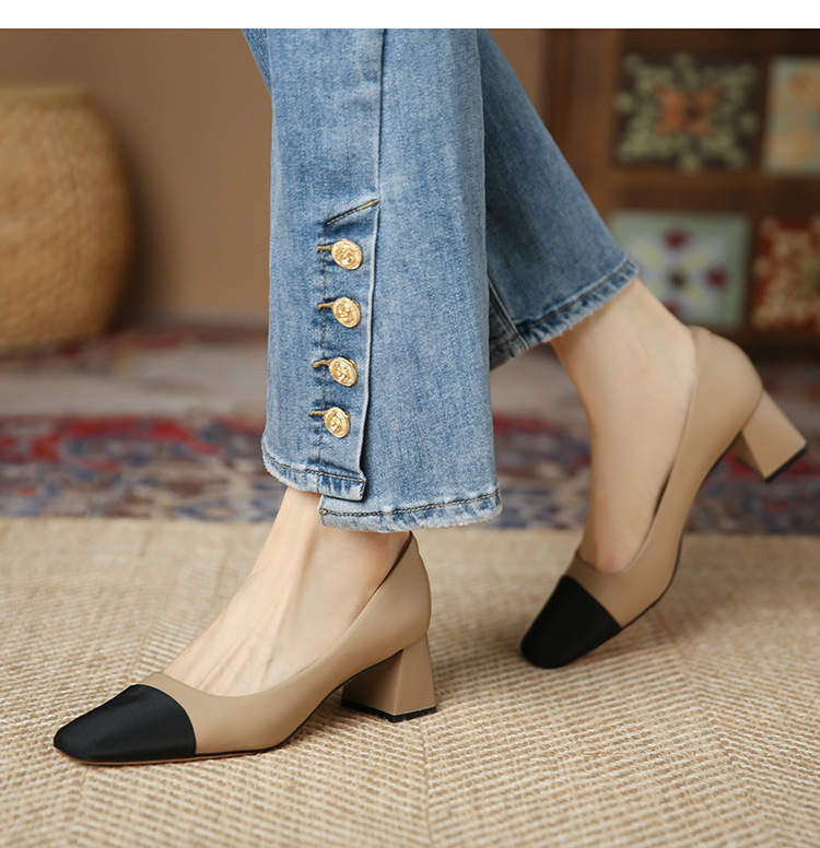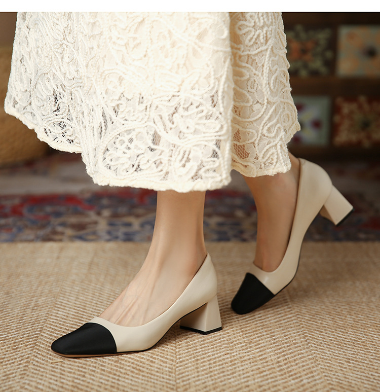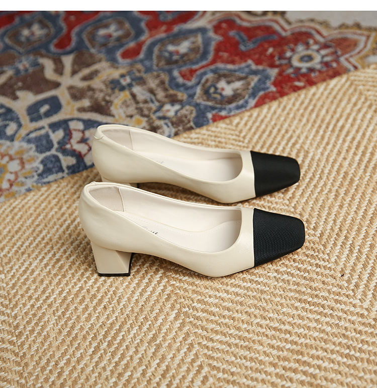 Đôi giày nữ có phần mũi vuông và phần thân được phối hai màu đơn giản. Kiểu dáng gót thấp vừa phải, cổ thuyết thanh lịch, phù hợp cho nhiều dịp sử dụng. Gót chân được thiết kế chắc chắn giúp nâng đỡ tốt và dễ dàng di chuyển cả ngày. Bạn có thể kết hợp cùng nhiều loại trang phục như quần âu, váy liền để tạo vẻ ngoài chỉn chu. | Tên sản phẩm: Giày Cao Gót Nữ Gót Vuông - Giày Dép Nữ | Mã sản phẩm: L0297 - Giá: 800.000đ | Mã nhà sản xuất: HUDSH-G02Hình ảnh sản phẩm