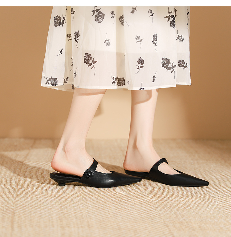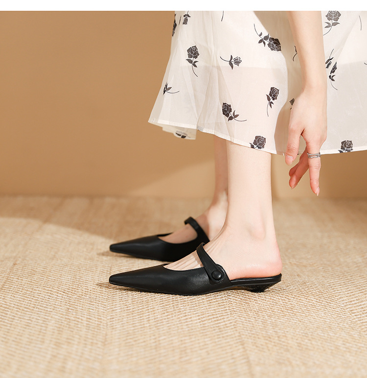 Đôi giày nữ có mũi nhọn và phần sau hở, mang phong cách đơn giản và nhẹ nhàng. Đế bằng phẳng giúp bạn di chuyển thoải mái cả ngày. Dây đeo ngang mảnh màu đen tạo điểm nhấn tinh tế, phù hợp cho mùa xuân. Kiểu dáng nửa dép tiện lợi, dễ dàng mang vào hoặc tháo ra. Bạn có thể phối cùng nhiều loại trang phục khác nhau để tạo vẻ ngoài tự nhiên và năng động. | Tên sản phẩm: Giày Bệt Nữ Mũi Nhọn Hàng Mùa Xuân Thu Đông - Giày Dép Nữ | Mã sản phẩm: L0305 - Giá: 720.000đ | Mã nhà sản xuất: HUDSH-G02Hình ảnh sản phẩm