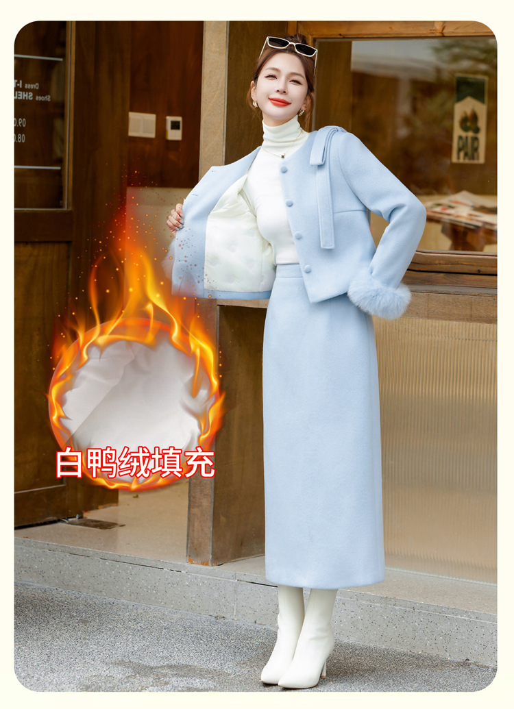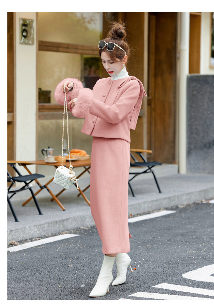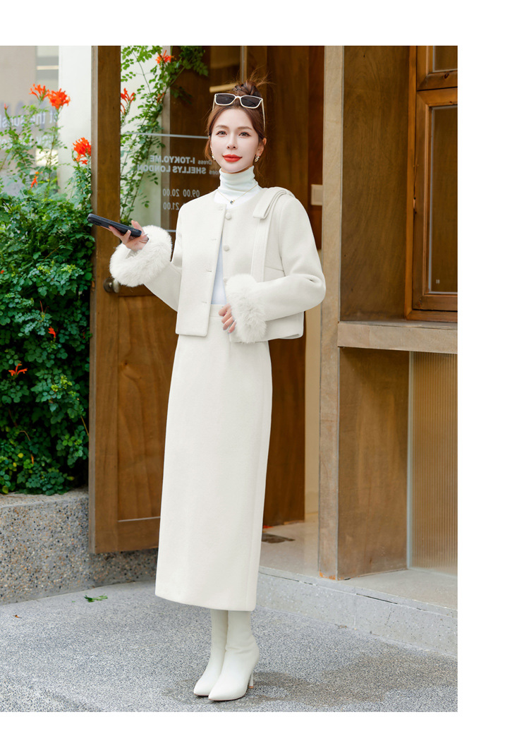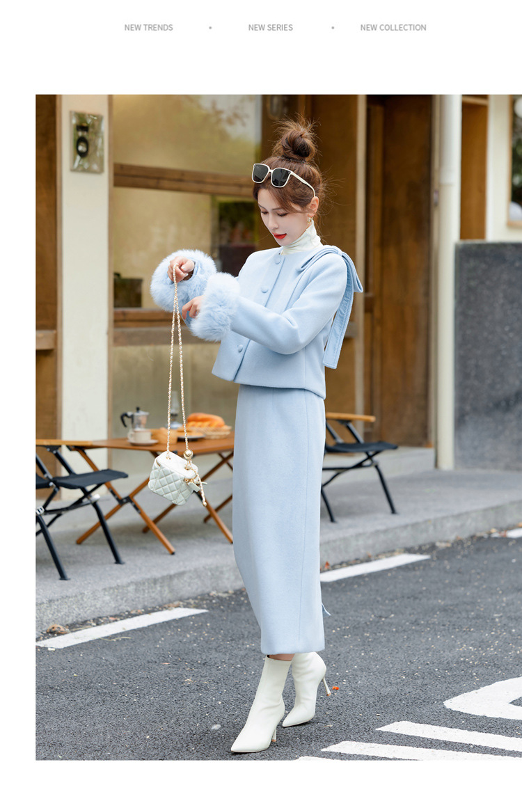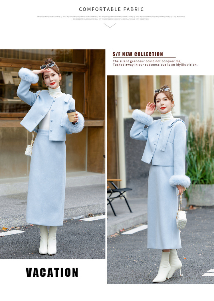 Bộ trang phục dạo phố này gồm áo khoác và chân váy, thiết kế dành riêng cho tiết trời se lạnh. Áo được lót lớp bông mềm mại giữ ấm tốt, điểm nhấn là phần cổ tay được viền lông mềm mại tăng thêm nét duyên dáng. Chân váy xòe nhẹ tôn dáng người mặc. Có thể mặc nguyên bộ để tạo vẻ chỉn chu, hoặc phối áo với quần khác cho những dịp thoải mái hơn. | Tên sản phẩm: Áo Khoác Nữ Cả Bộ 2 Món Hàng Mùa Xuân Thu Đông - Thời Trang Nữ | Mã sản phẩm: L0324 - Giá: 4.260.000đ | Mã nhà sản xuất: HADA-G06Hình ảnh sản phẩm