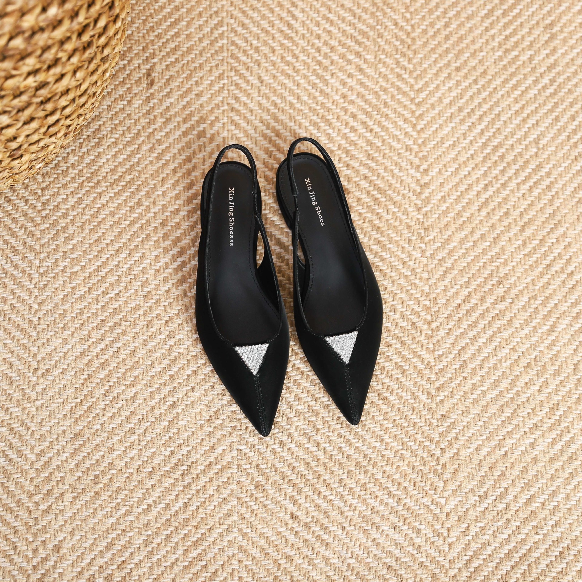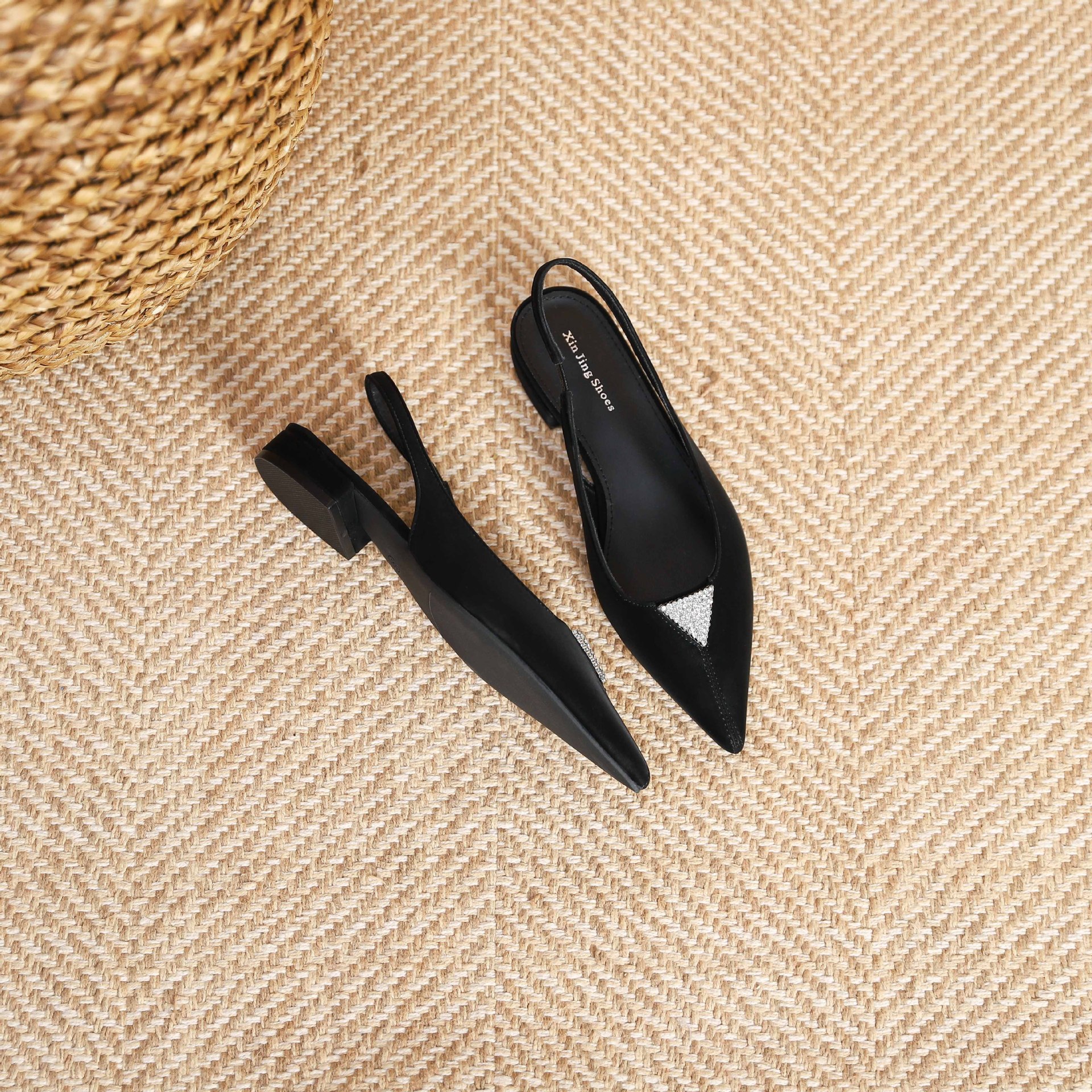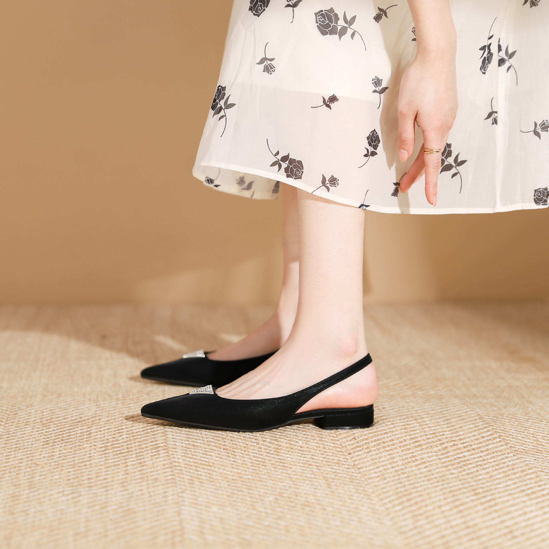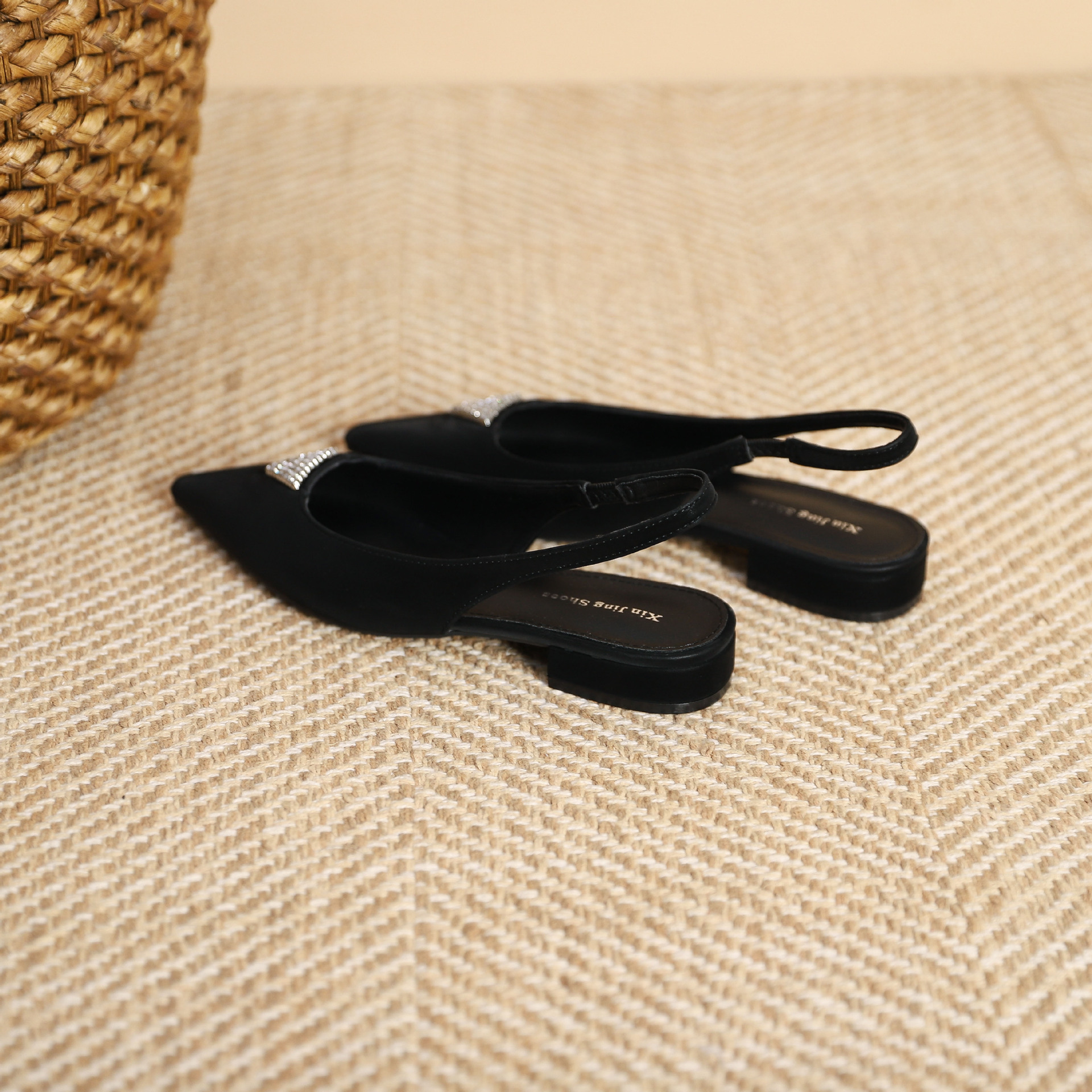 Đôi giày này mang kiểu dáng mũi nhọn thanh lịch, lấy cảm hứng từ phong cách châu Âu. Sản phẩm có phần thân trên ôm vừa chân, kết hợp dây cố định ở gót giúp giữ chân thoải mái và vững chãi. Điểm nhấn là những viên đá lấp lánh được đính tinh tế, tạo nên vẻ đẹp nữ tính. Bạn có thể dễ dàng phối hợp với nhiều loại trang phục như quần âu, chân váy để đi làm, đi chơi hoặc dự tiệc. Đế thấp vừa phải mang lại sự thoải mái cho cả ngày dài. | Tên sản phẩm: Giày Bệt Nữ Gắn Đá Mũi Nhọn - Giày Dép Nữ | Mã sản phẩm: L0329 - Giá: 720.000đ | Mã nhà sản xuất: HUDSH-G02Hình ảnh sản phẩm